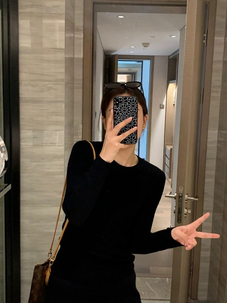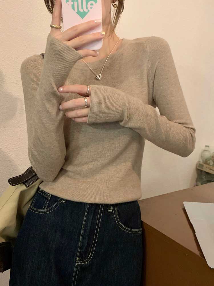 Трикотажный белый свитер с круглым воротником, демисезонная базовая утепленный лонгслив, облегающий крой