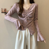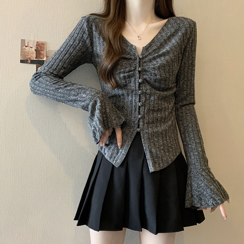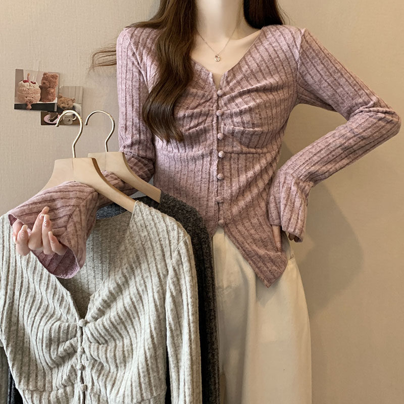 Дизайнерский трикотажный мегафон, базовый свитер, большой размер, тренд сезона, V-образный вырез, подходит для полных девушек