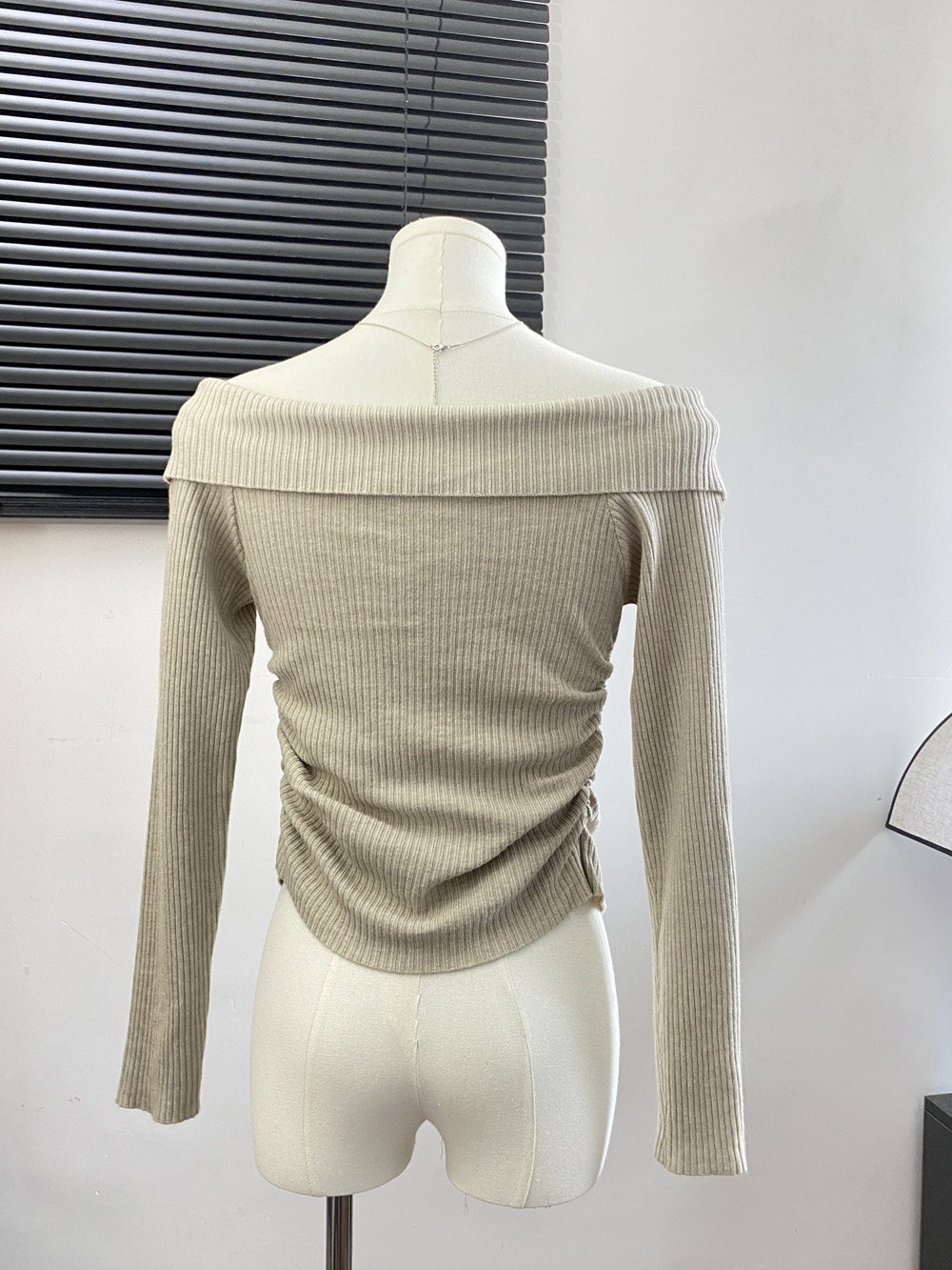 Трикотажный короткий свитер, открытые плечи, коллекция 2023, осенний, французский стиль, облегающий крой