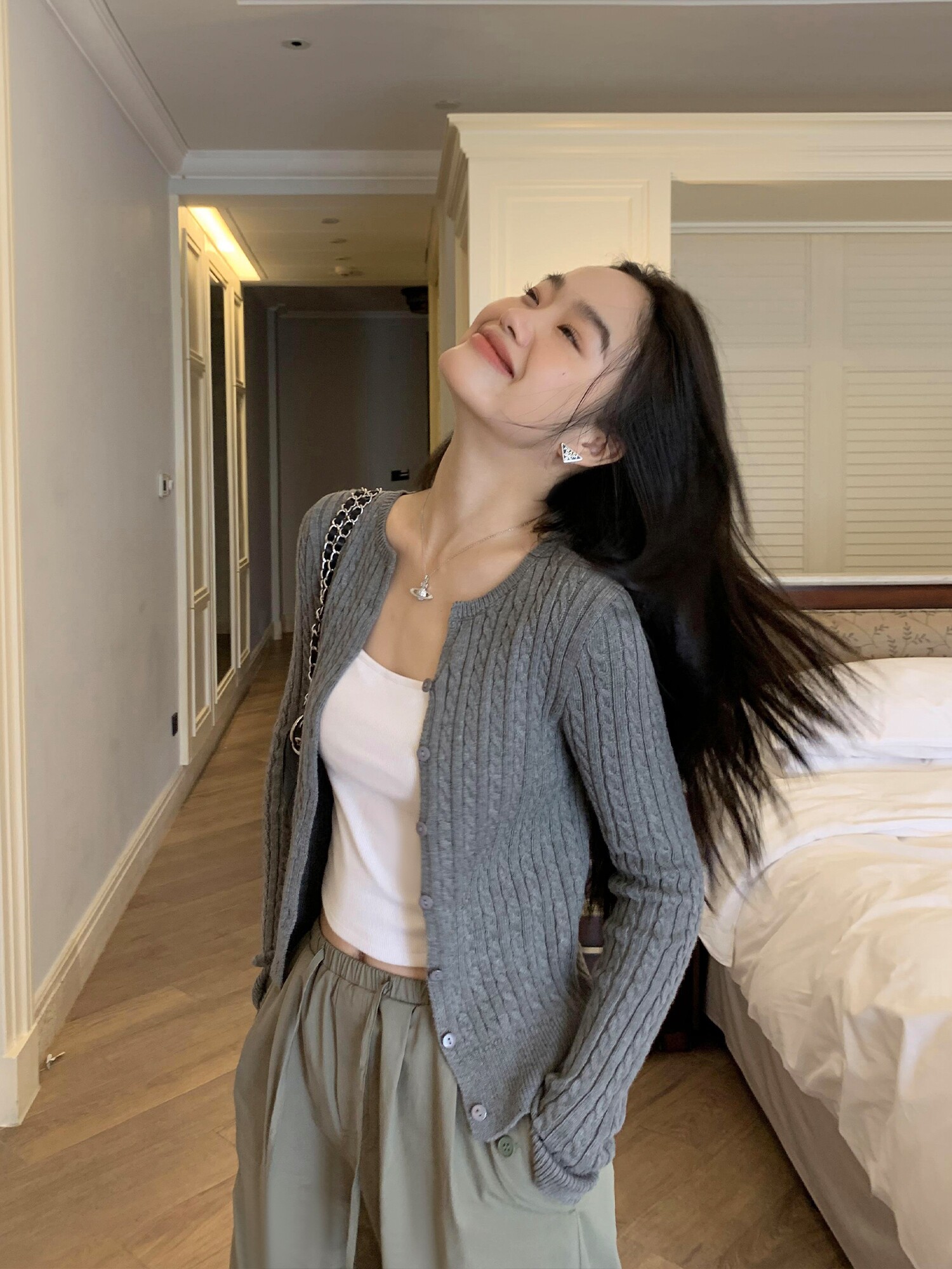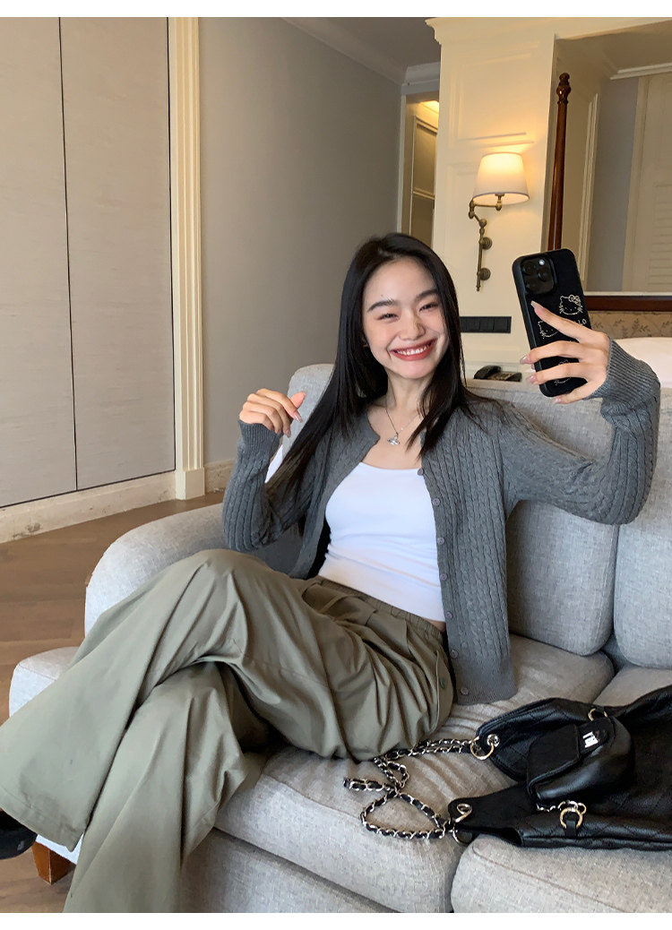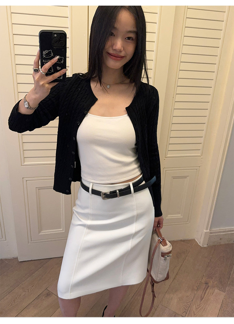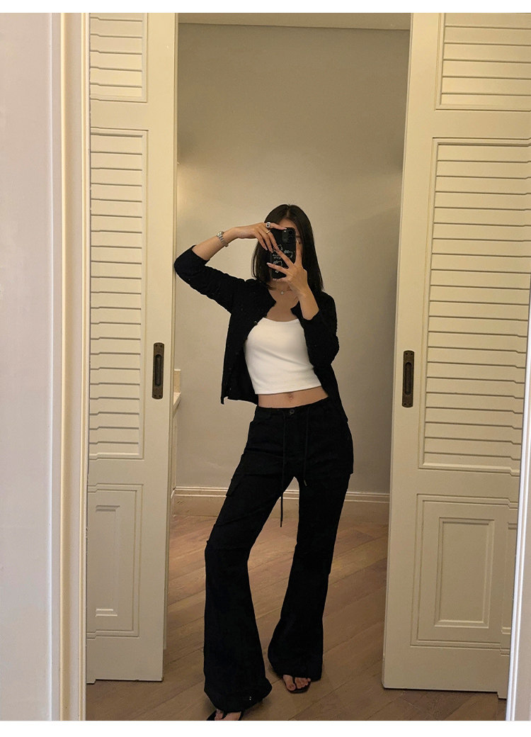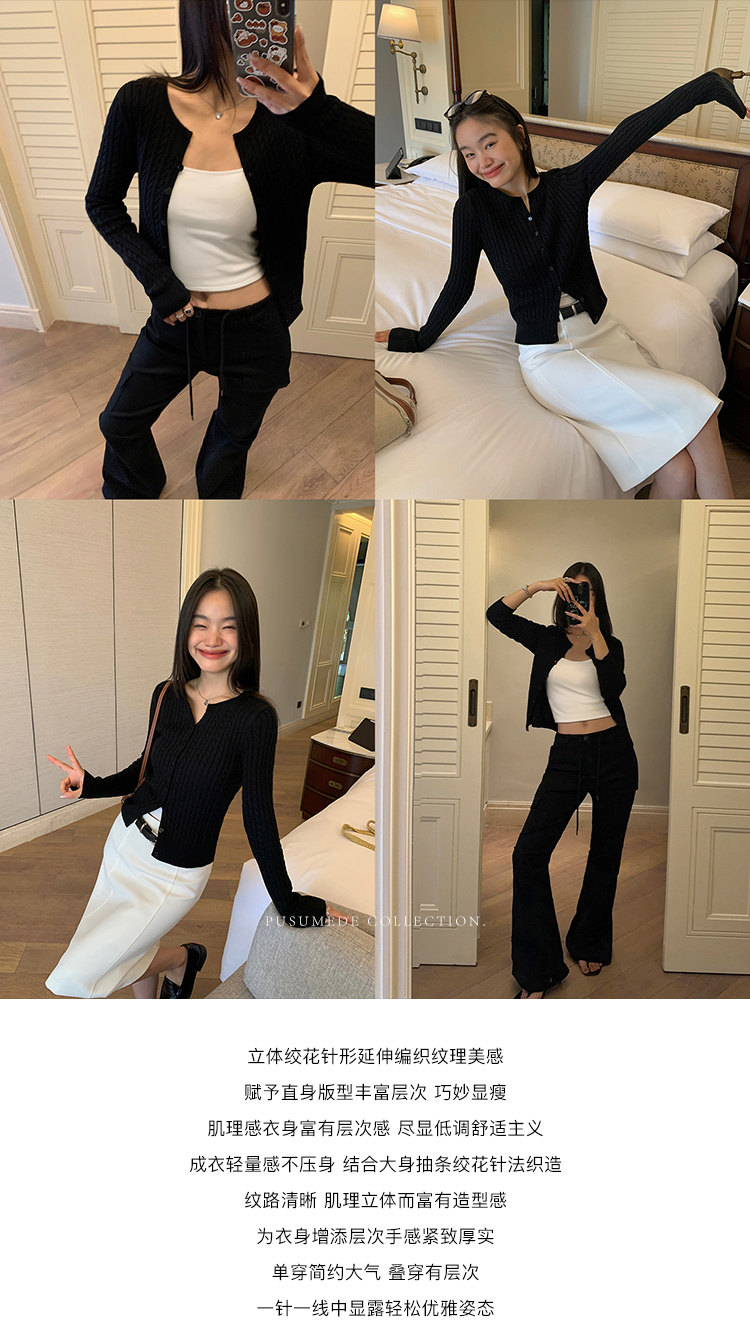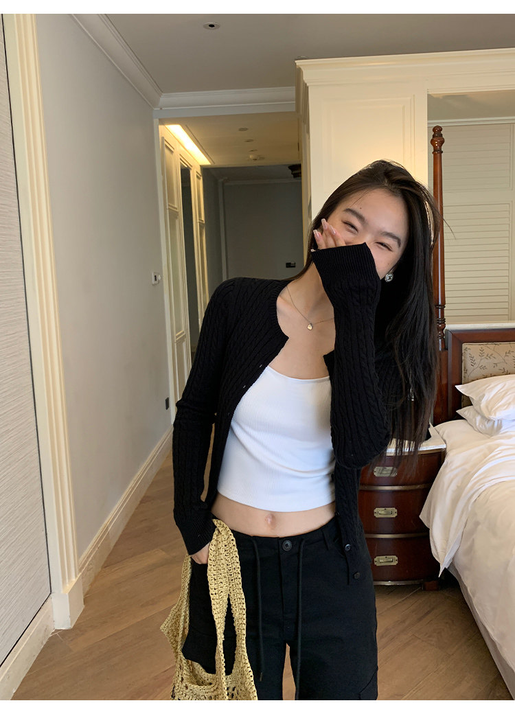 Черный весенний кардиган, приталенная куртка, короткий лонгслив