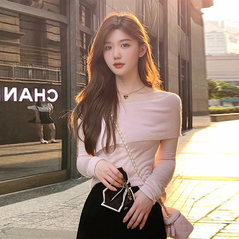 Розовый трикотажный весенний лонгслив, свитер, подходит для подростков, облегающий крой