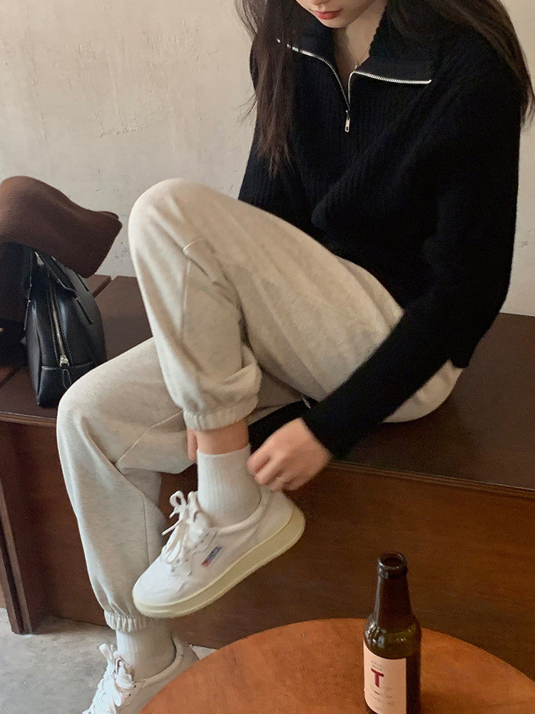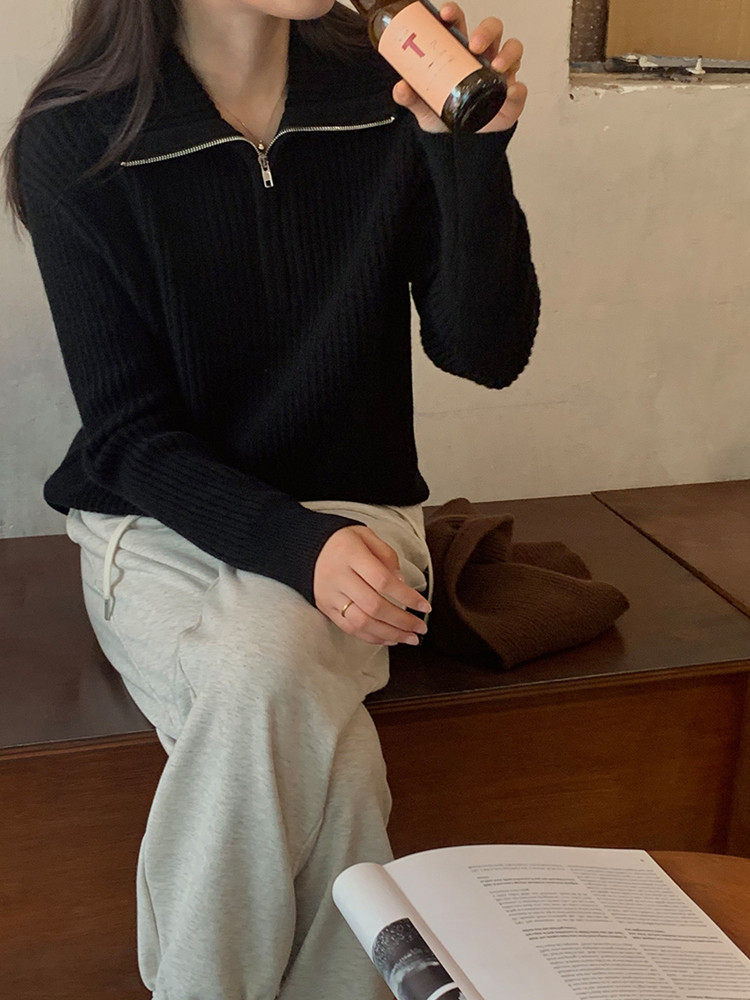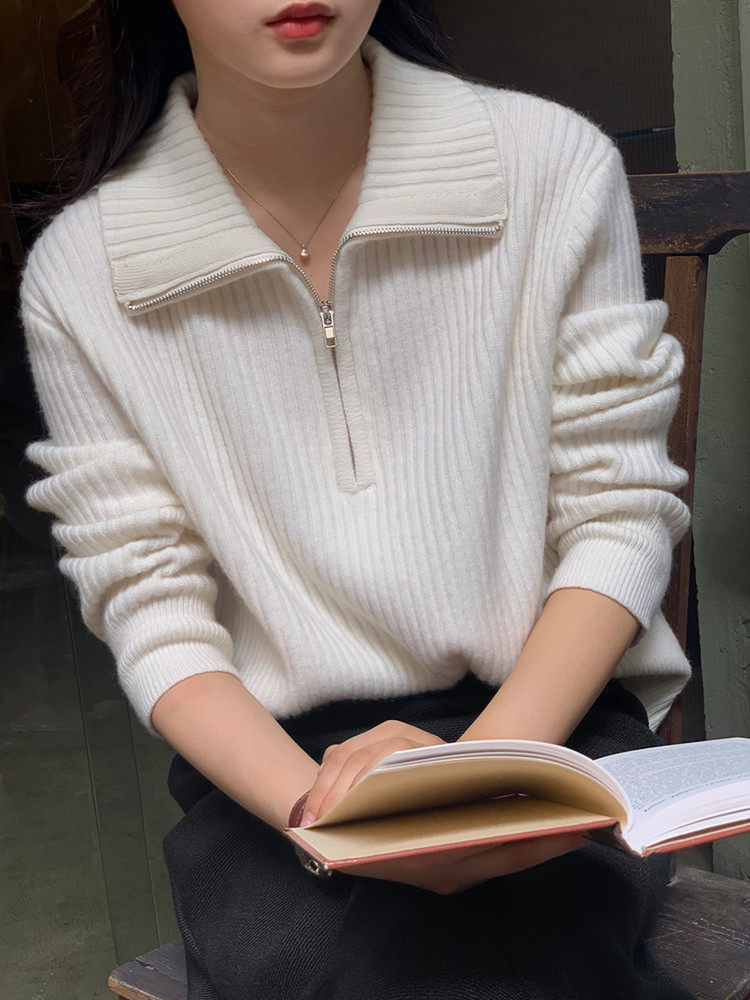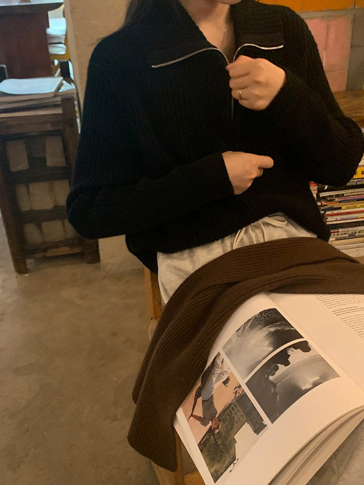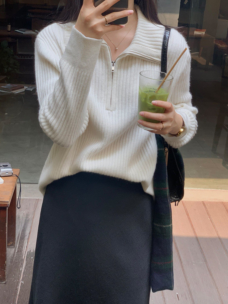 Демисезонный трикотажный свитер с молнией, большой размер
