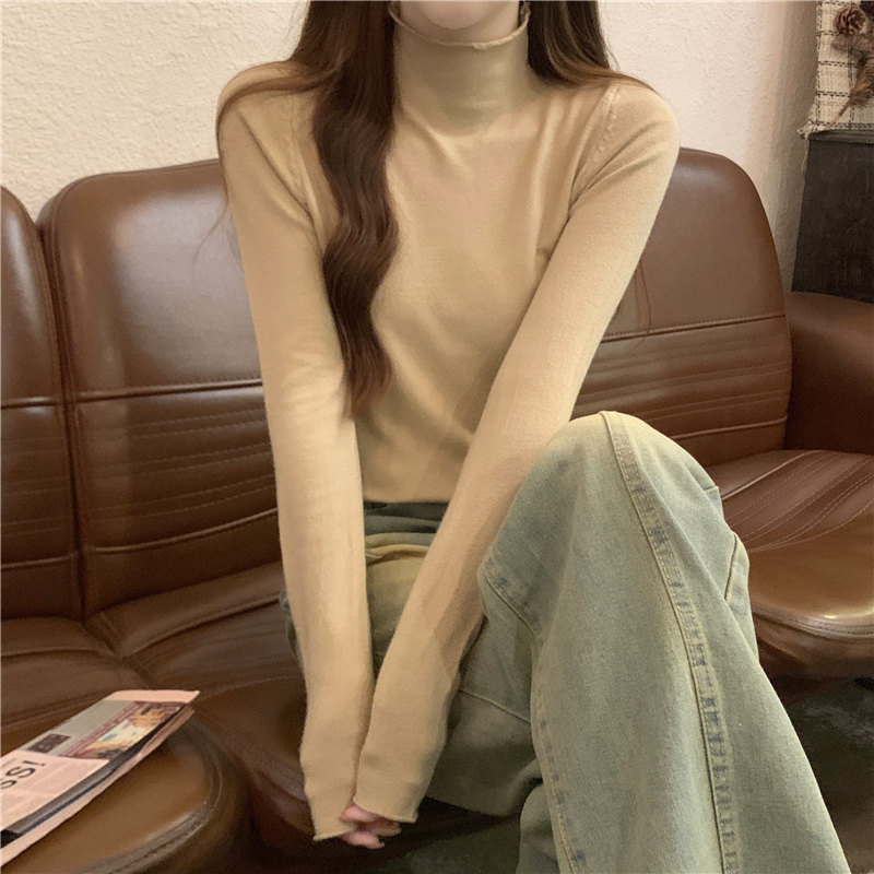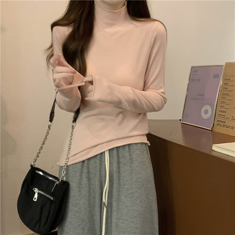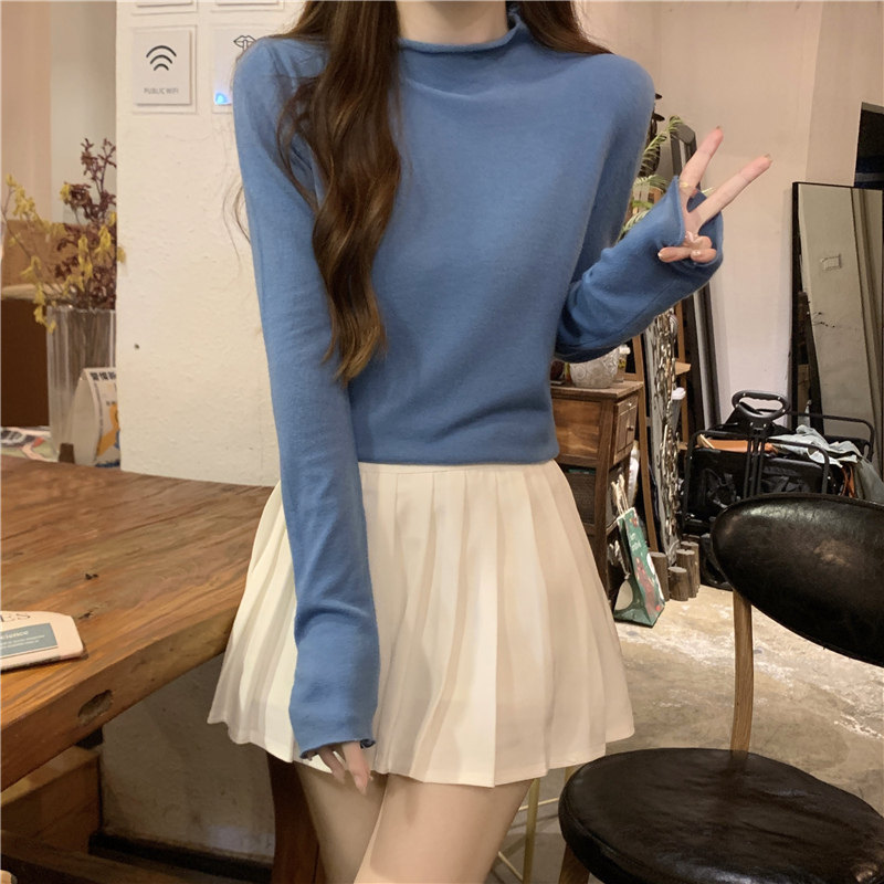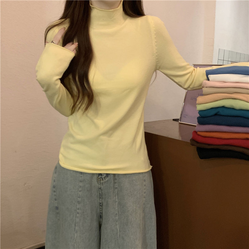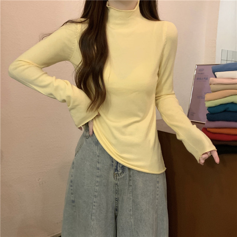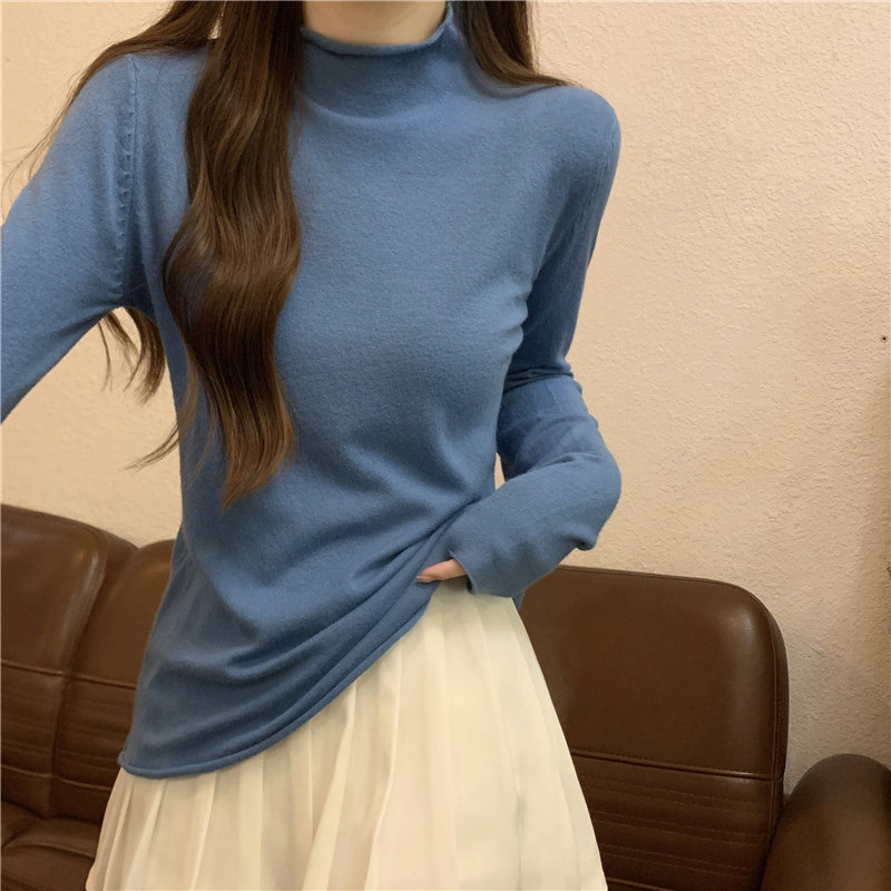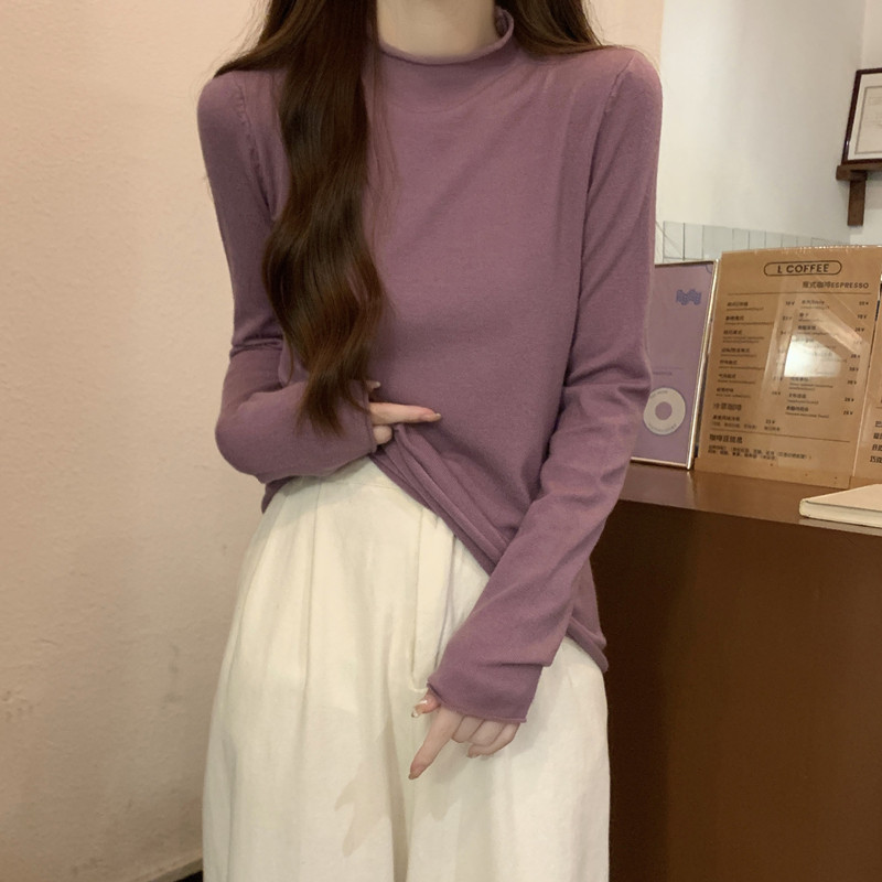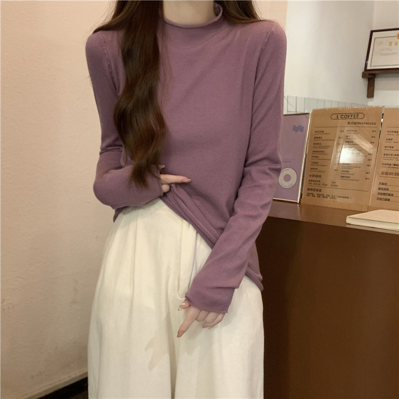 Сиреневый демисезонный свитер, приталенный трикотажный лонгслив, высокий воротник