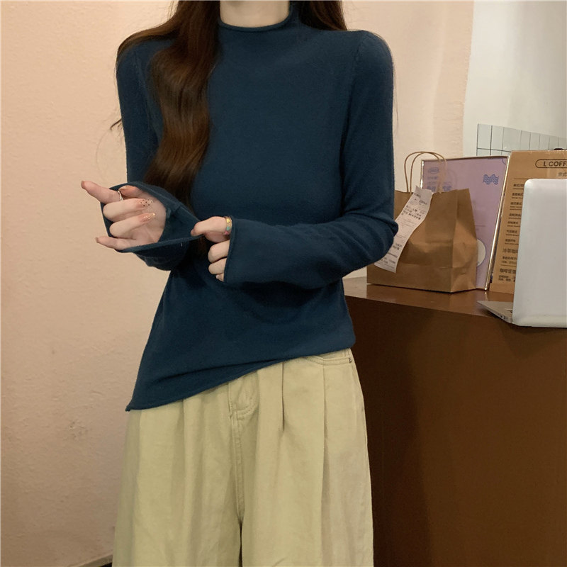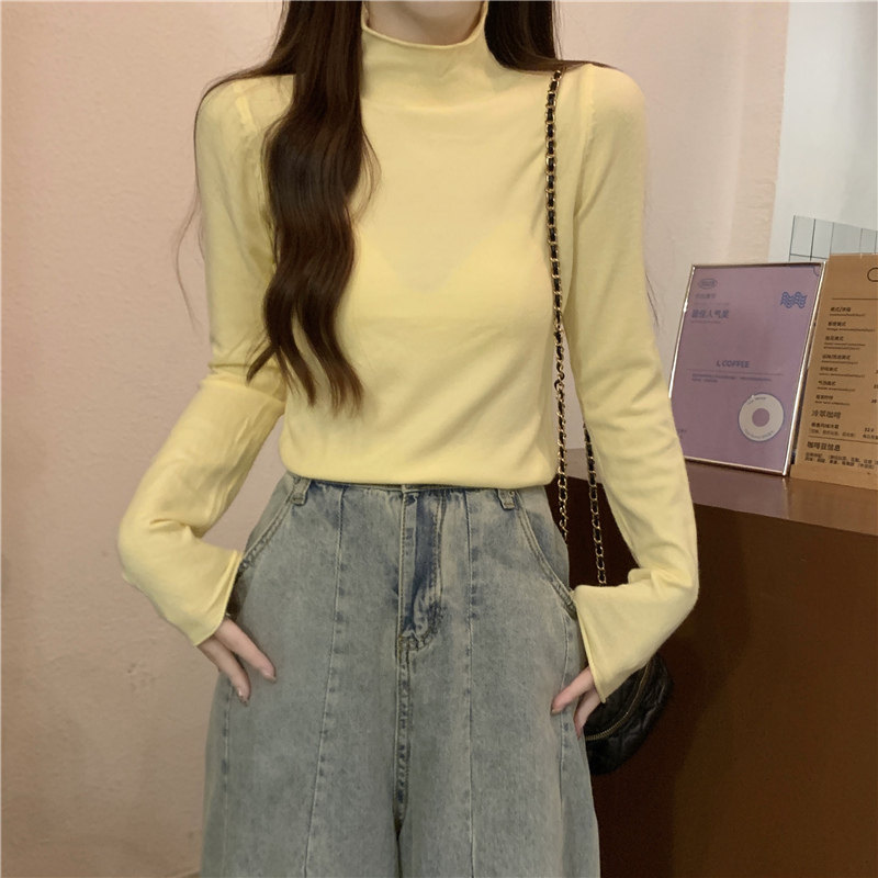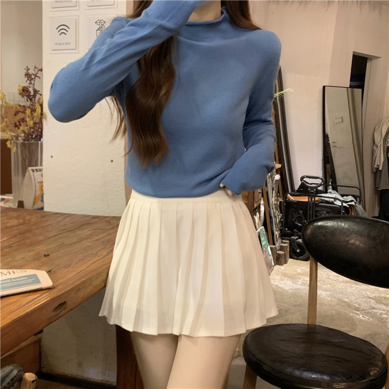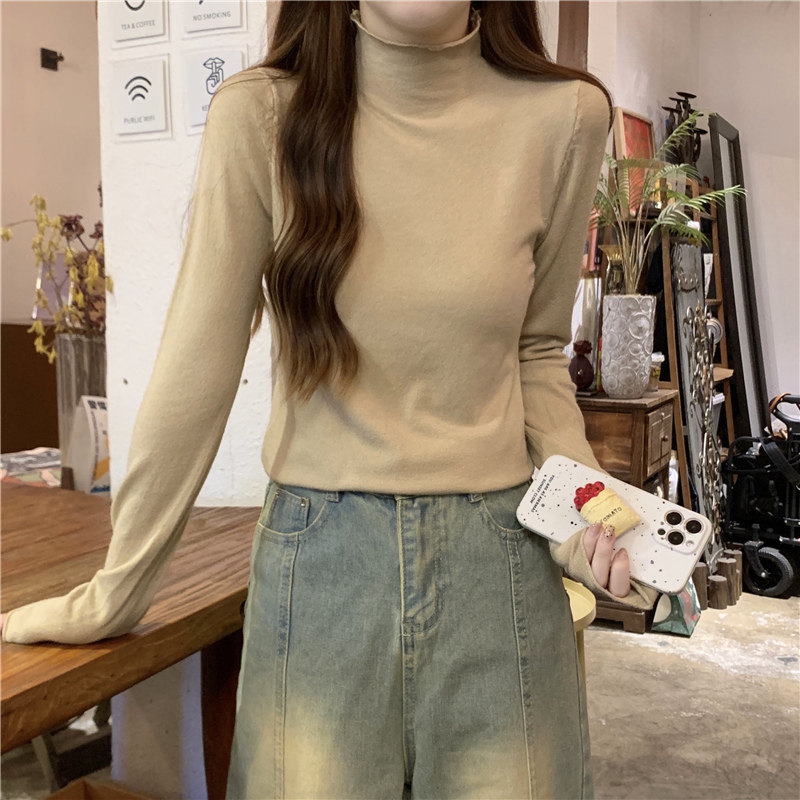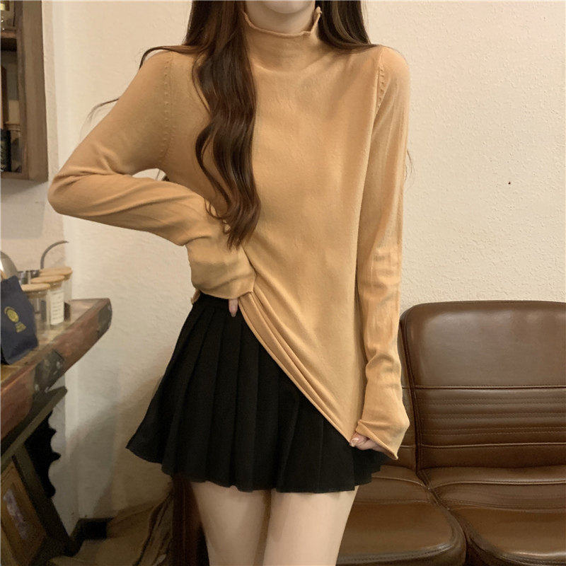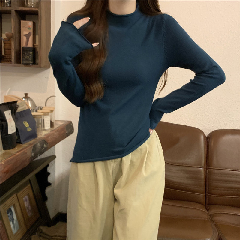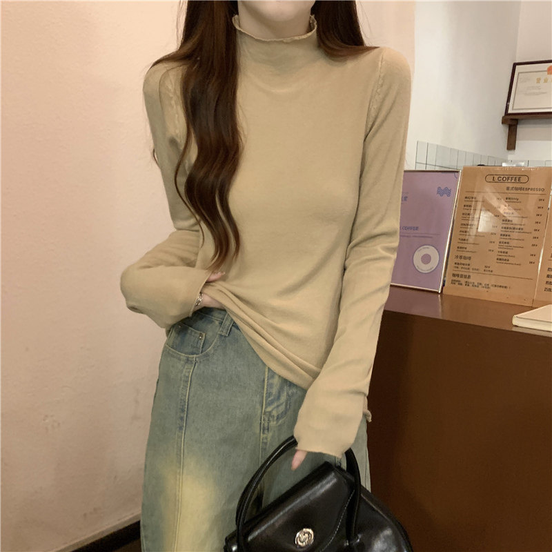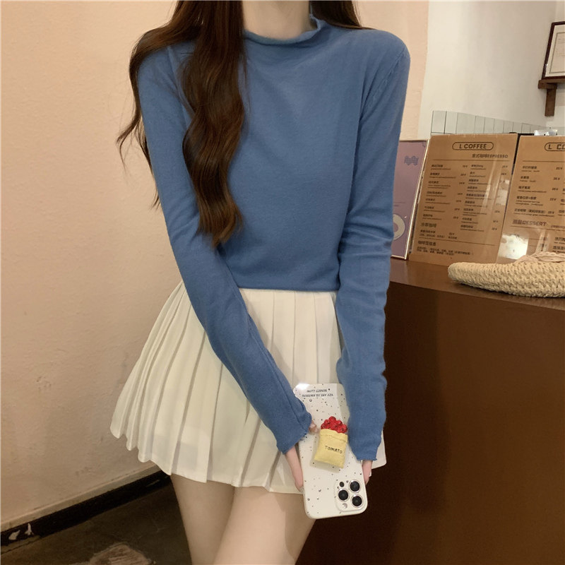 Сиреневый демисезонный свитер, приталенный трикотажный лонгслив, высокий воротник
