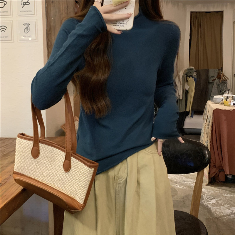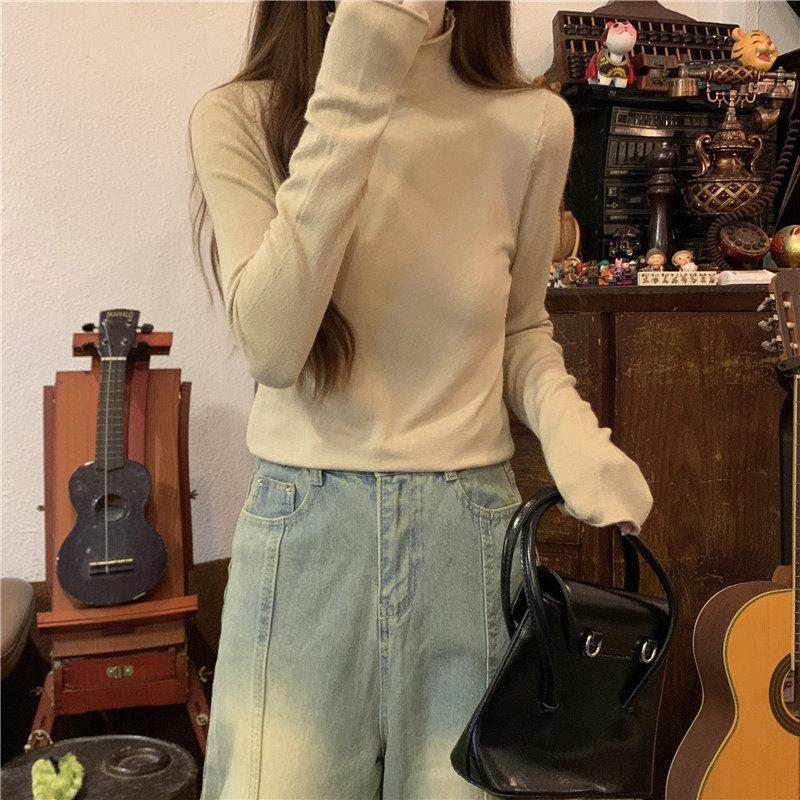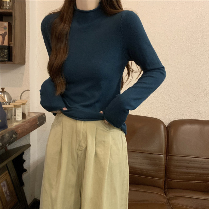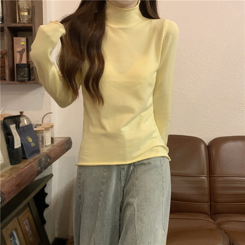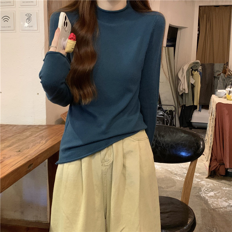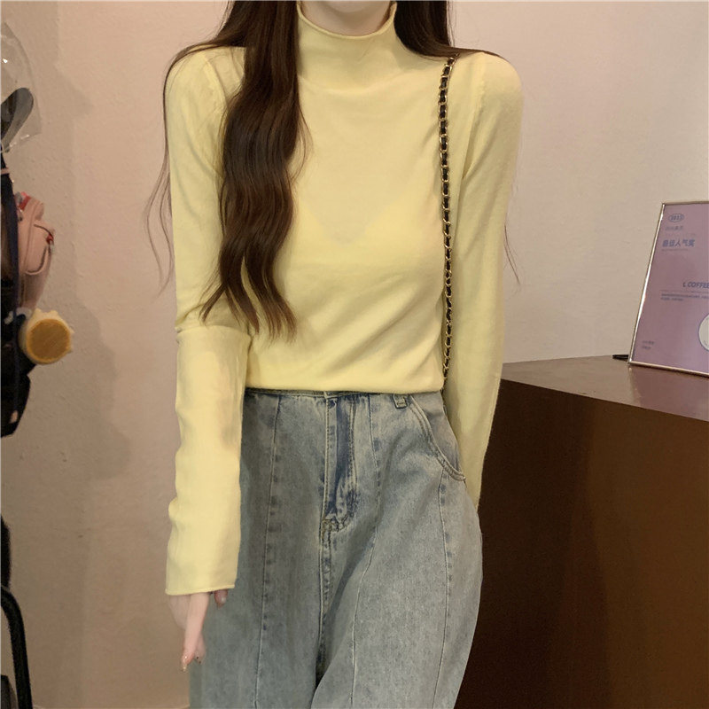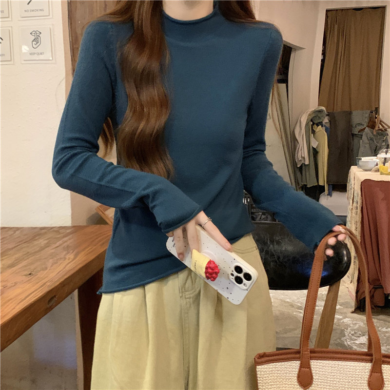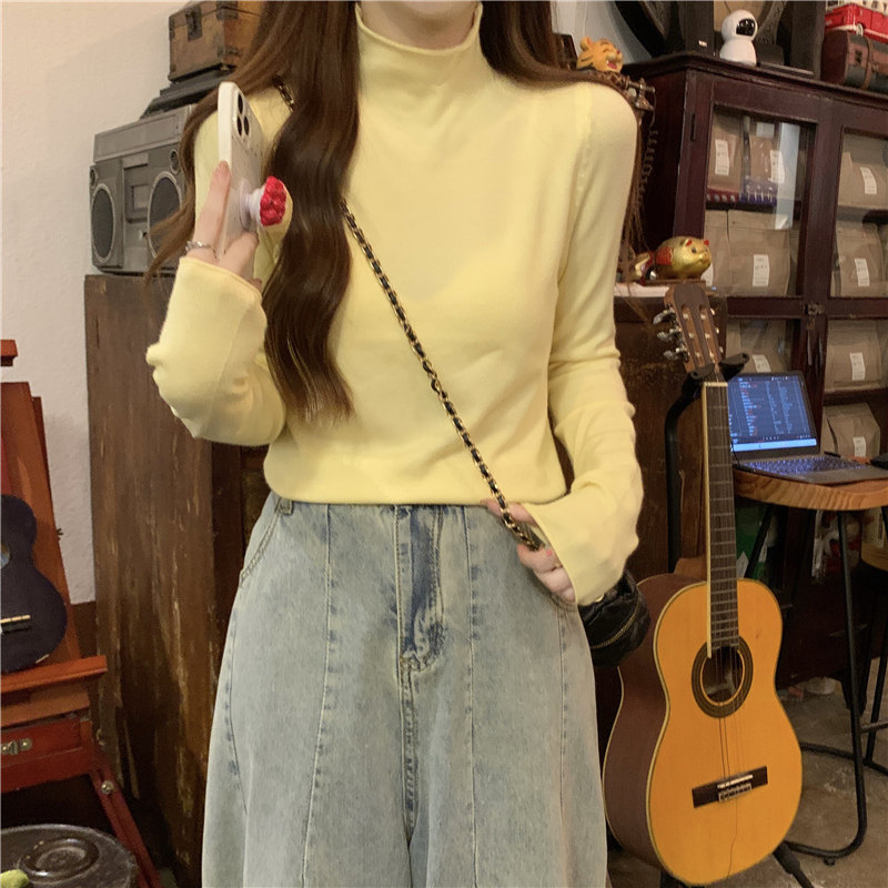 Сиреневый демисезонный свитер, приталенный трикотажный лонгслив, высокий воротник