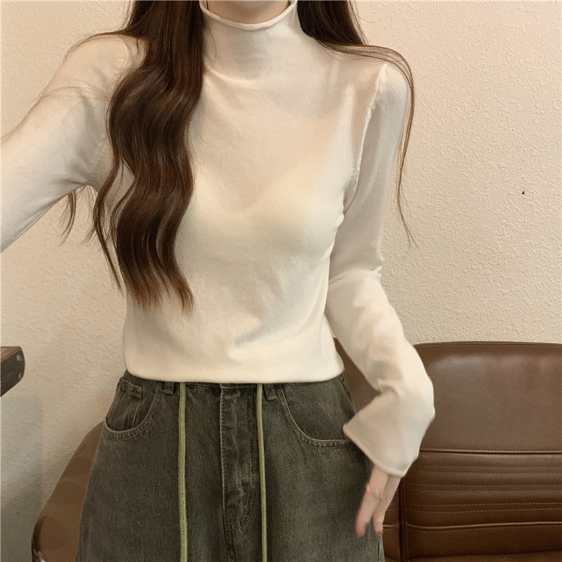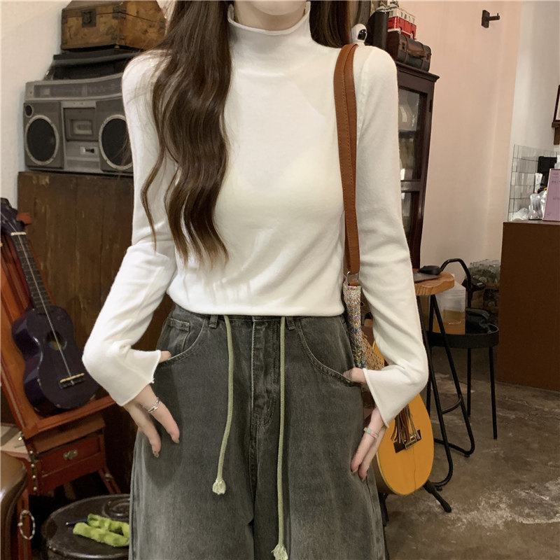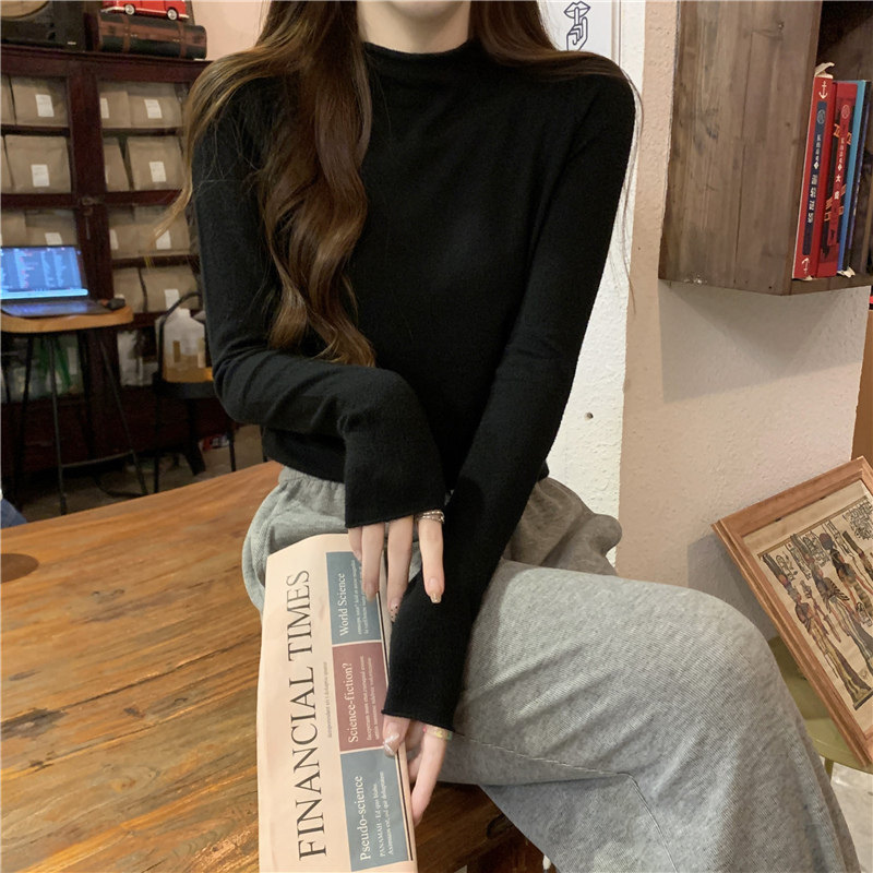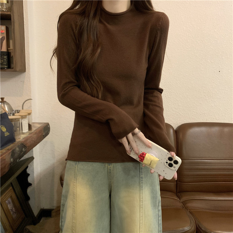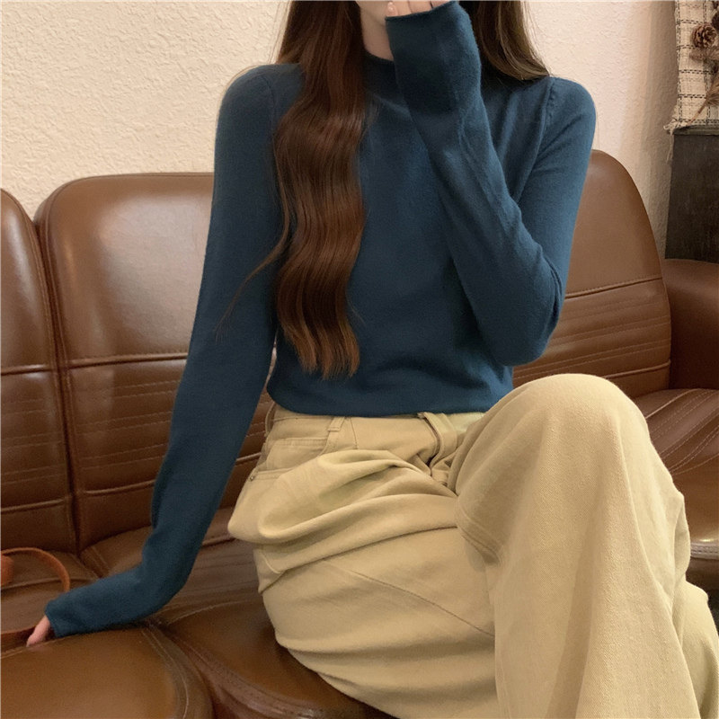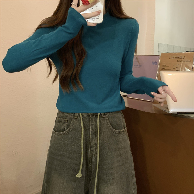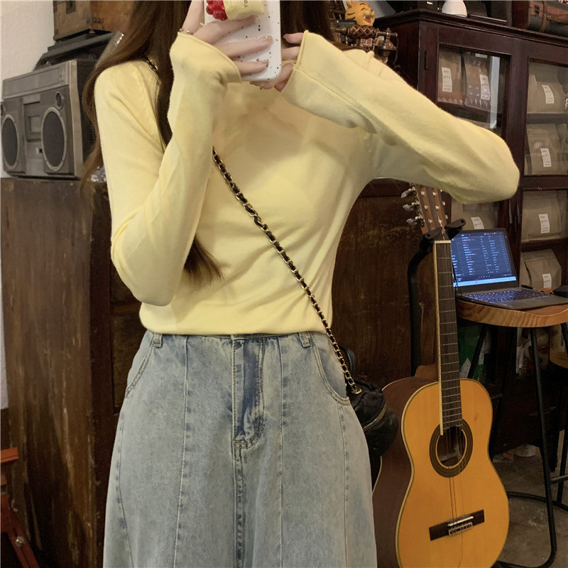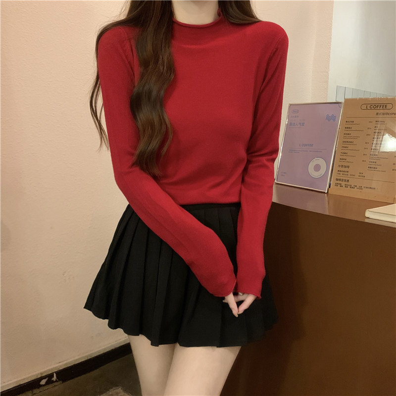 Сиреневый демисезонный свитер, приталенный трикотажный лонгслив, высокий воротник