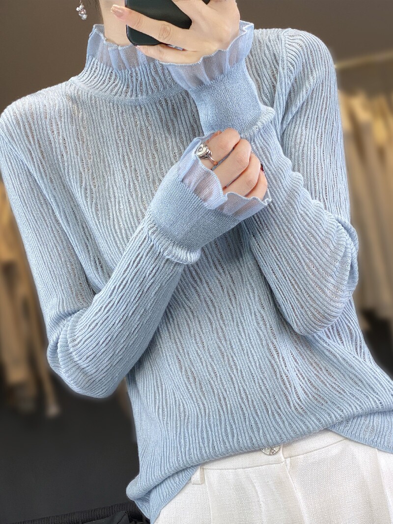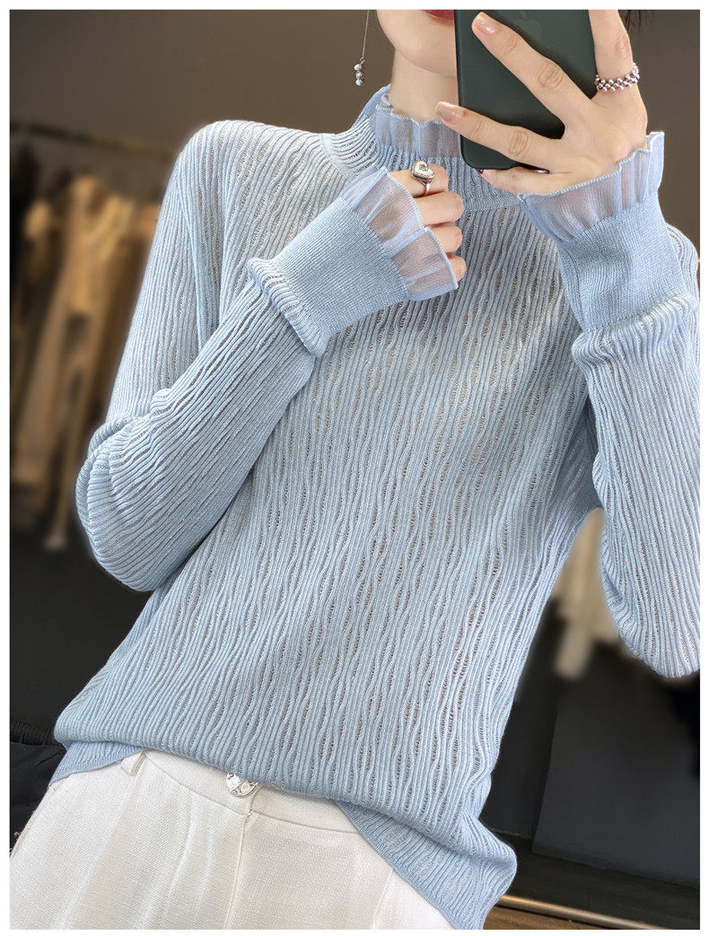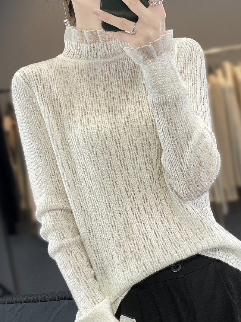 Кружевной приятный телу лонгслив, шерстяной крючок для вязания, свитер