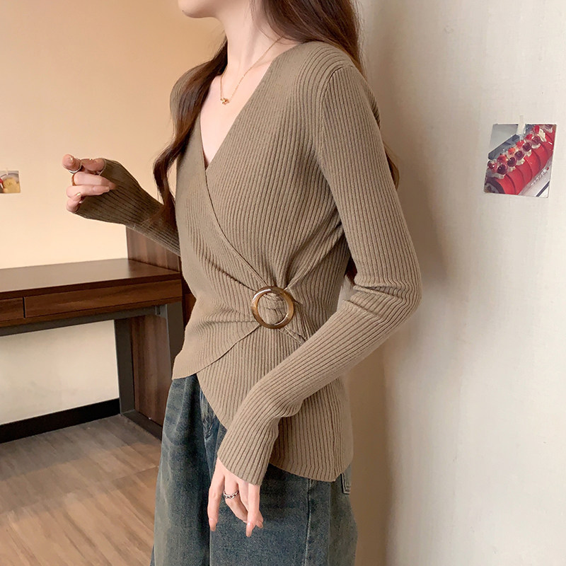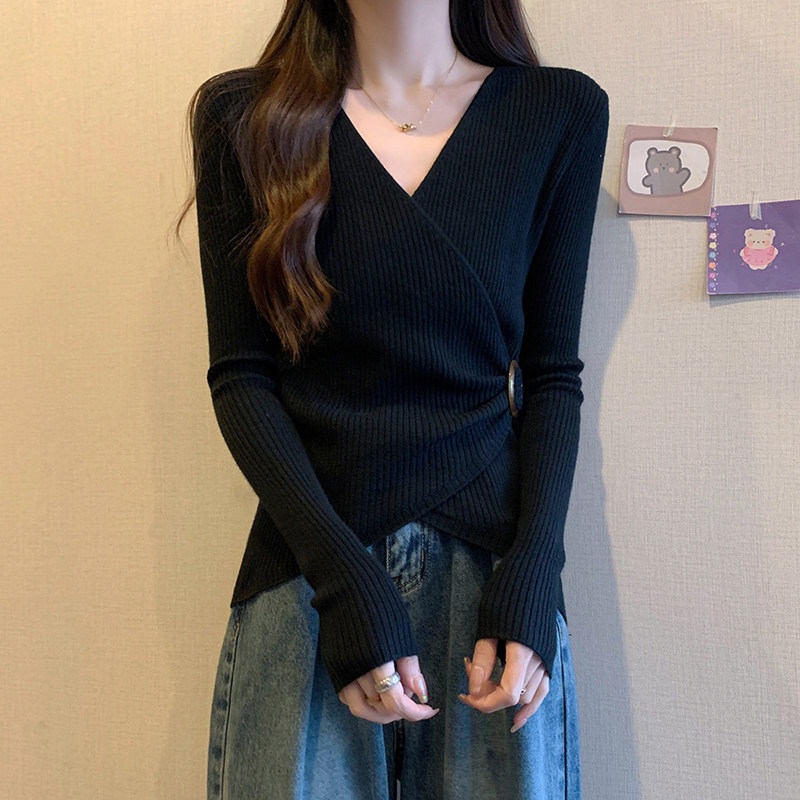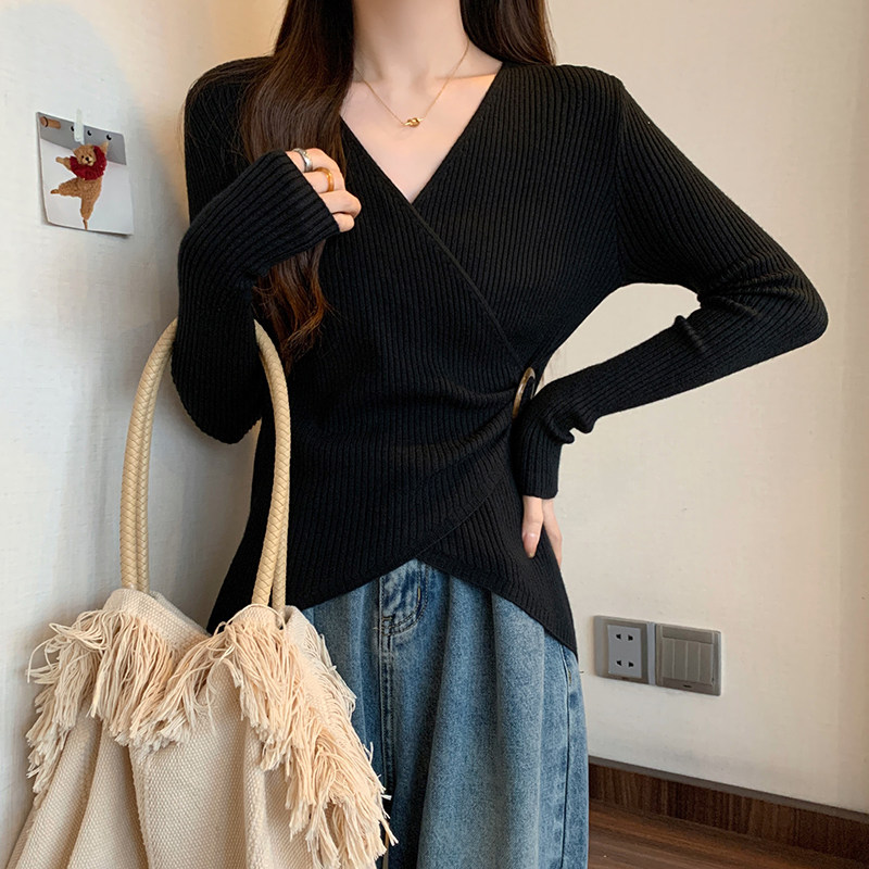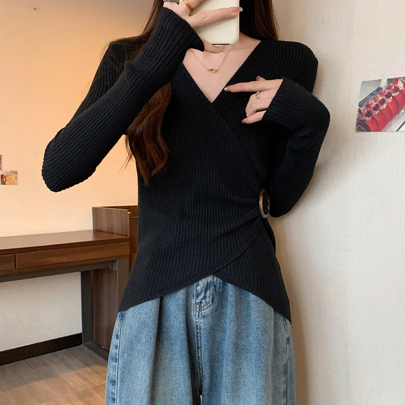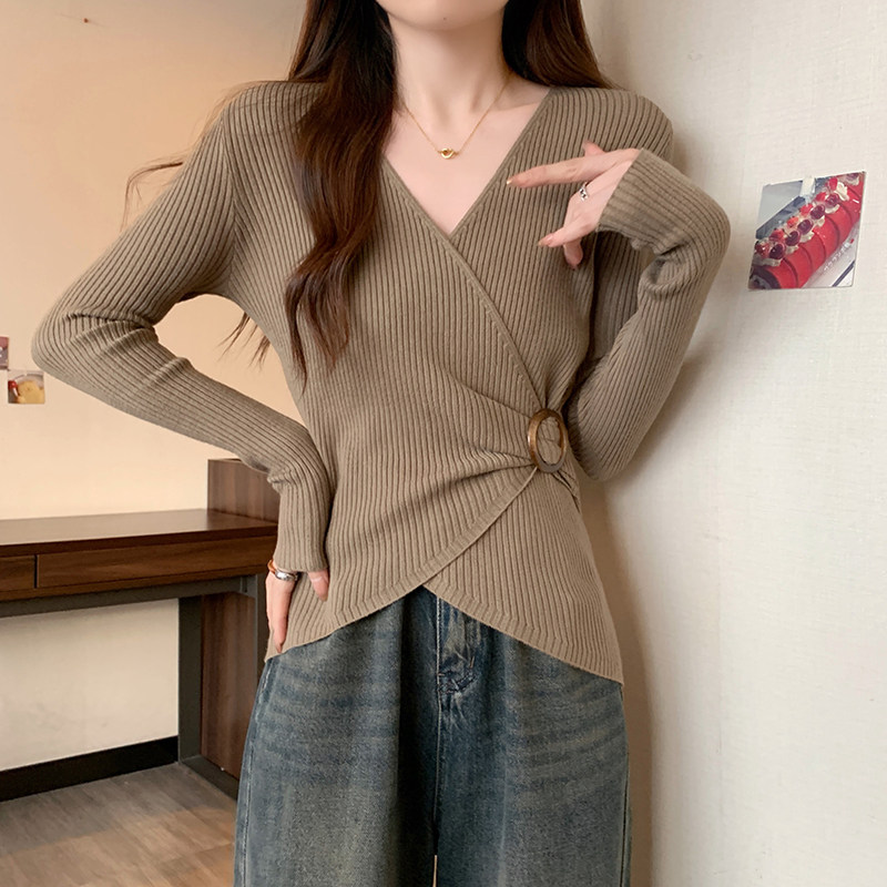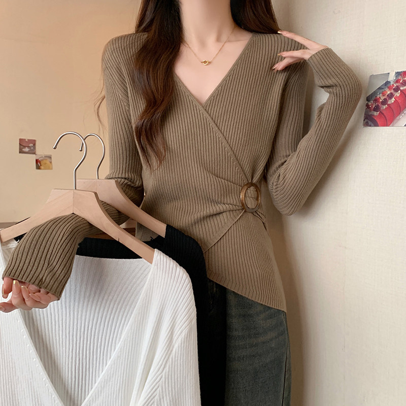 Трикотажный дизайнерский приталенный корсет, свитер, увеличенная толщина, тренд сезона, V-образный вырез