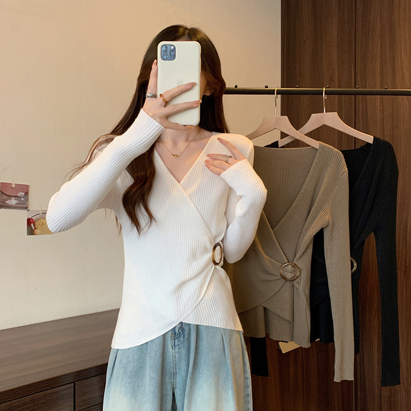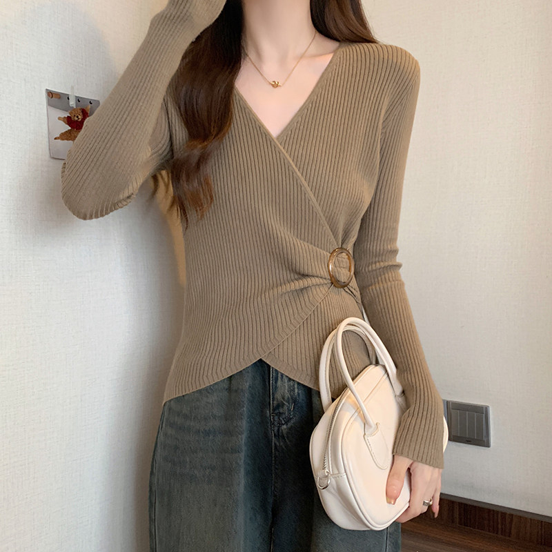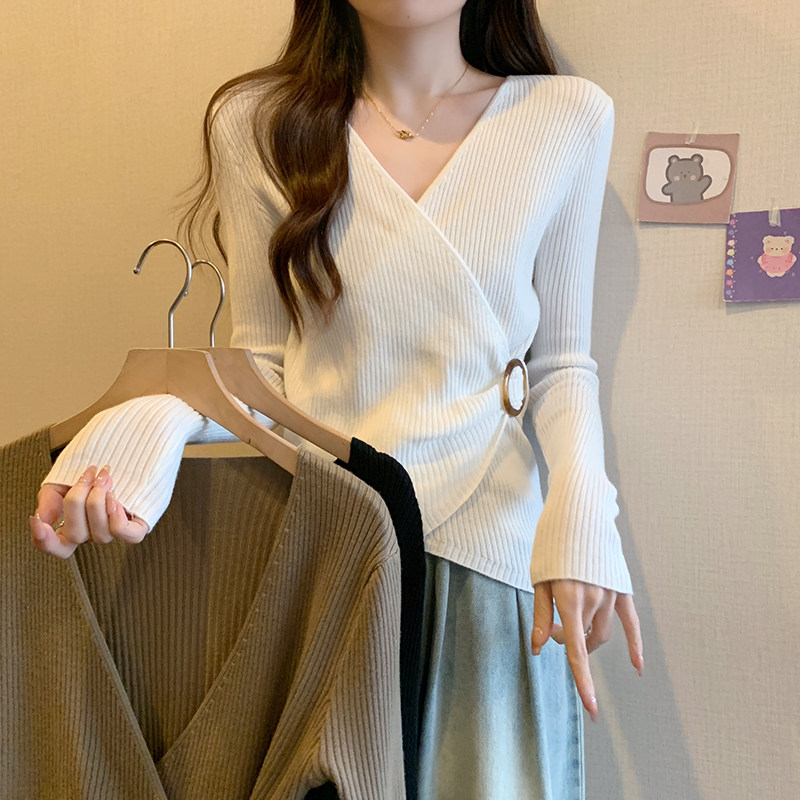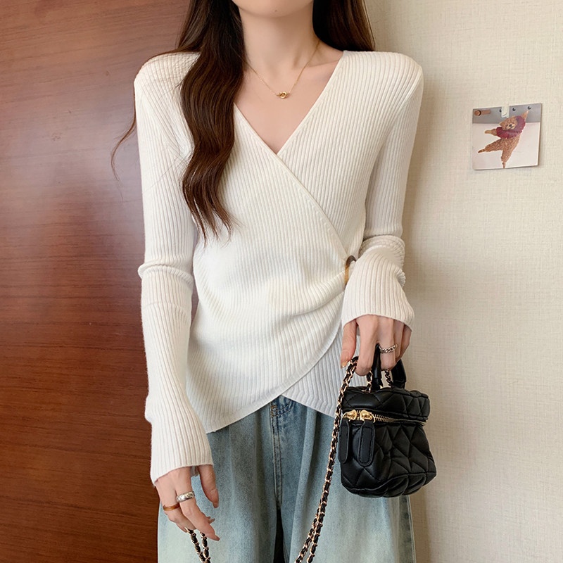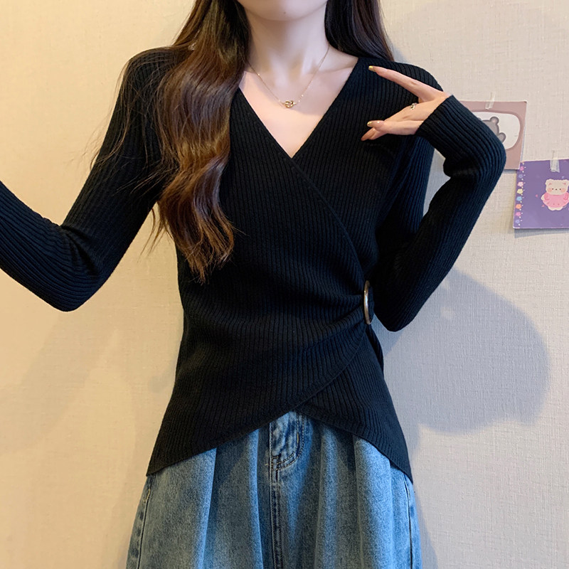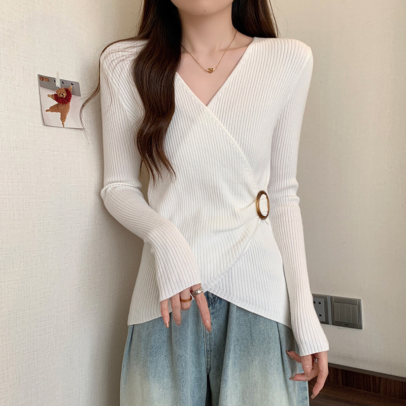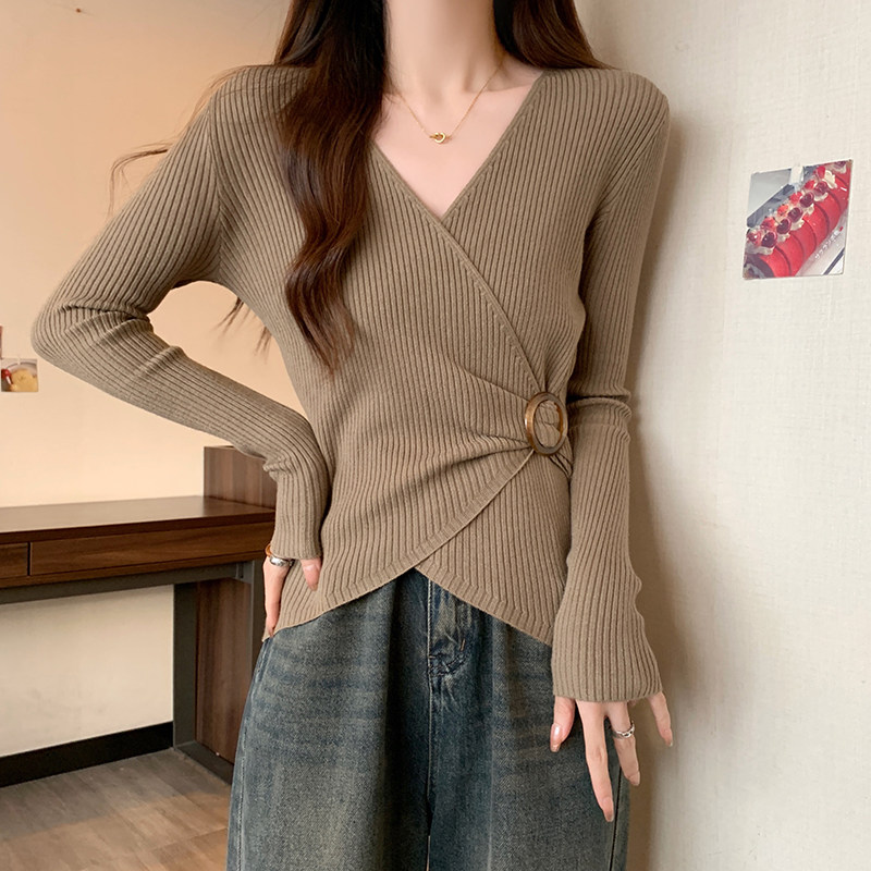Трикотажный дизайнерский приталенный корсет, свитер, увеличенная толщина, тренд сезона, V-образный вырез