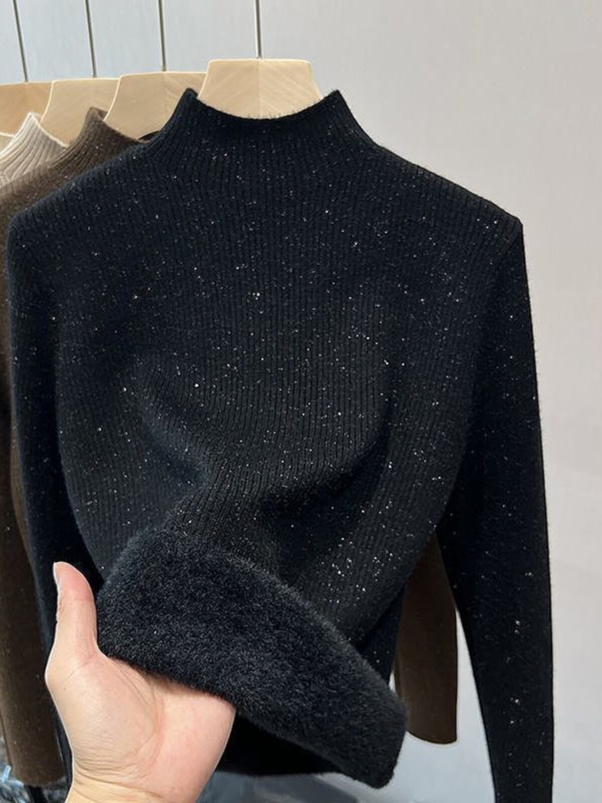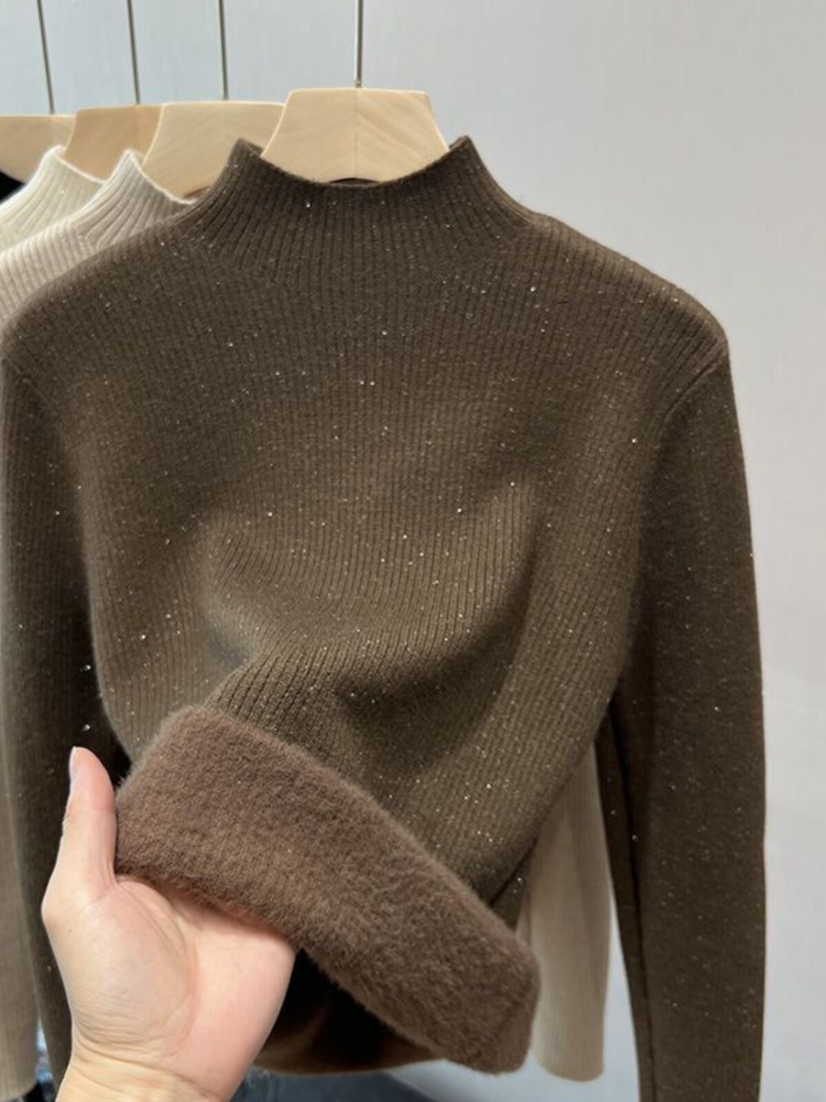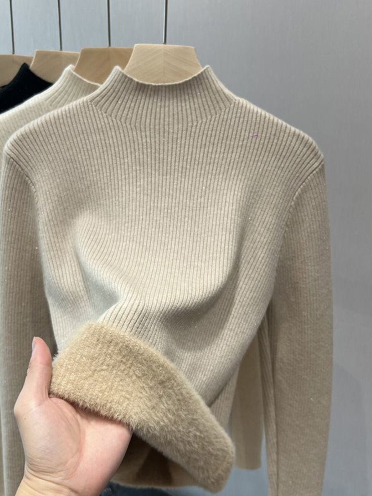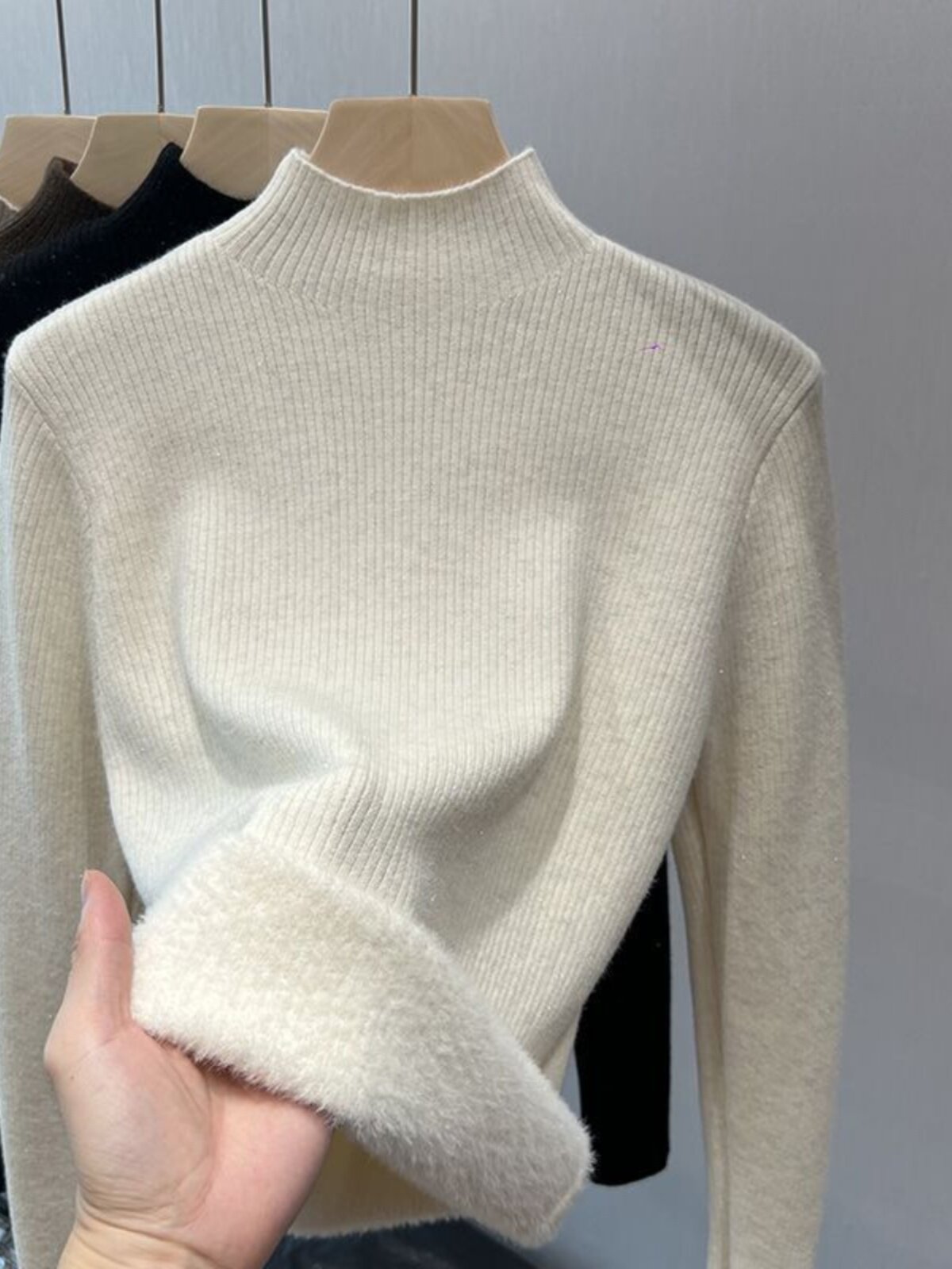 Трикотажный демисезонный утепленный базовый приятный телу свитер, французский стиль, изысканный стиль, высокий воротник