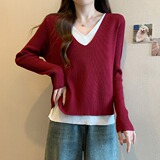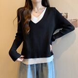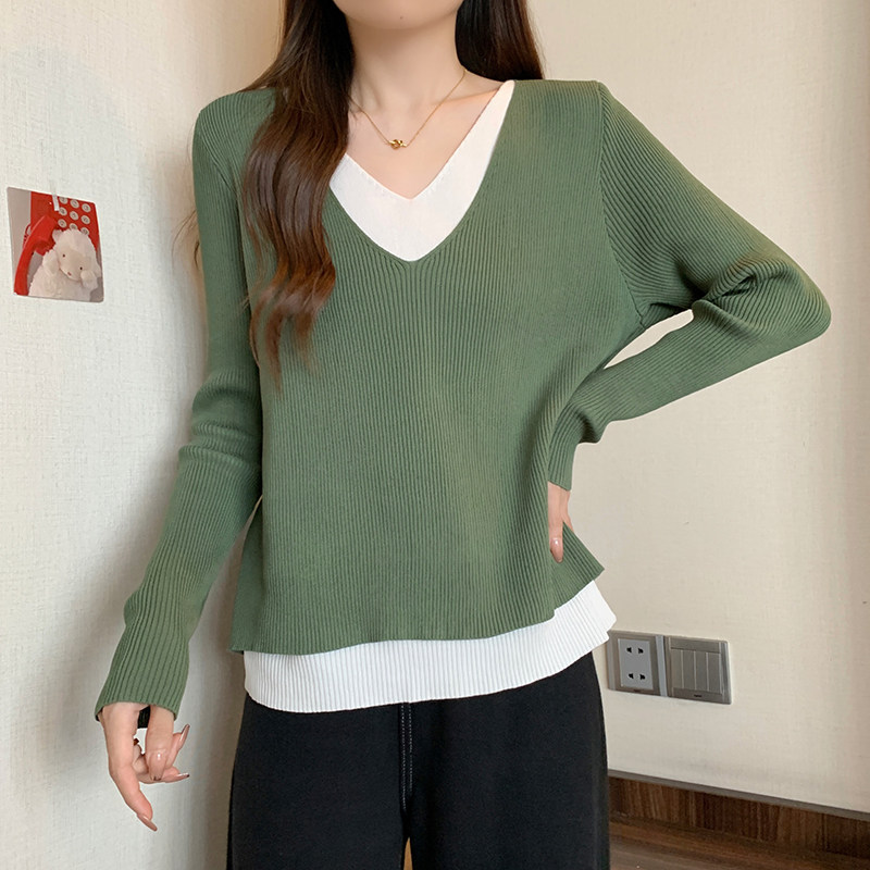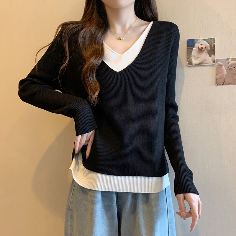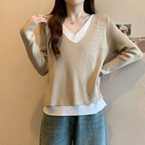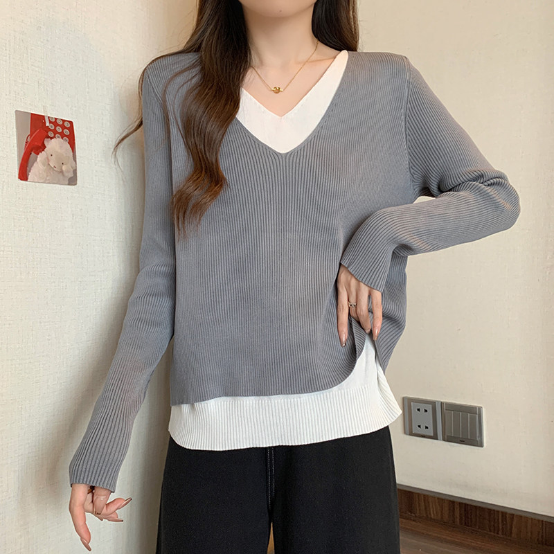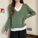 Трикотажный комплект, демисезонный базовый приятный телу свитер, большой размер, изысканный стиль, V-образный вырез
