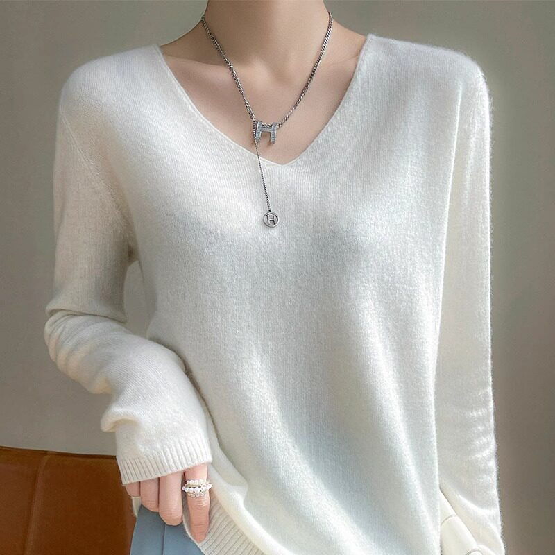 Кашемировый демисезонный тонкий трикотажный базовый свитер, V-образный вырез, оверсайз