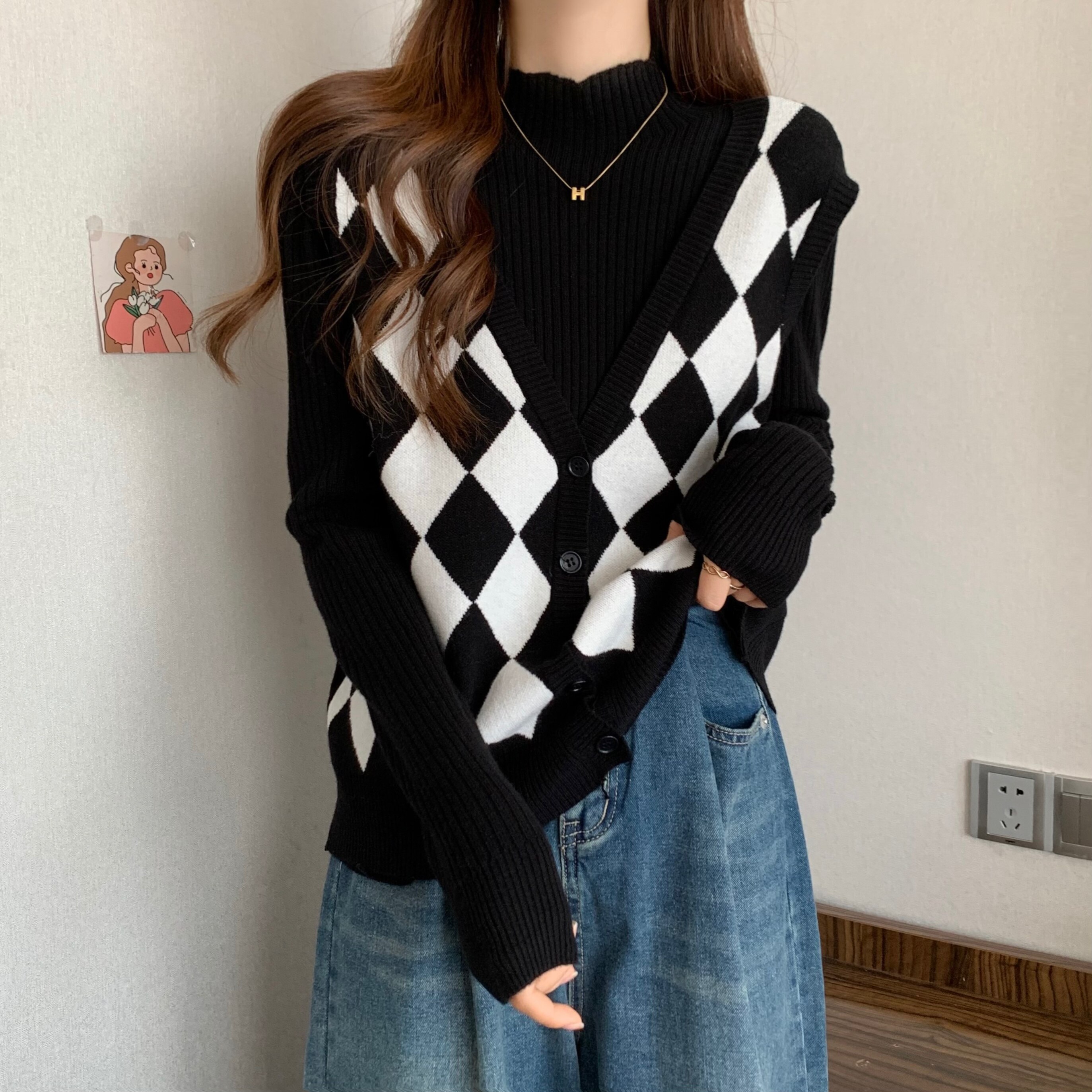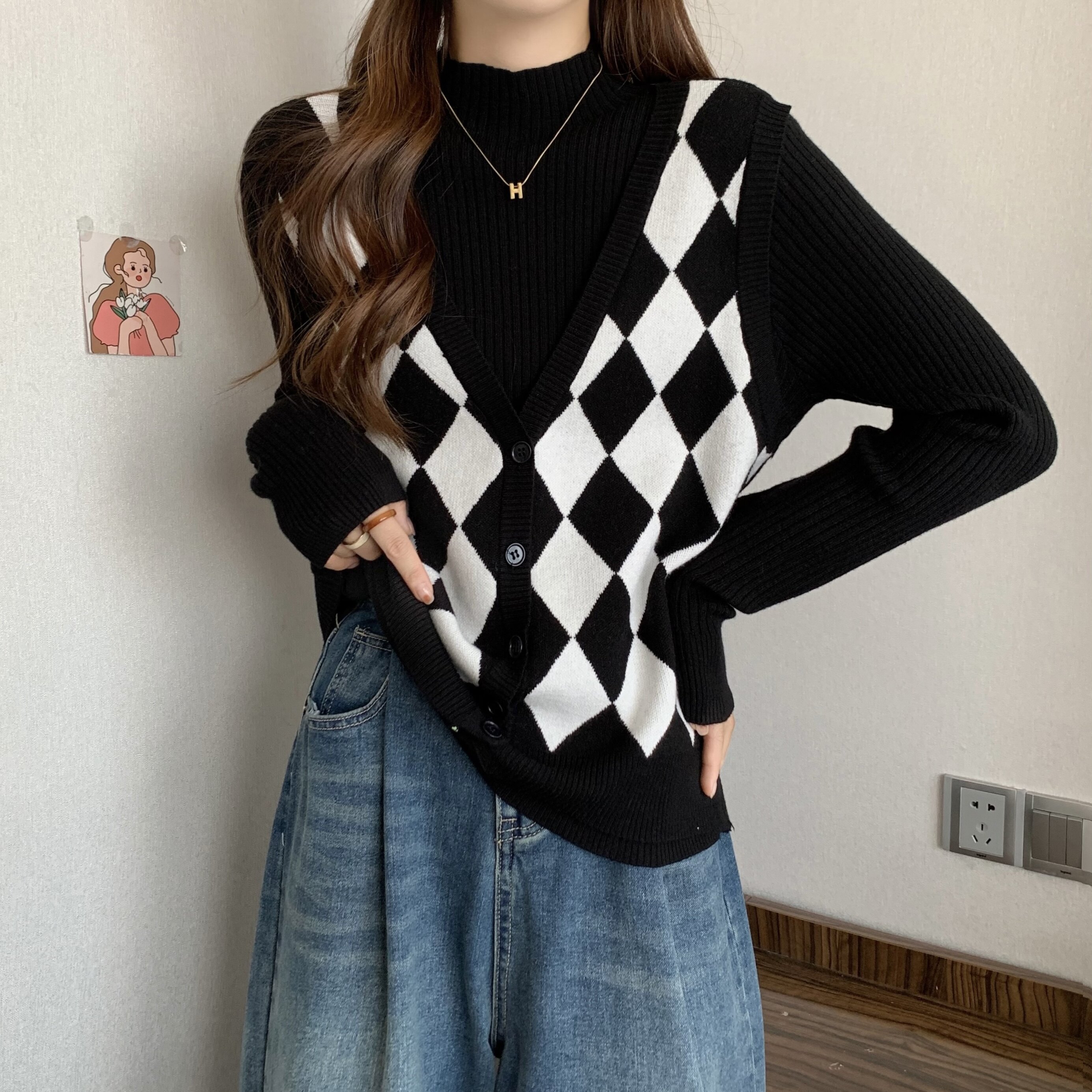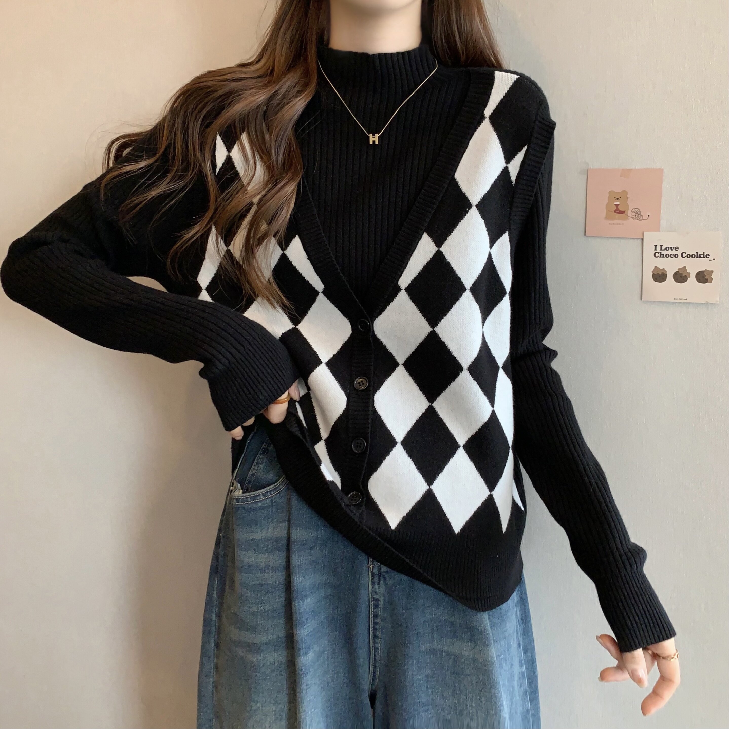 Комплект, трикотажный демисезонный базовый приятный телу свитер, в западном стиле, большой размер, высокий воротник