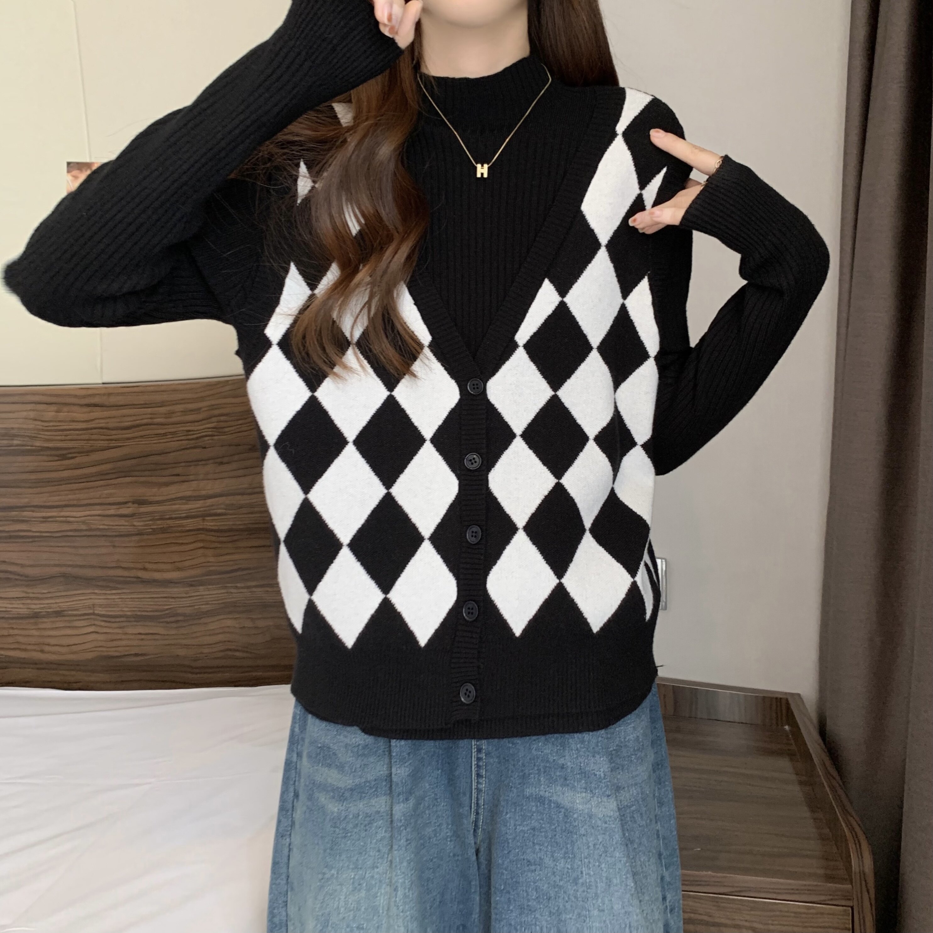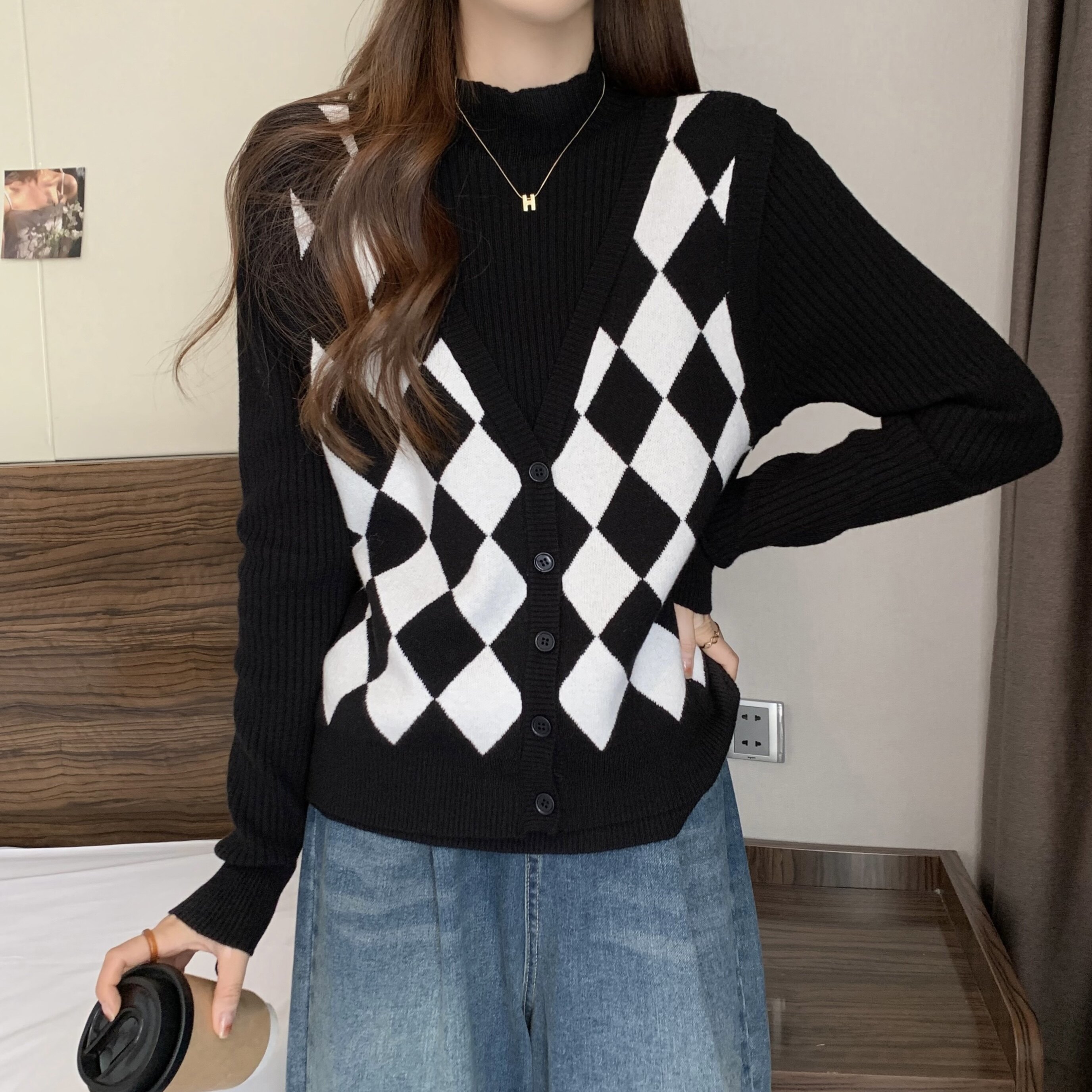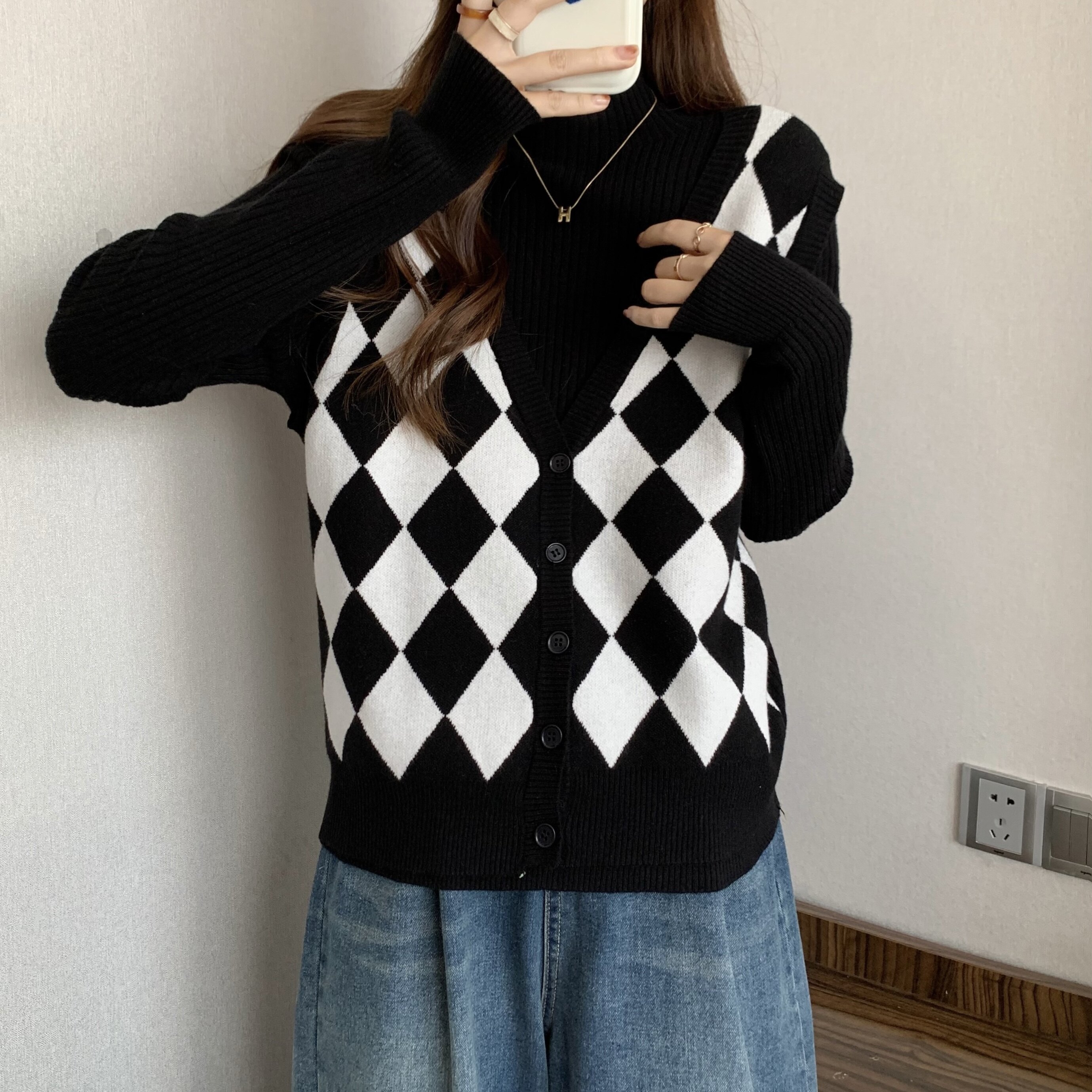Комплект, трикотажный демисезонный базовый приятный телу свитер, в западном стиле, большой размер, высокий воротник
