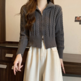 Свитер с молнией, куртка, короткий дизайнерский кардиган, трикотажное демисезонное термобелье, тренд сезона