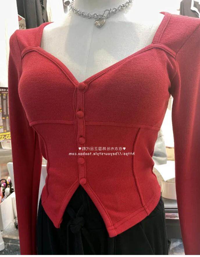 Отправить 51studio домашнее ZB262 очень женское положительное красное персиковое сердце, ведущее в грудь, длинная T -For