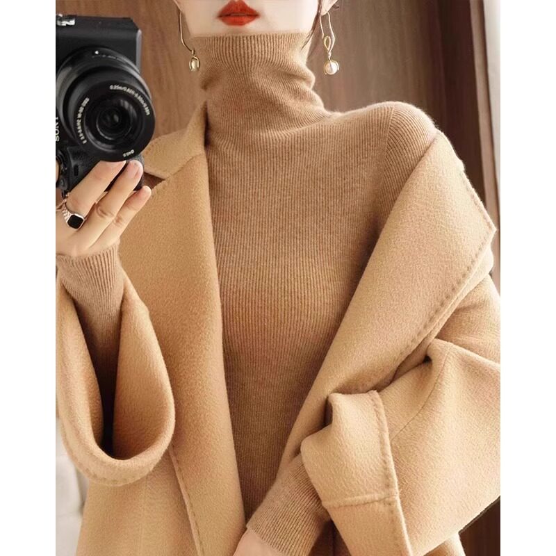 Цветной базовый приятный телу свитер, демисезонный трикотажный плащ, в стиле Шанель