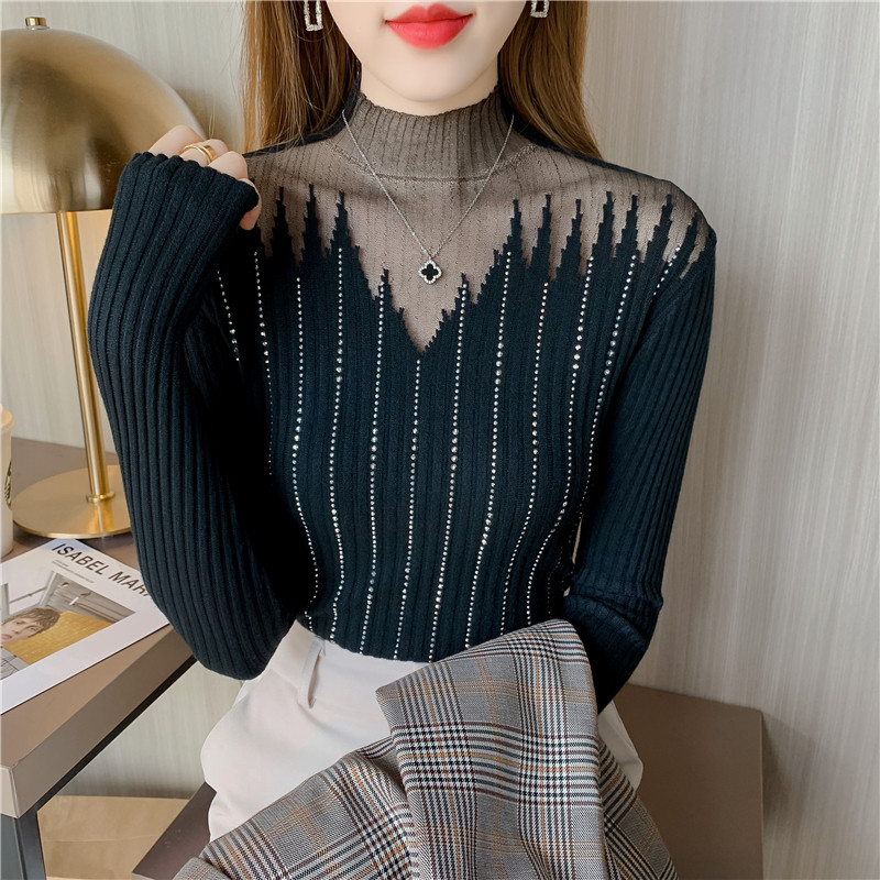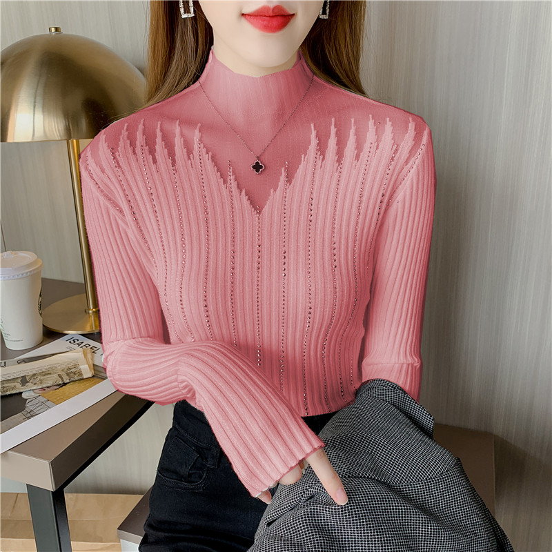 Сексуальный трикотажный свитер, базовый приятный телу лонгслив, высокий воротник, облегающий крой