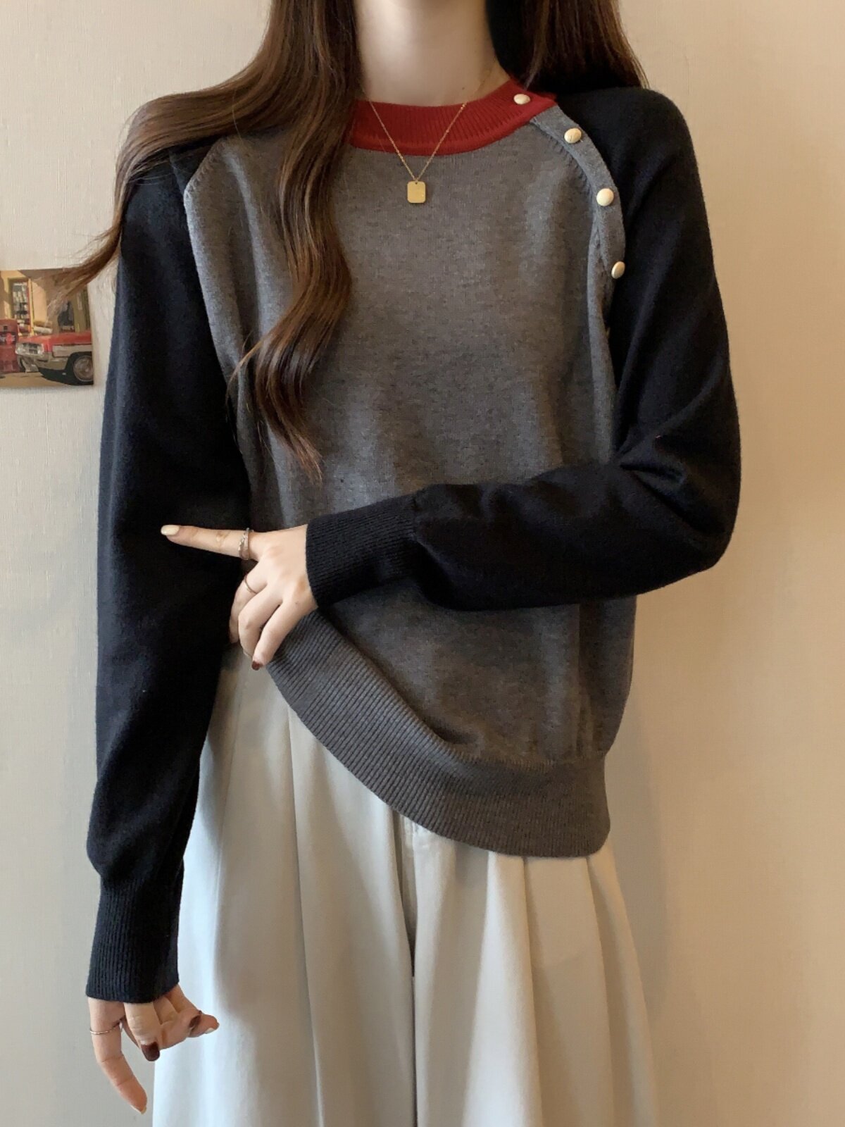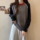 Трикотажный приятный телу демисезонный дизайнерский свитер с круглым воротником, большой размер, тренд сезона