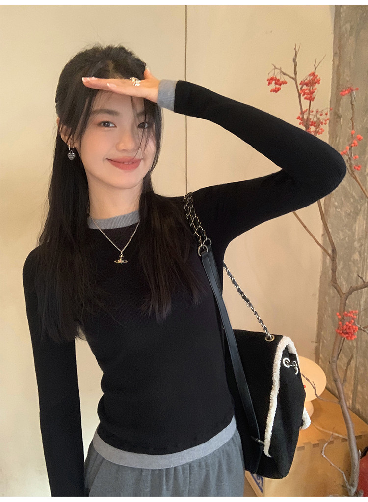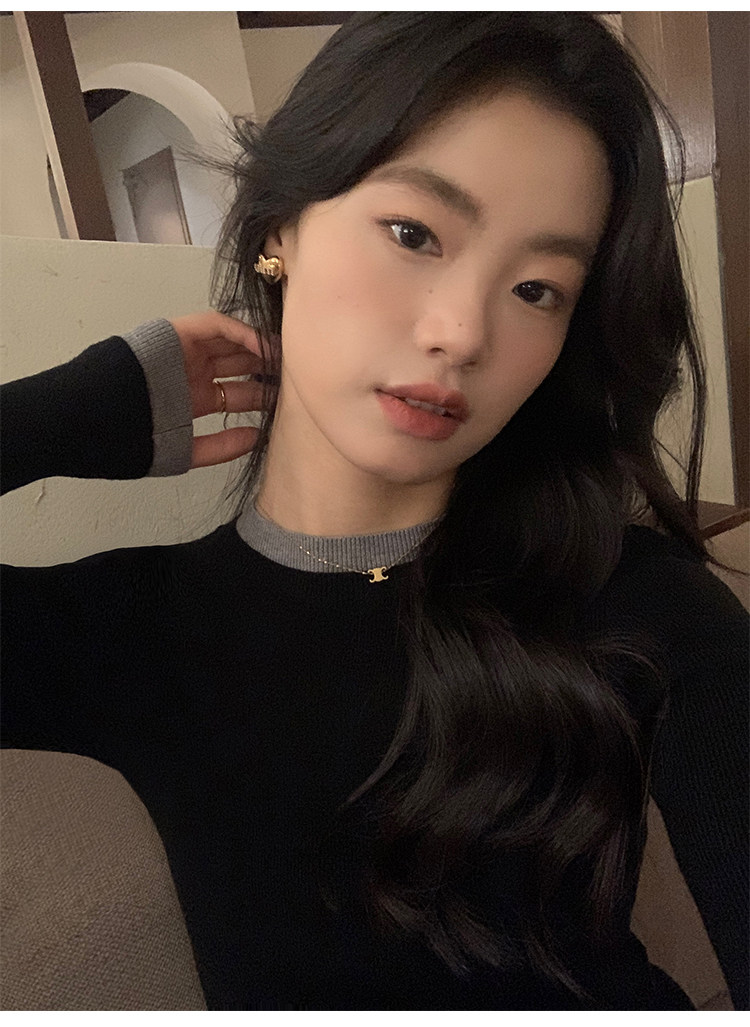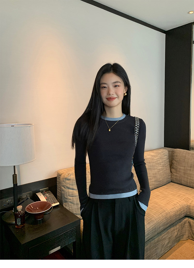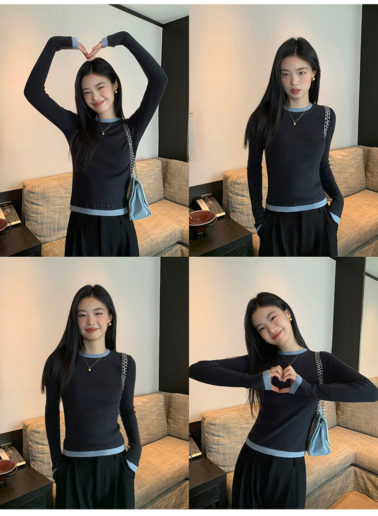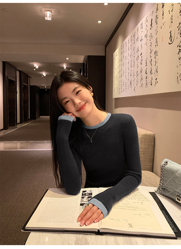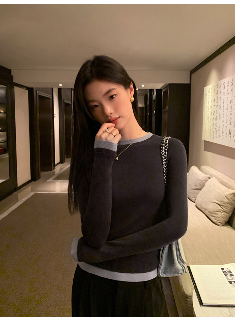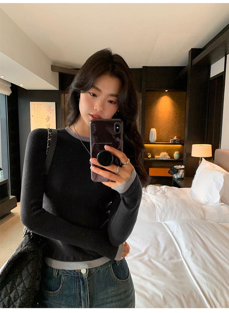 pusumede Трикотажный приталенный свитер с круглым воротником, базовый лонгслив