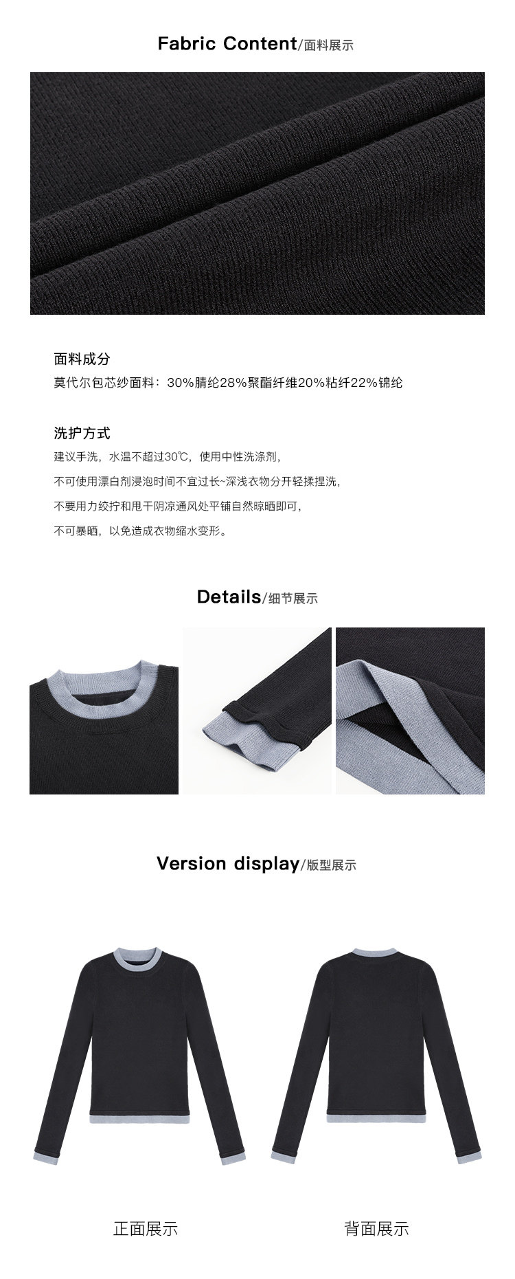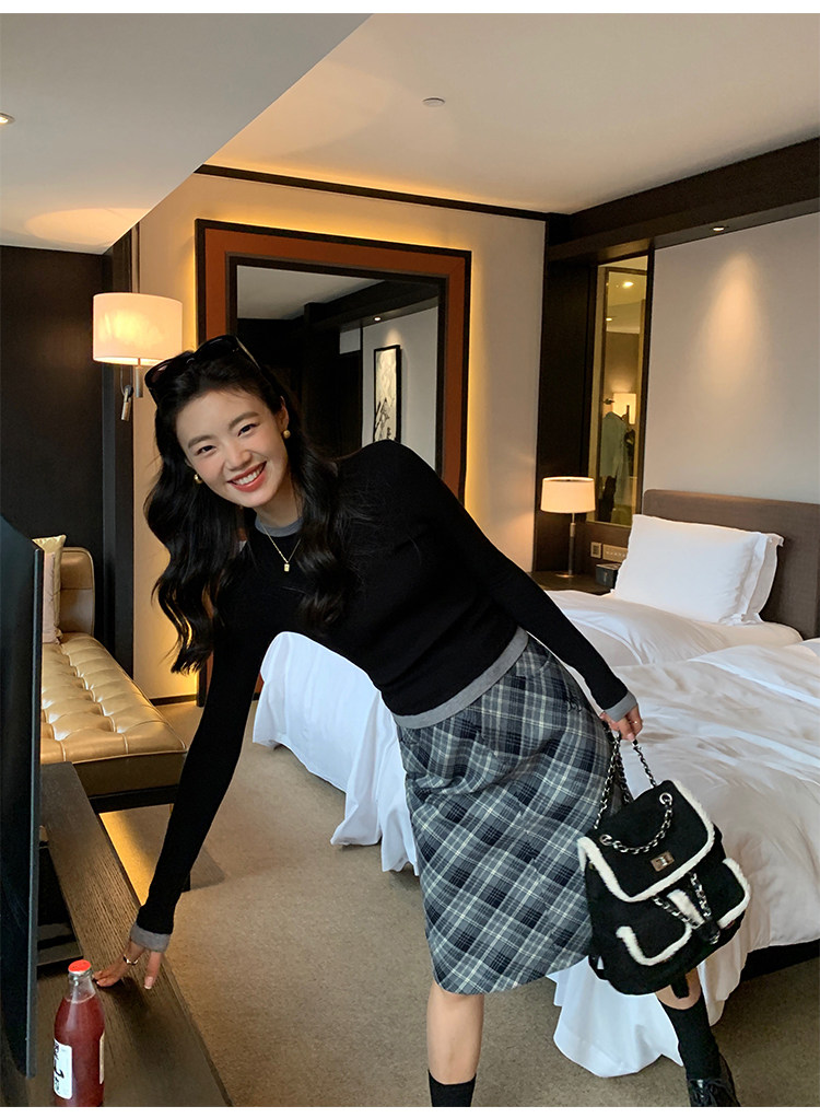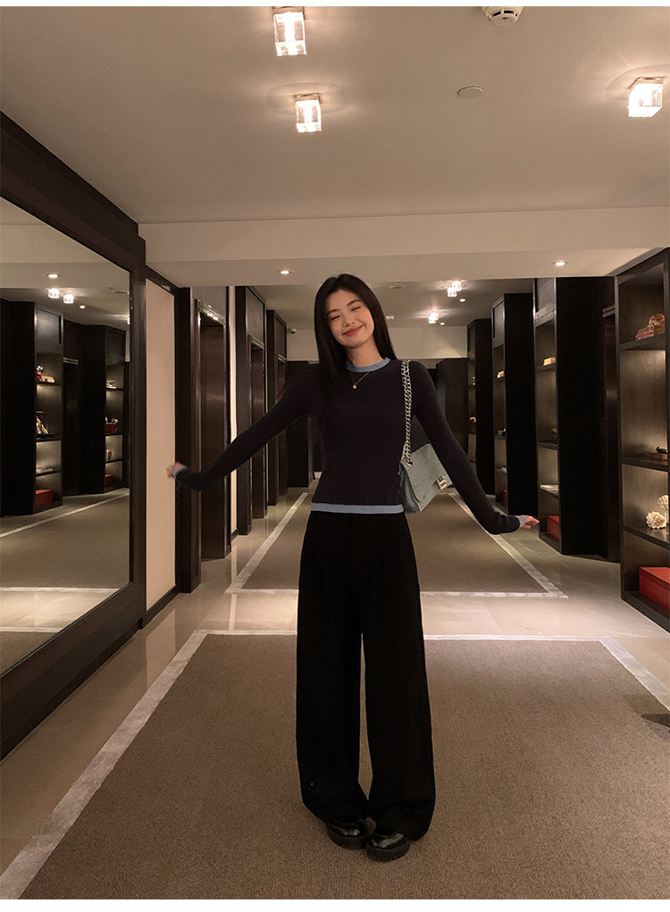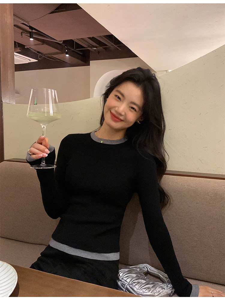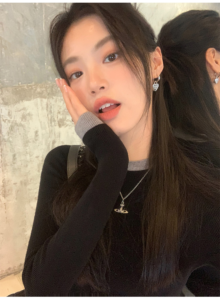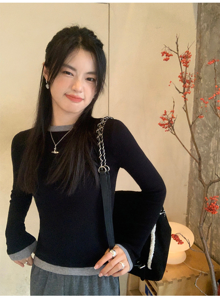 pusumede Трикотажный приталенный свитер с круглым воротником, базовый лонгслив