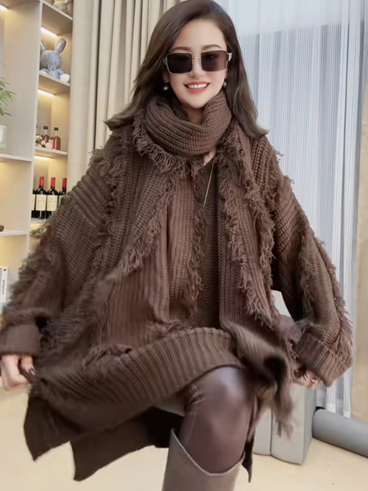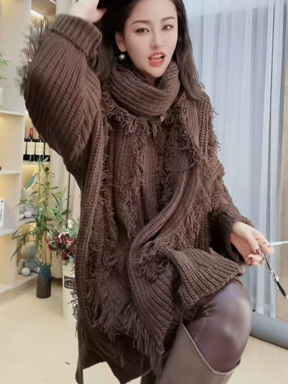 Демисезонный длинный свитер, куртка, 2023 года, V-образный вырез, средней длины