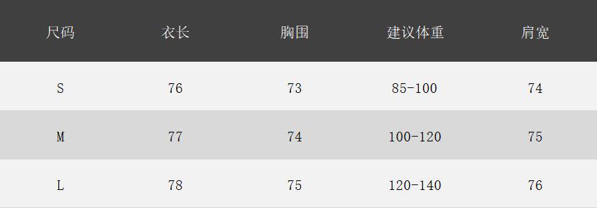 | Размер: | S предложение 75-95 Catties, М рекомендуется 95-105 кот, L предложил 105-115 кот, XL рекомендовал 115-130 кот, Xxl рекомендовал 130-150 кот |