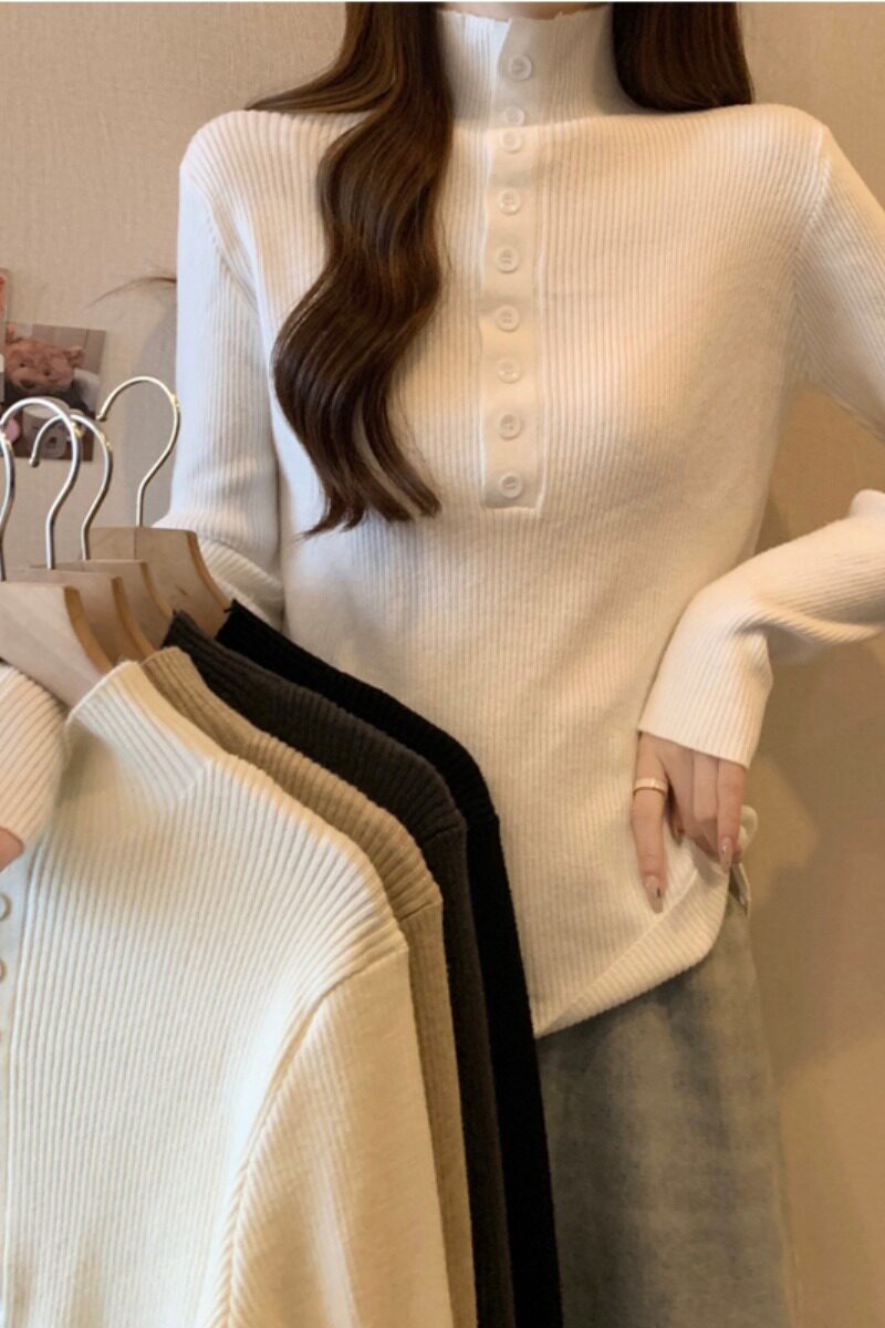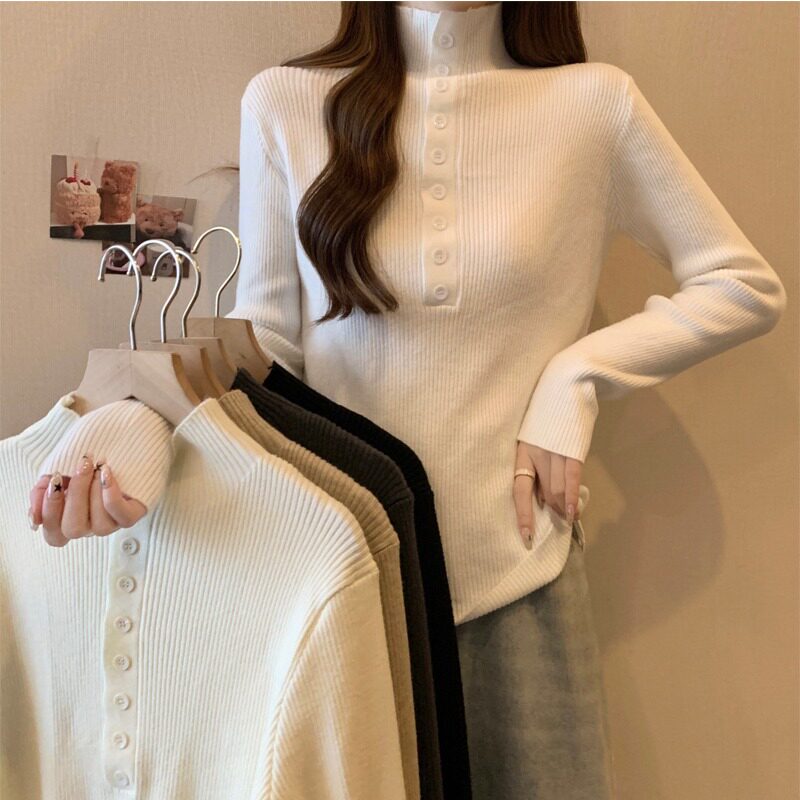 Осенний трикотажный дизайнерский свитер, большой размер, коллекция 2023, подходит для полных девушек, высокий воротник, тренд сезона, в западном стиле