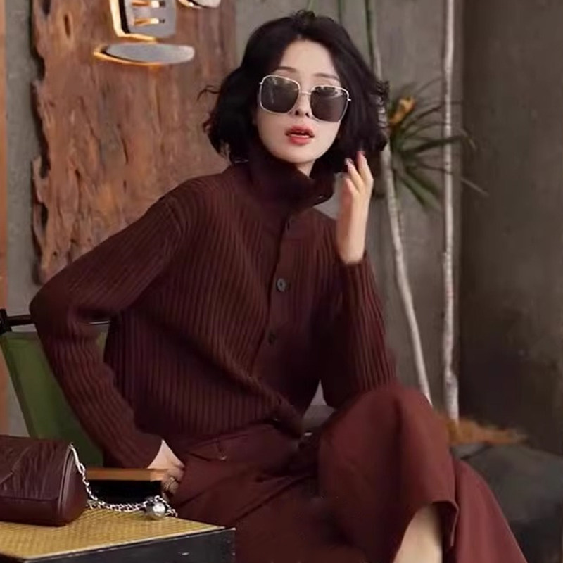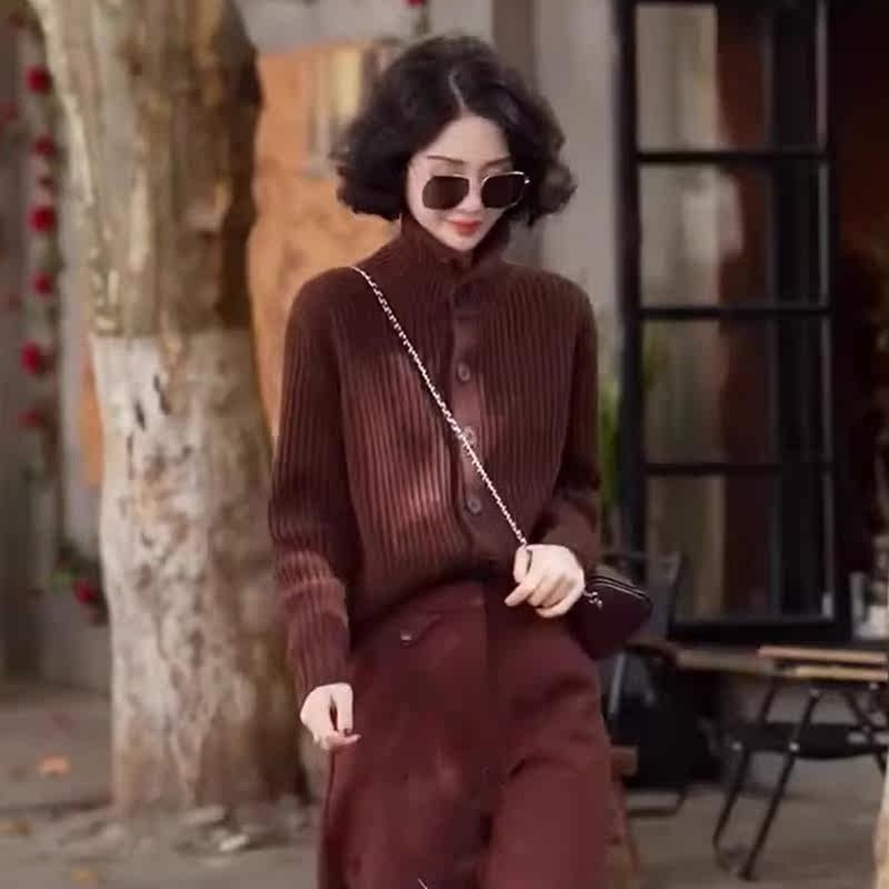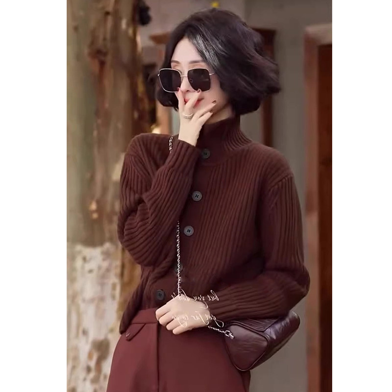 Ретро шерстяной осенний кардиган, свитер, кашемировый лонгслив, в западном стиле