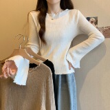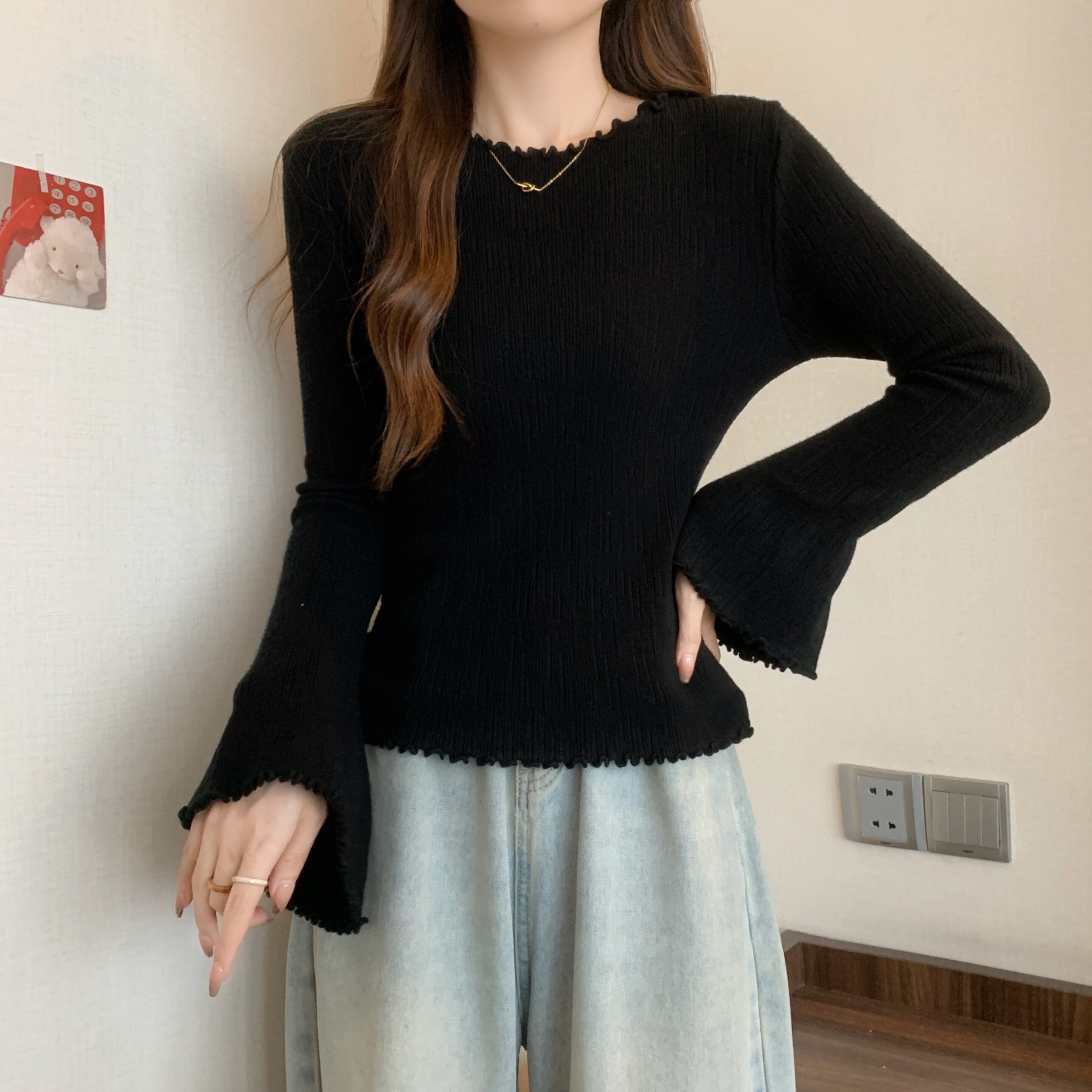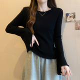 Черный трикотажный приталенный мегафон, короткий свитер, большой размер