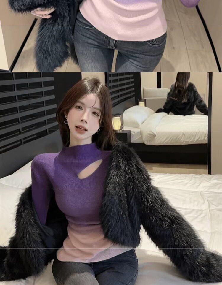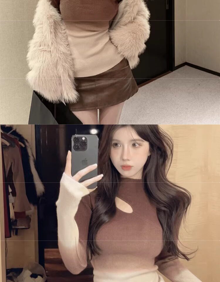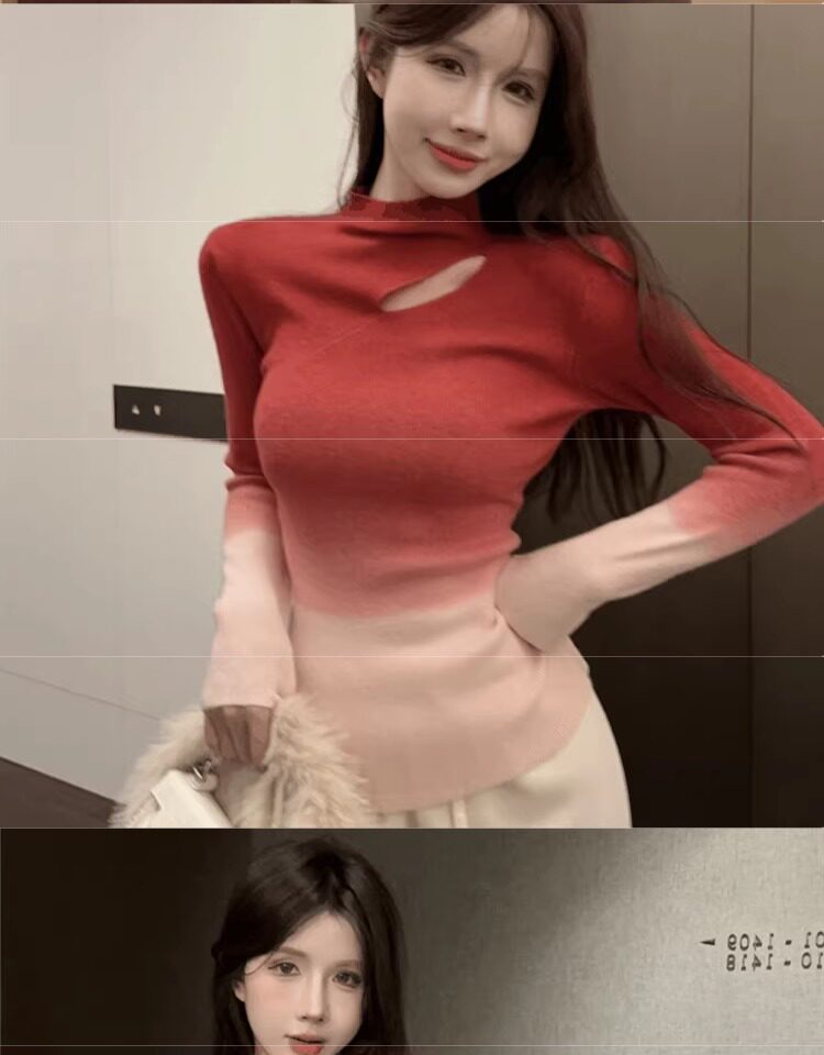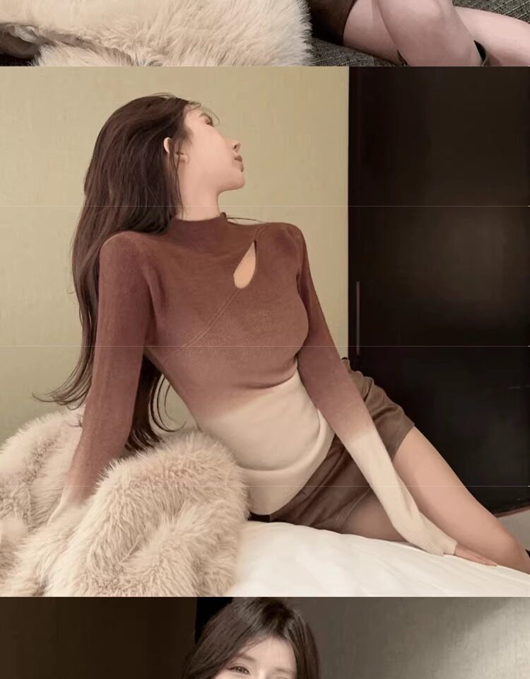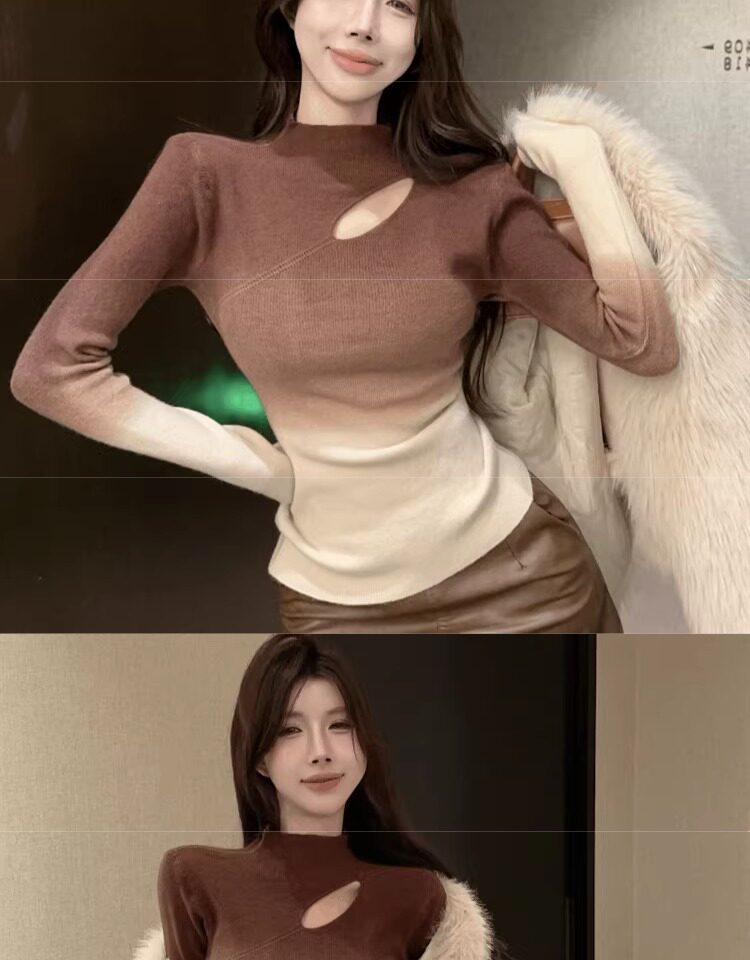 Цветной демисезонный трикотажный базовый приятный телу свитер, градиент, высокий воротник, изысканный стиль