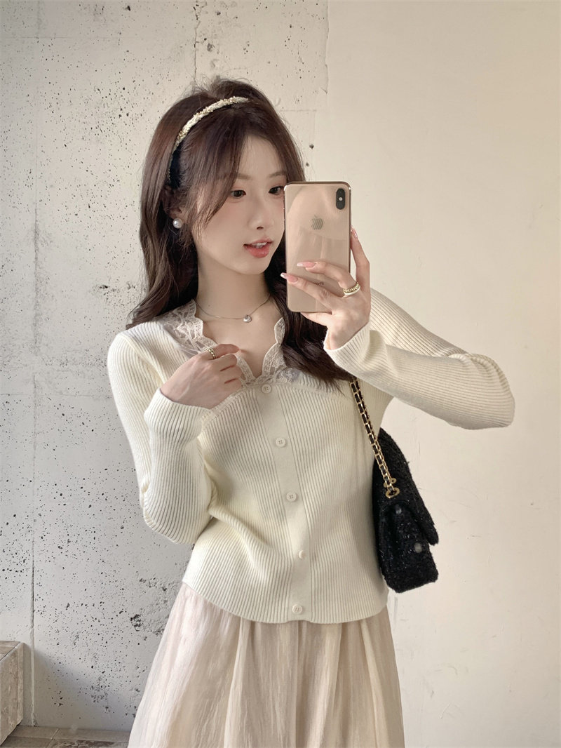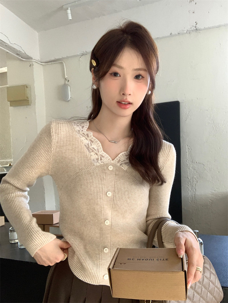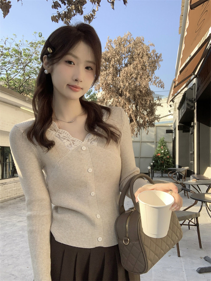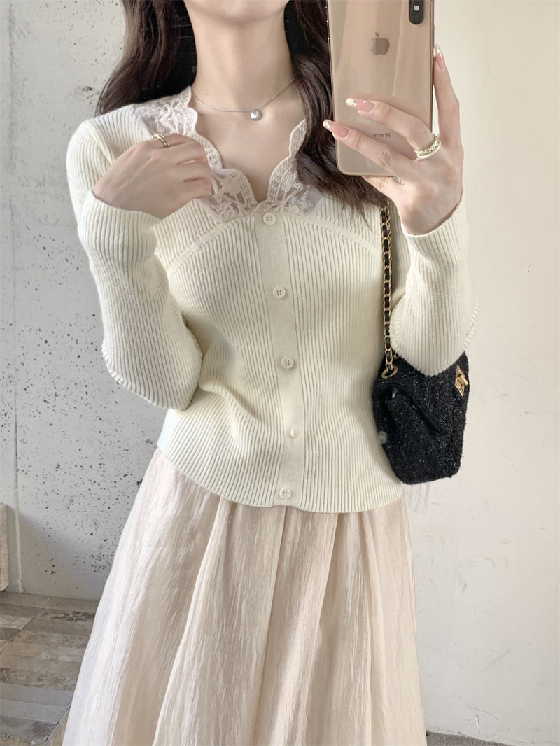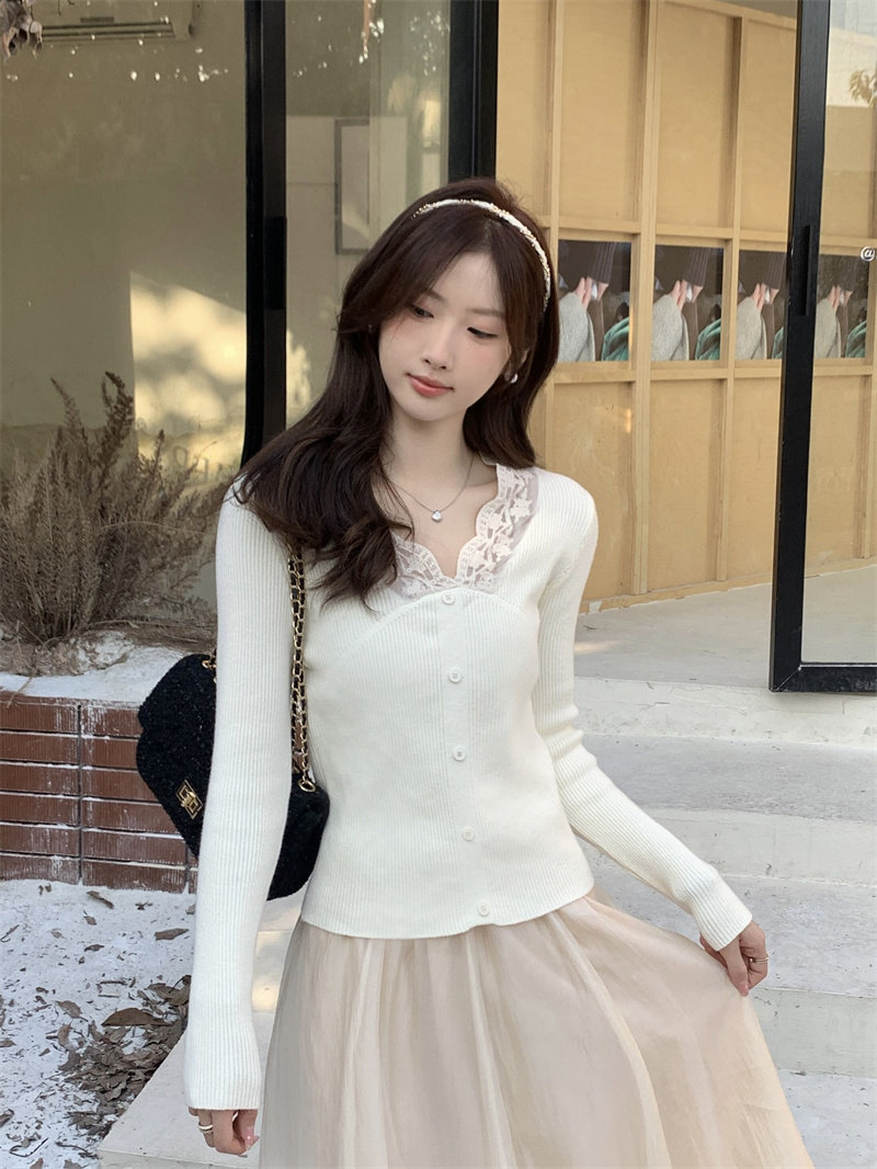 Французский нежный стиль кружев V-образной рубашку для женщин 2024 Новый весна и осенний тонкий подход Slim Внутренний верх