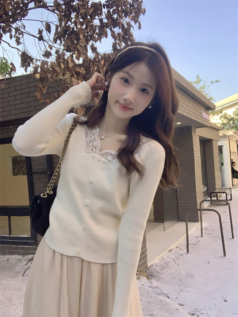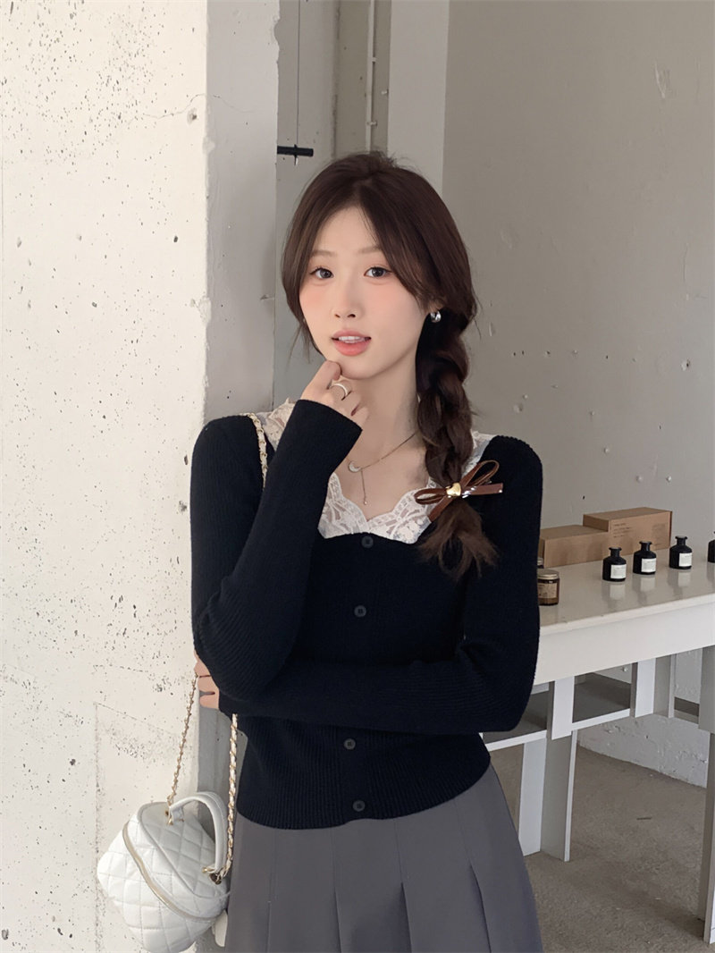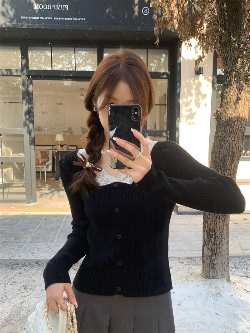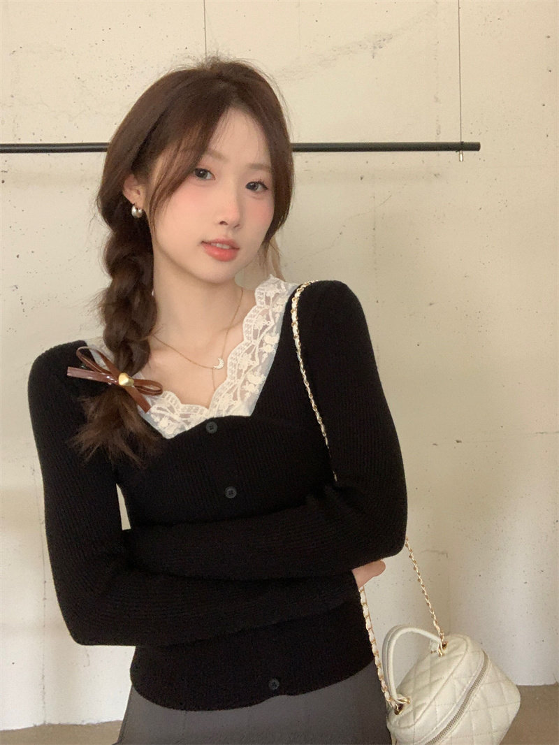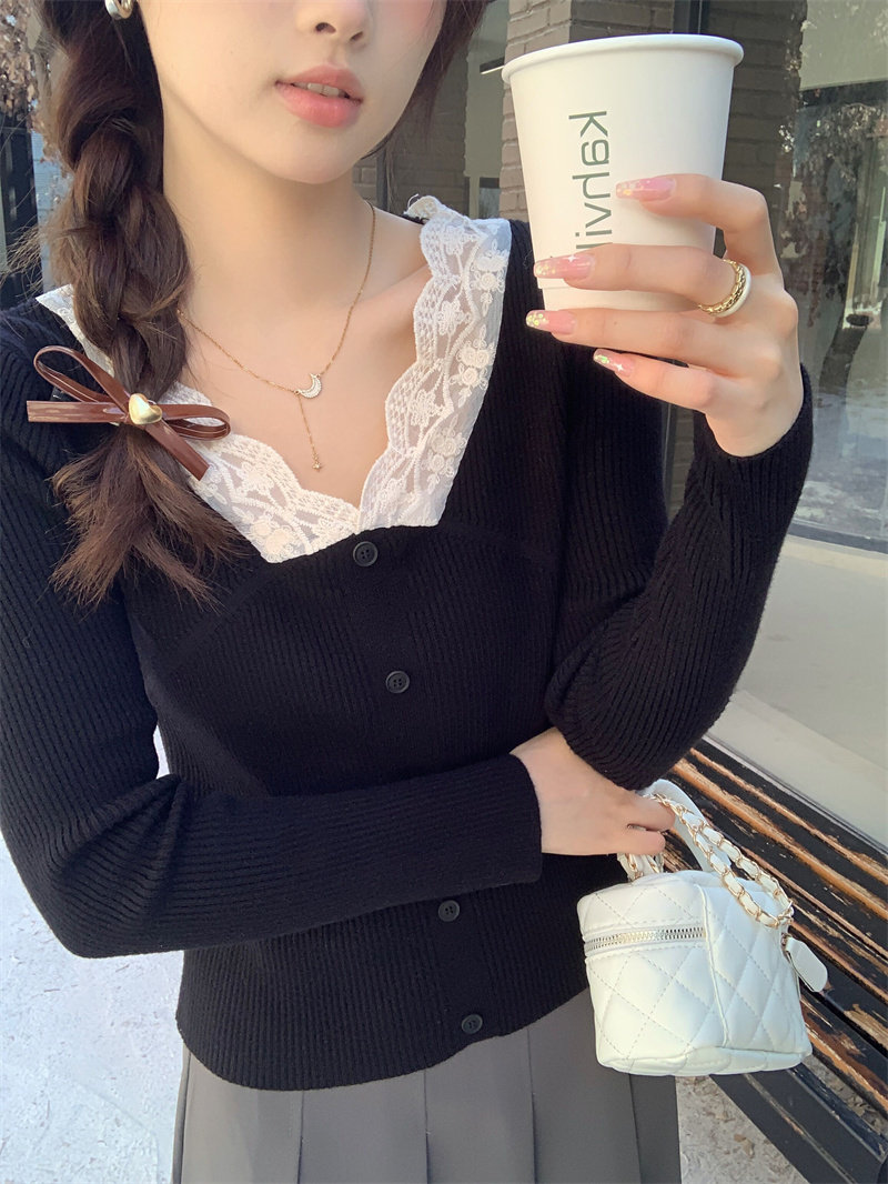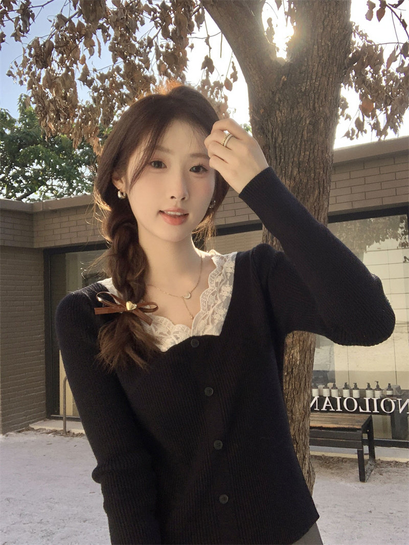 Французский нежный стиль кружев V-образной рубашку для женщин 2024 Новый весна и осенний тонкий подход Slim Внутренний верх