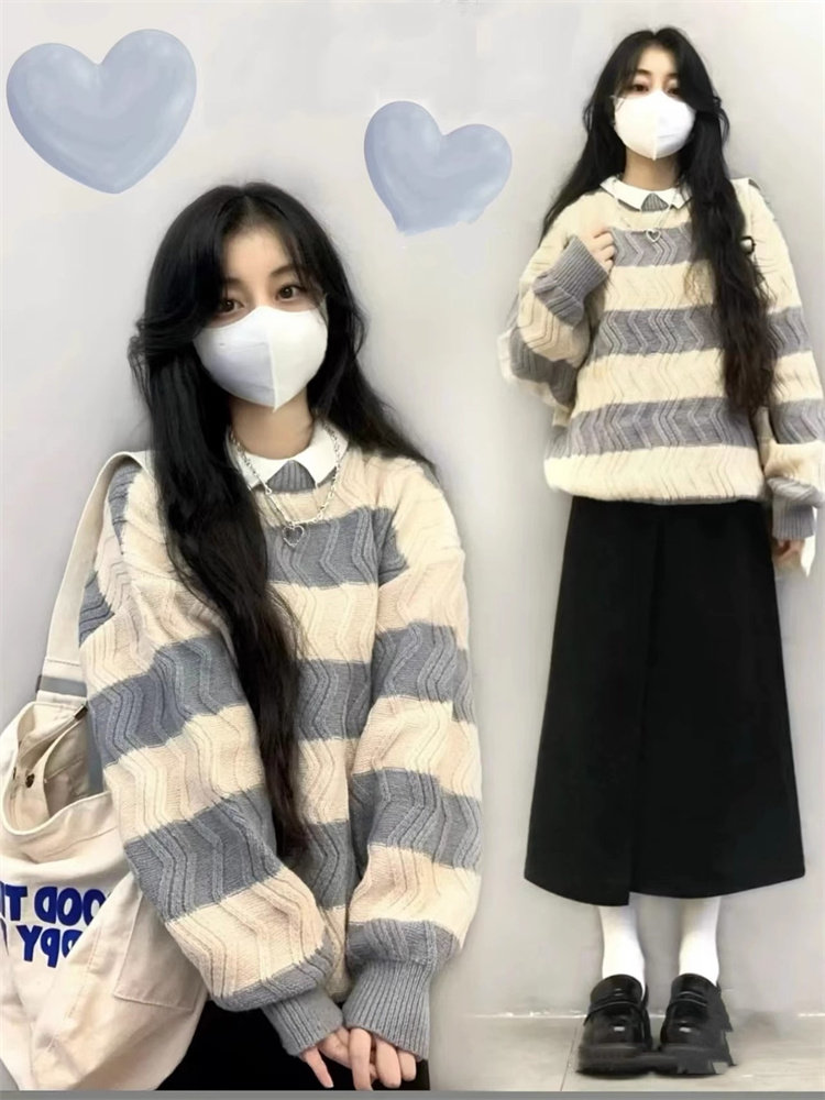 Японский весенний трикотажный свитер, свободный крой