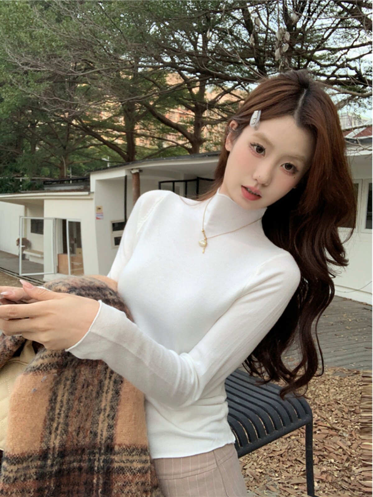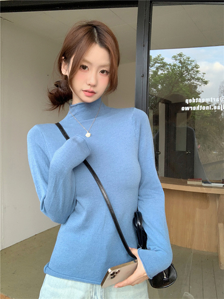 Белый цветной трикотажный осенний приталенный базовый свитер, приятный телу лонгслив