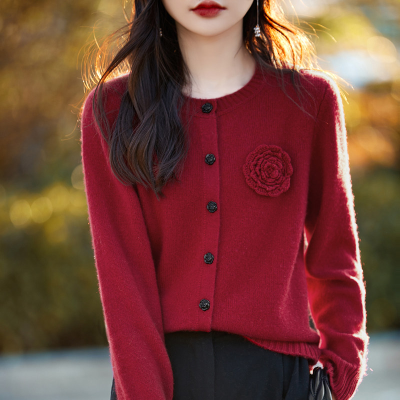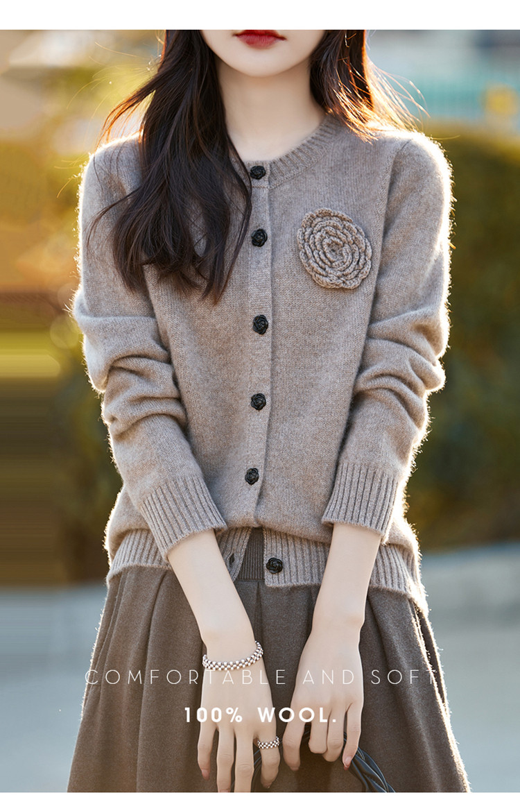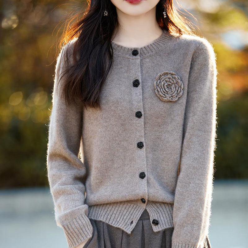 Зимний свитер с круглым воротником, шерстяной трикотажный кардиган