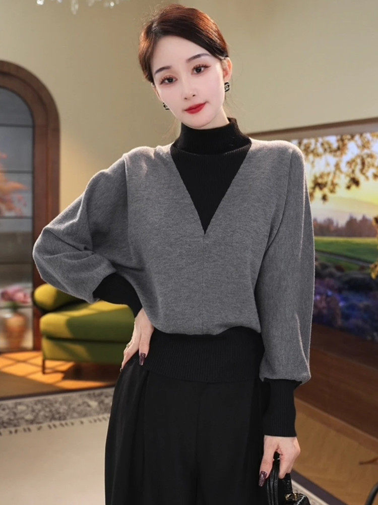Шерстяной базовый приятный телу свитер, высокий воротник