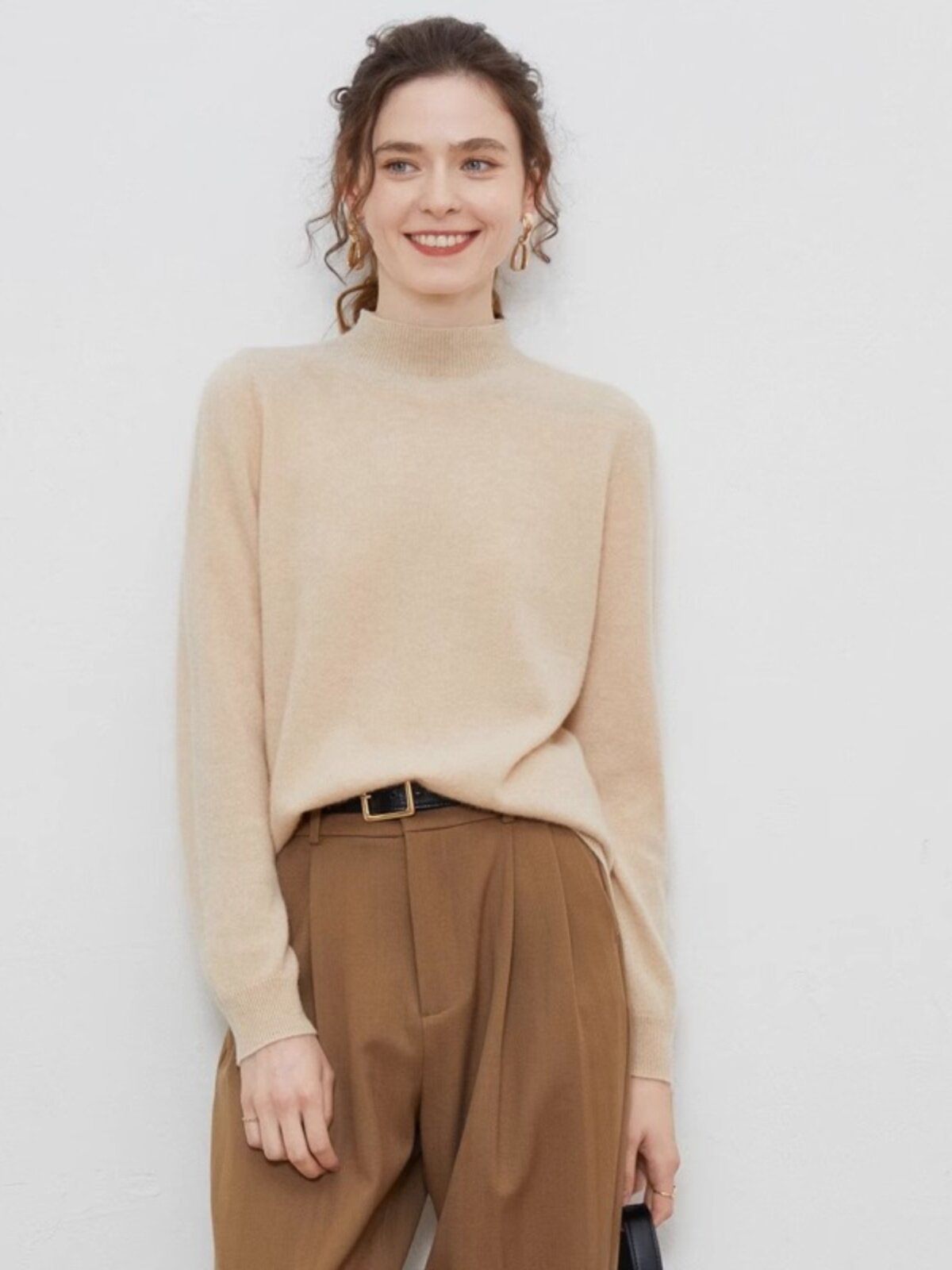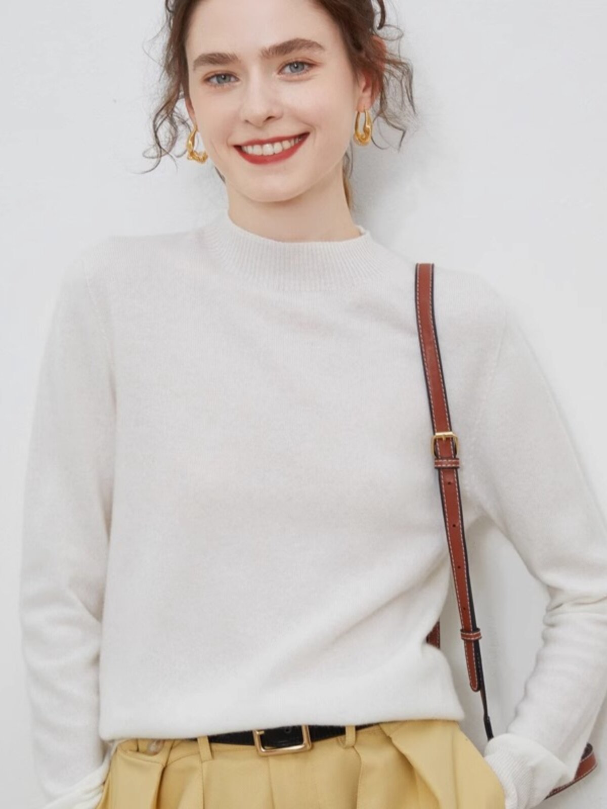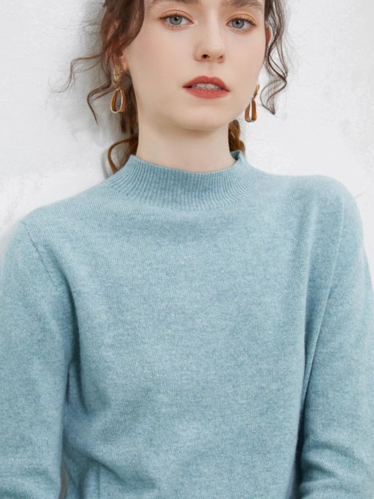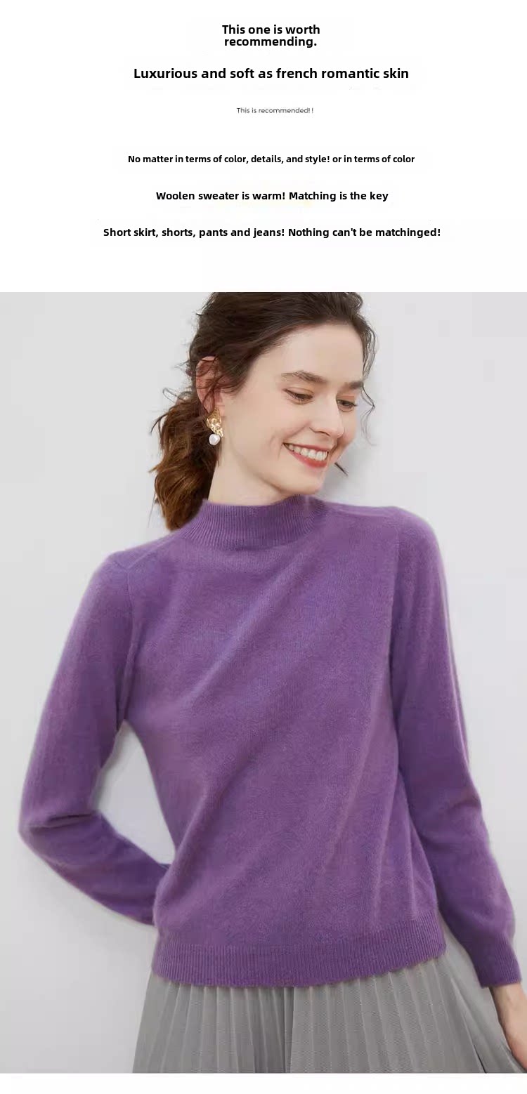 Осенний шерстяной трикотажный свитер, трикотажная рубашка, высокий воротник, в западном стиле