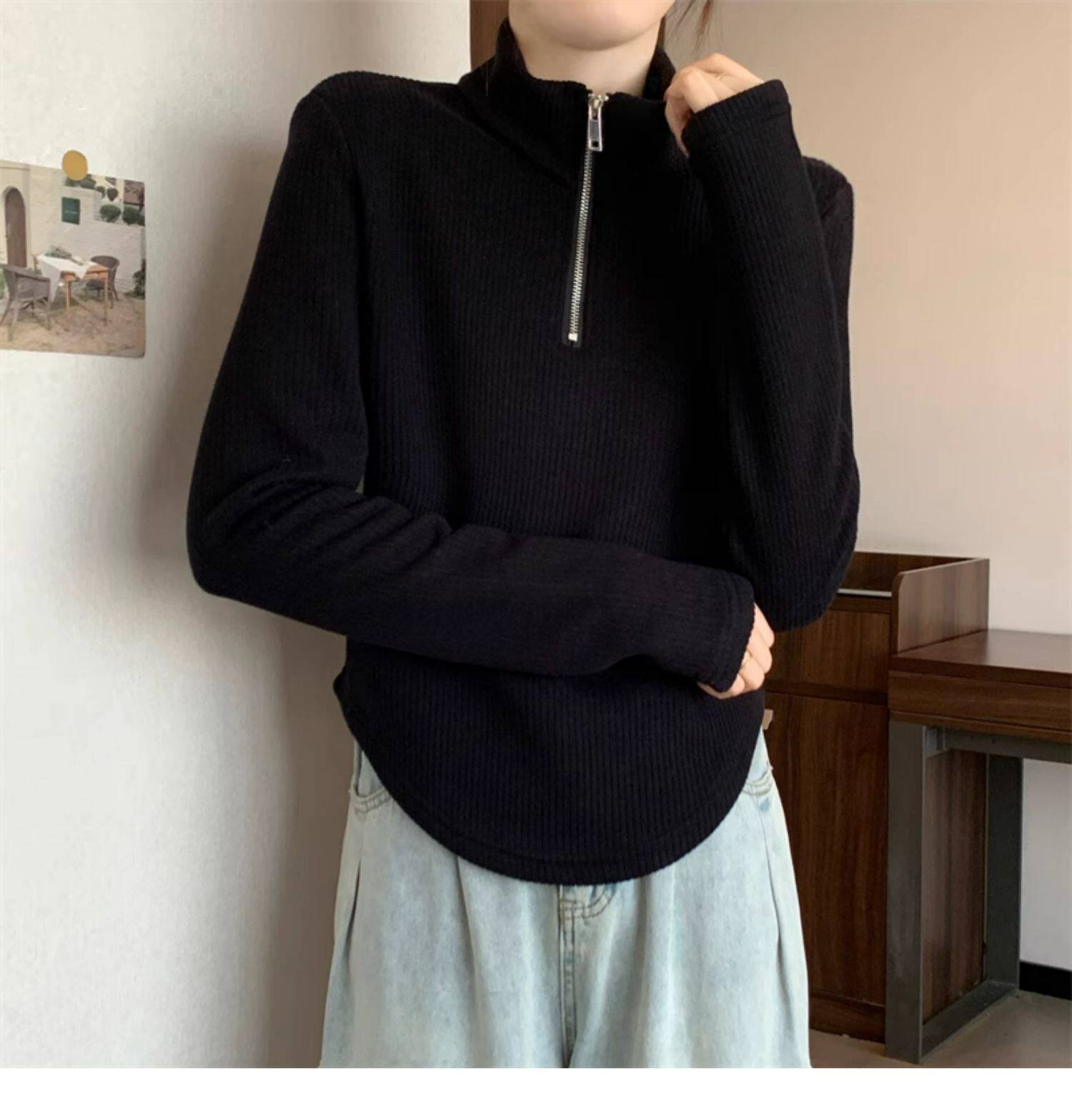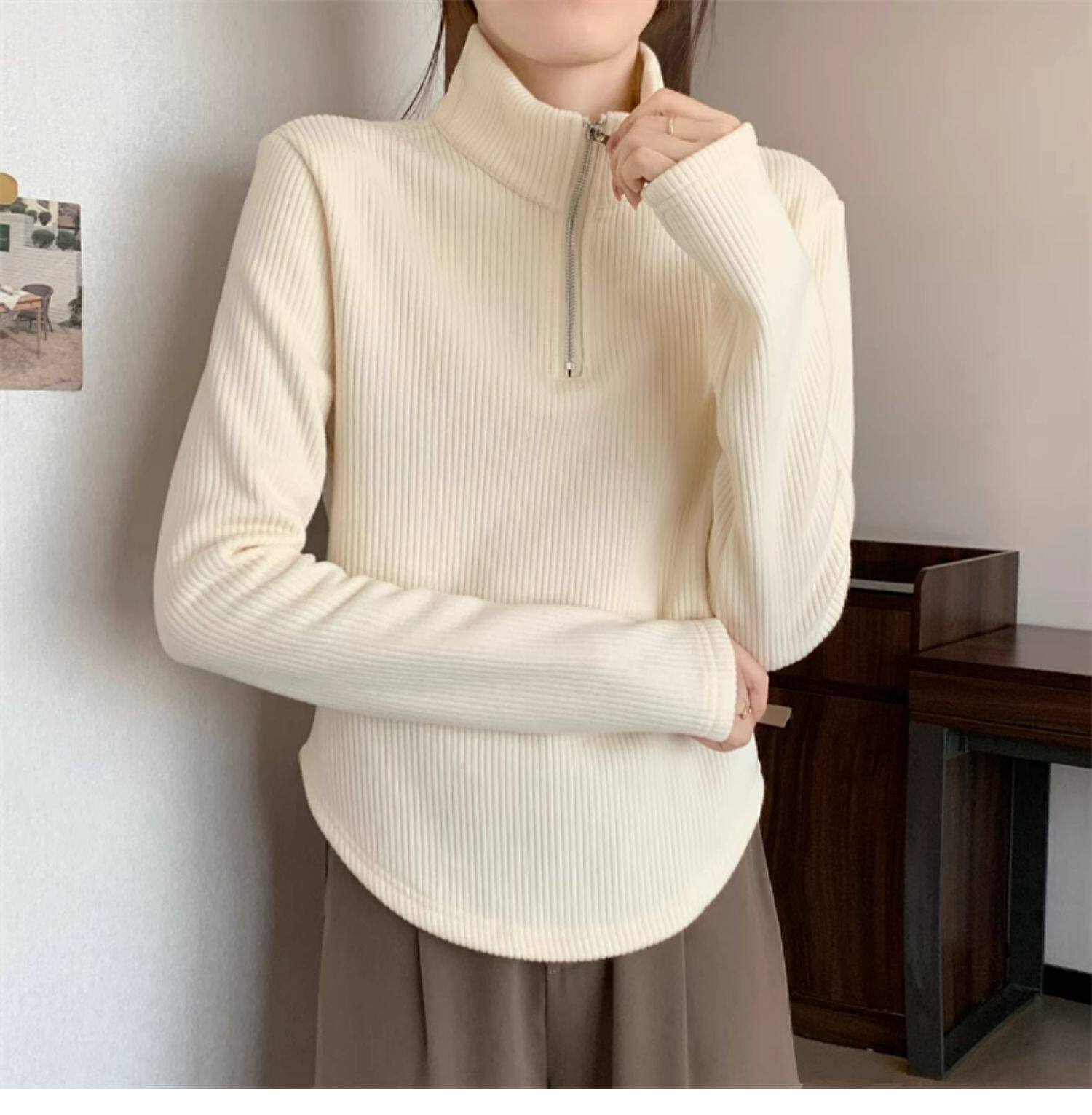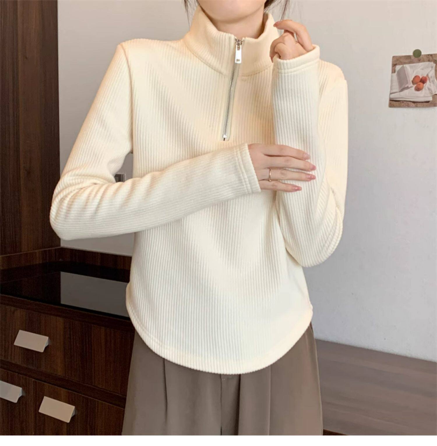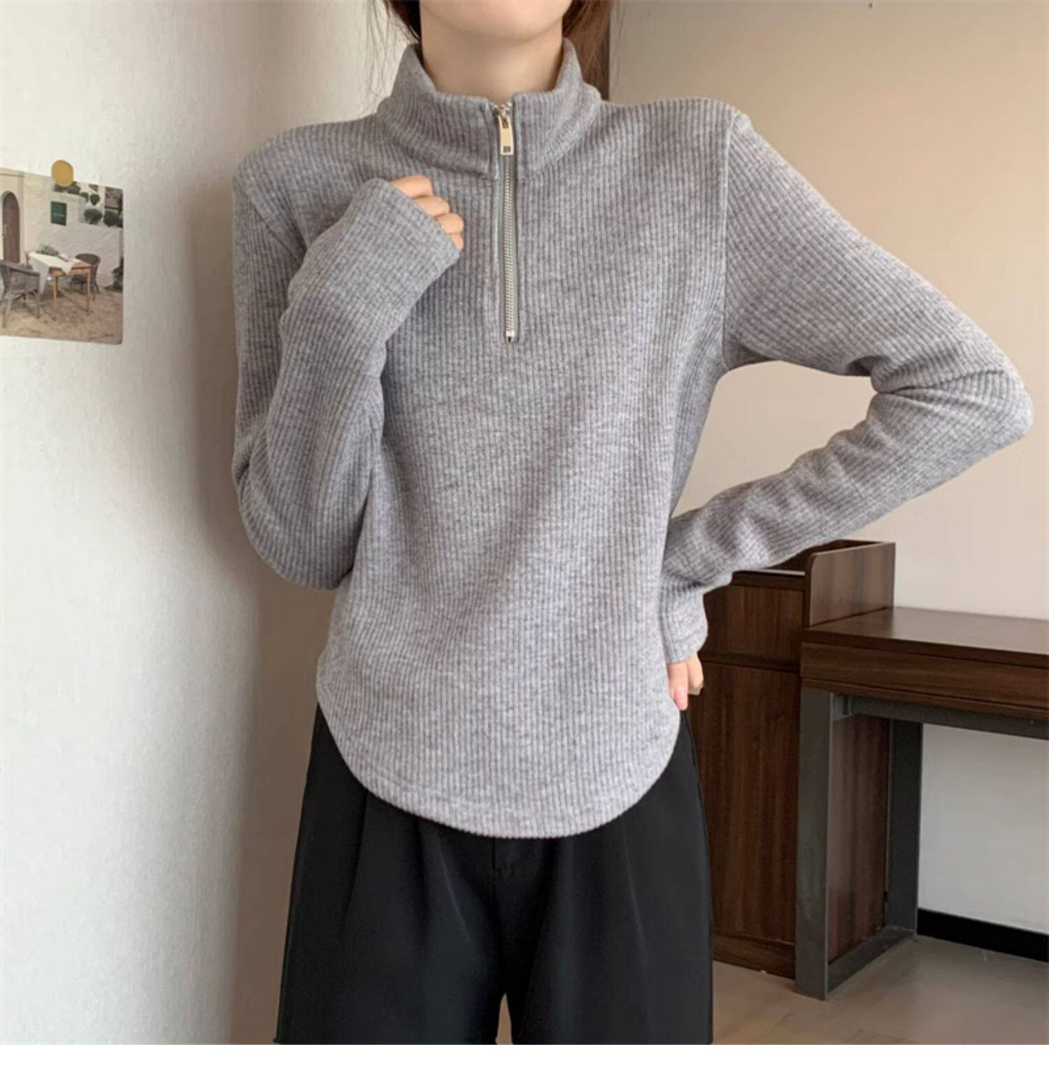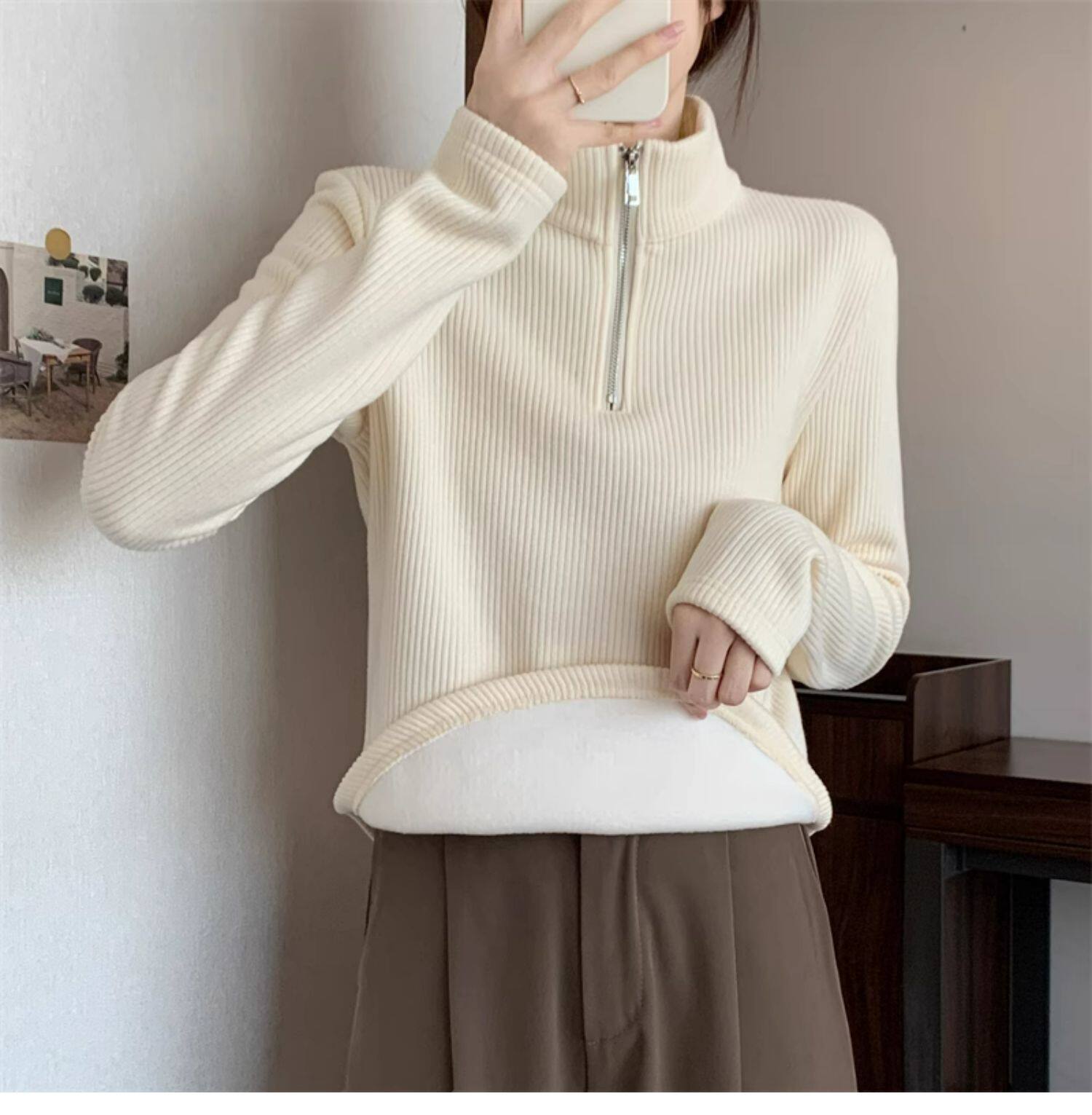 Утепленный демисезонный свитер с молнией, трикотажное приятное телу термобелье, большой размер, высокий воротник
