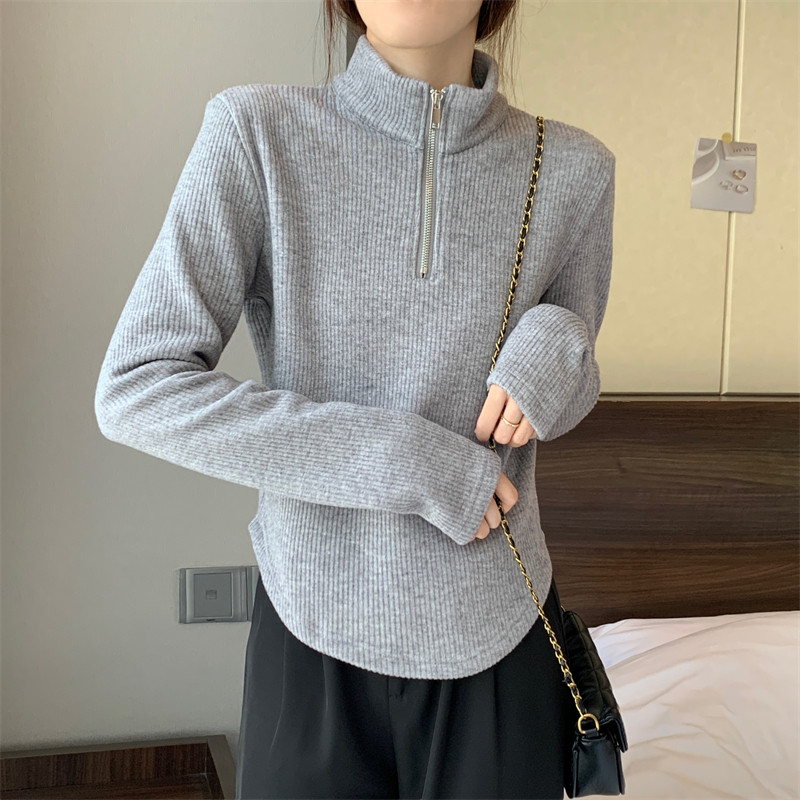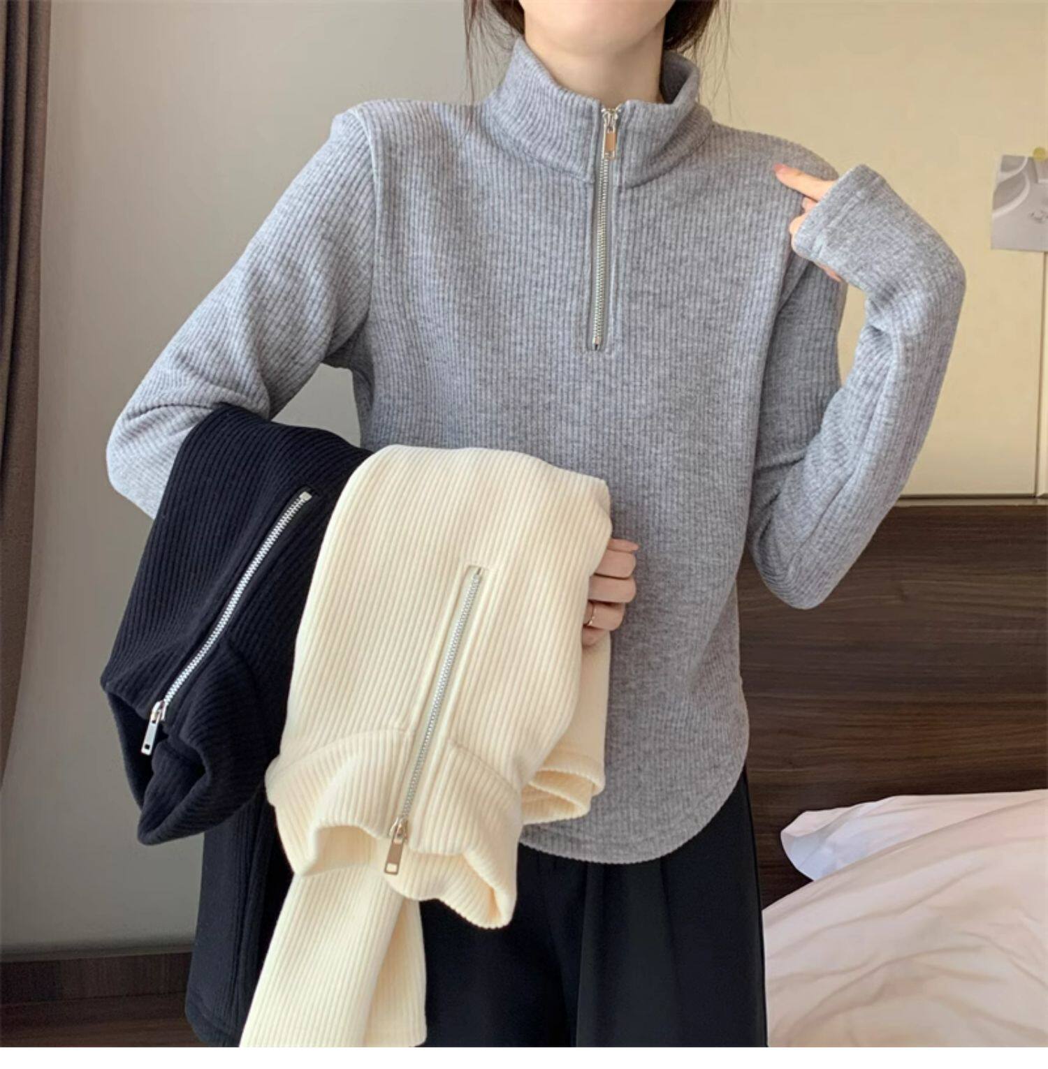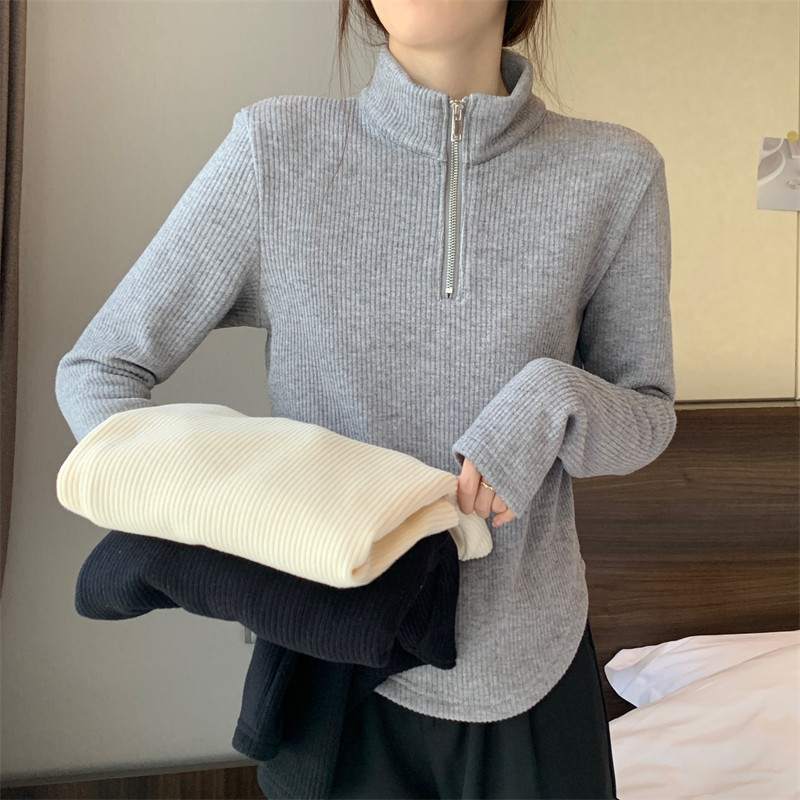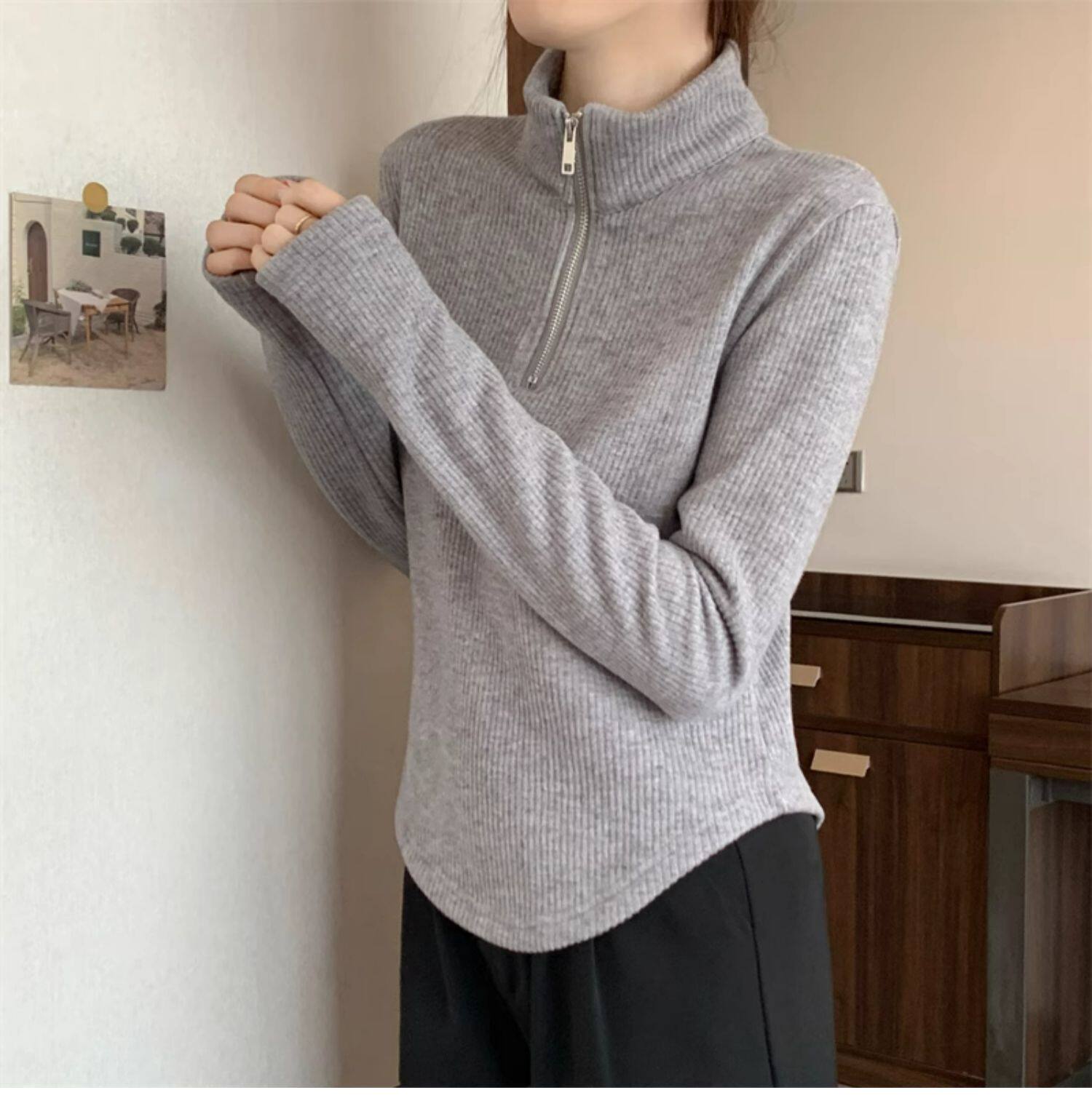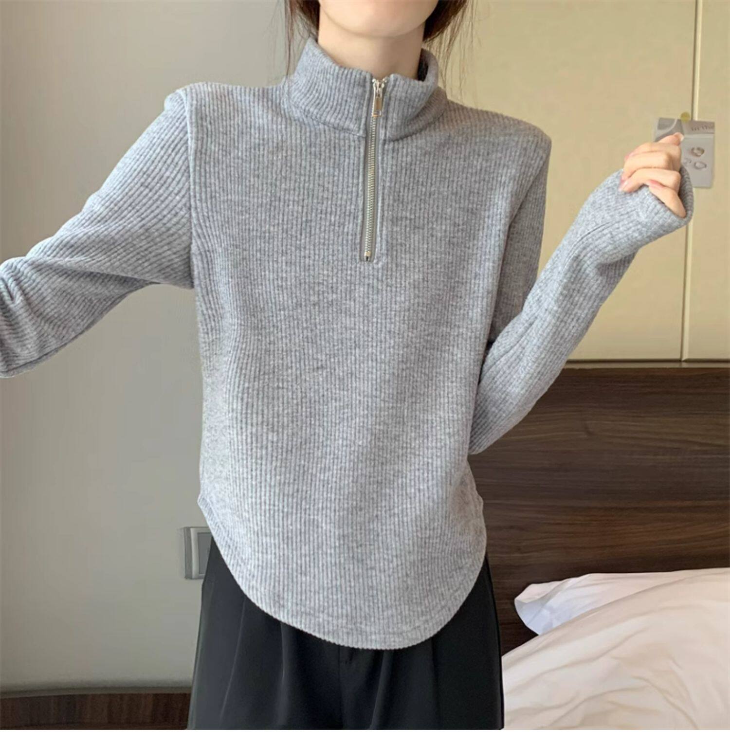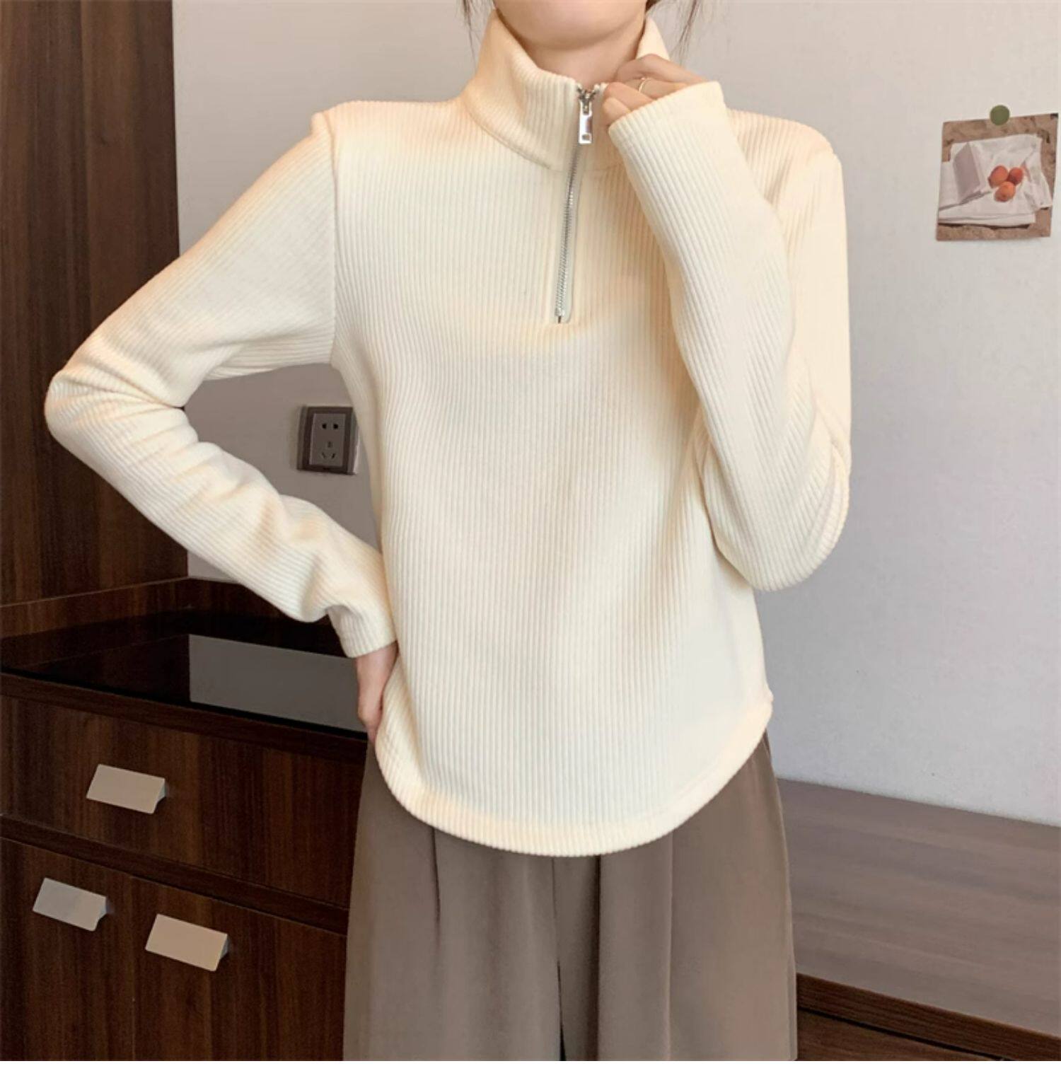 Утепленный демисезонный свитер с молнией, трикотажное приятное телу термобелье, большой размер, высокий воротник