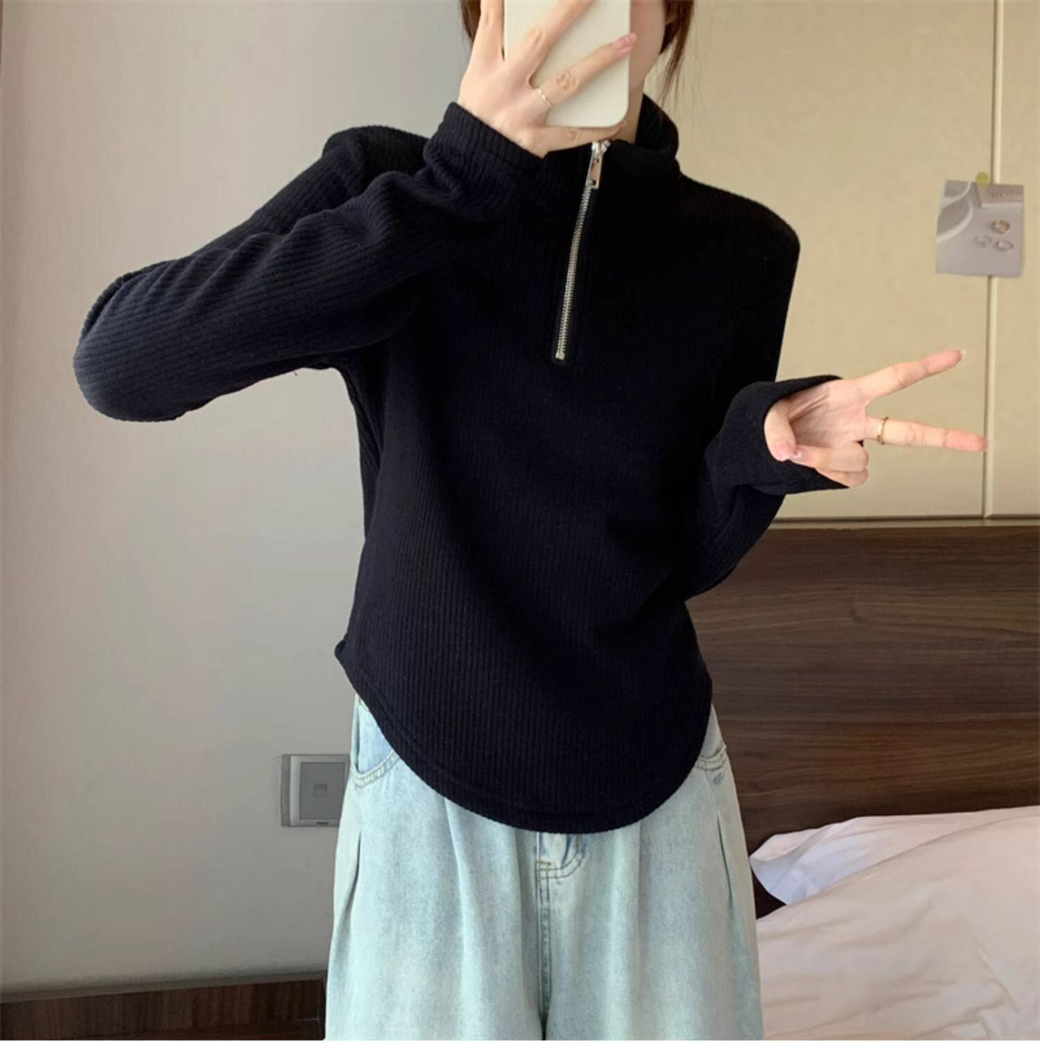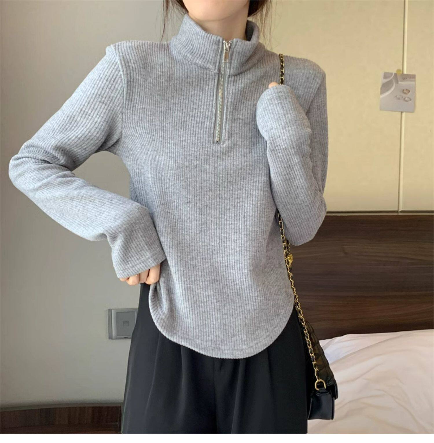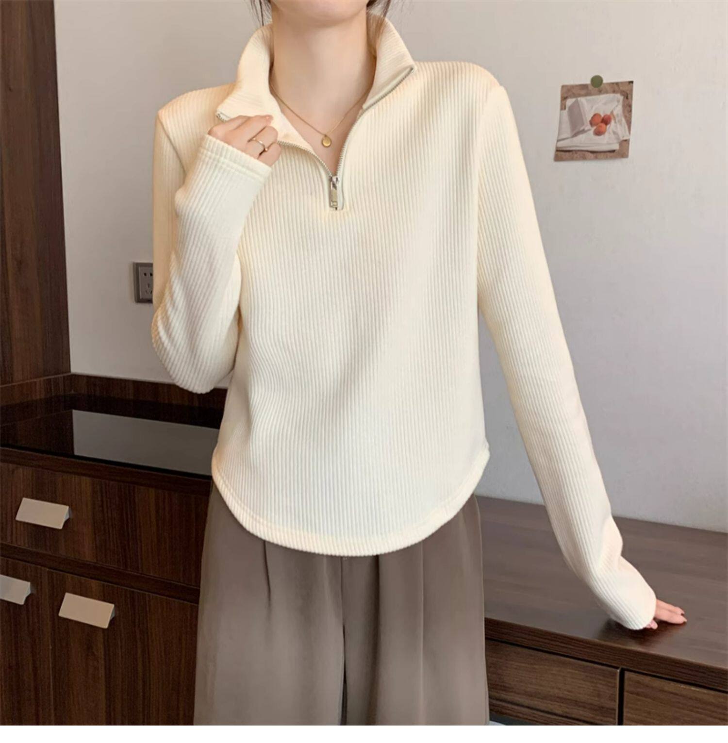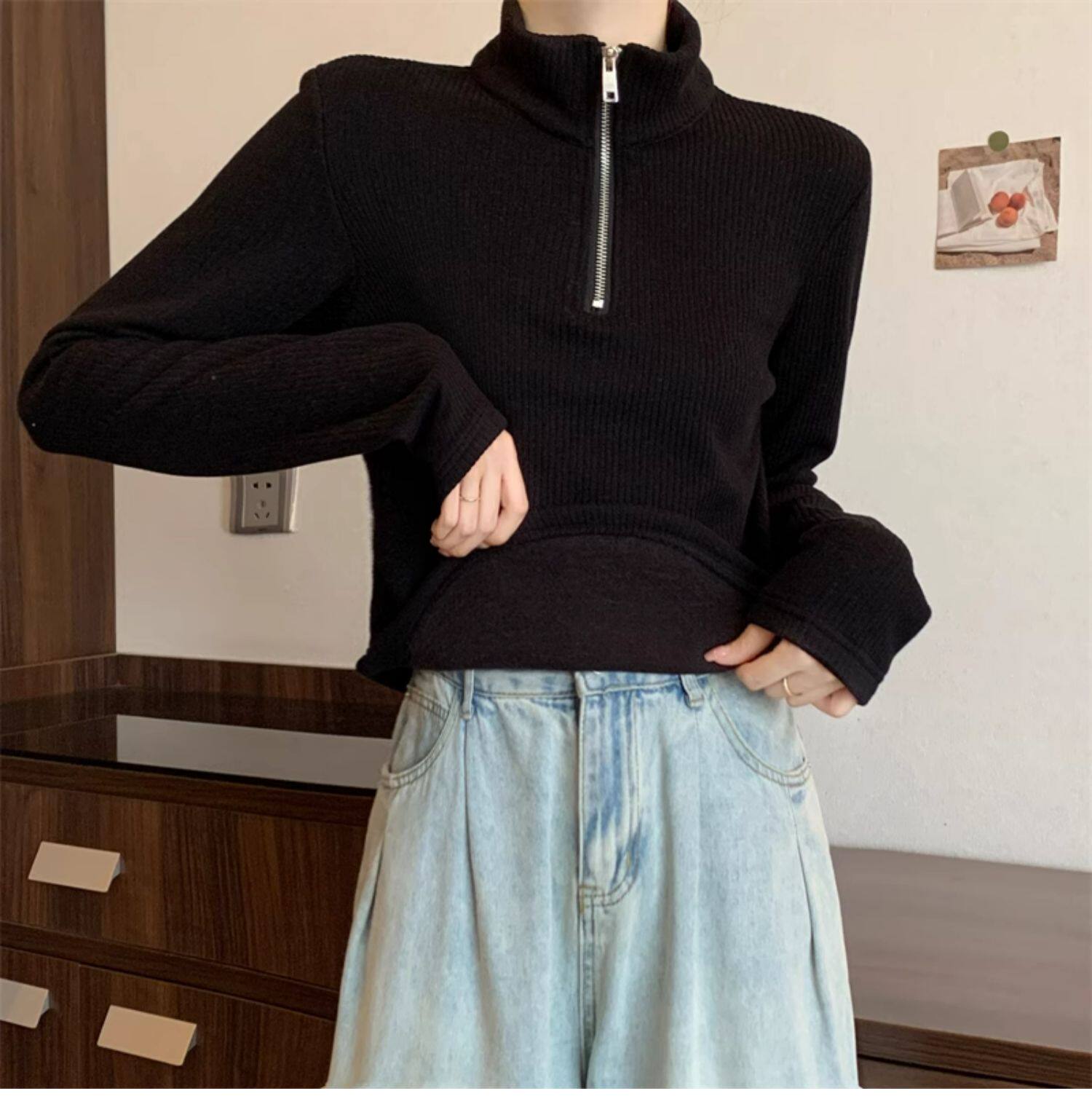 Утепленный демисезонный свитер с молнией, трикотажное приятное телу термобелье, большой размер, высокий воротник