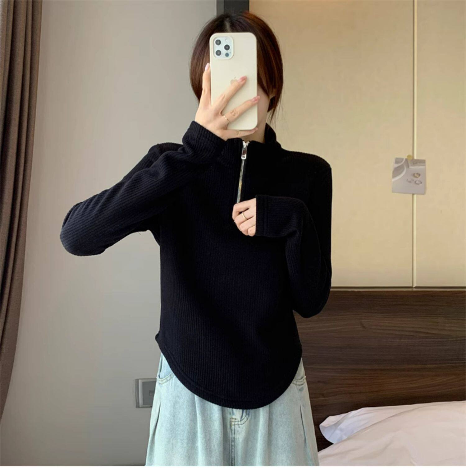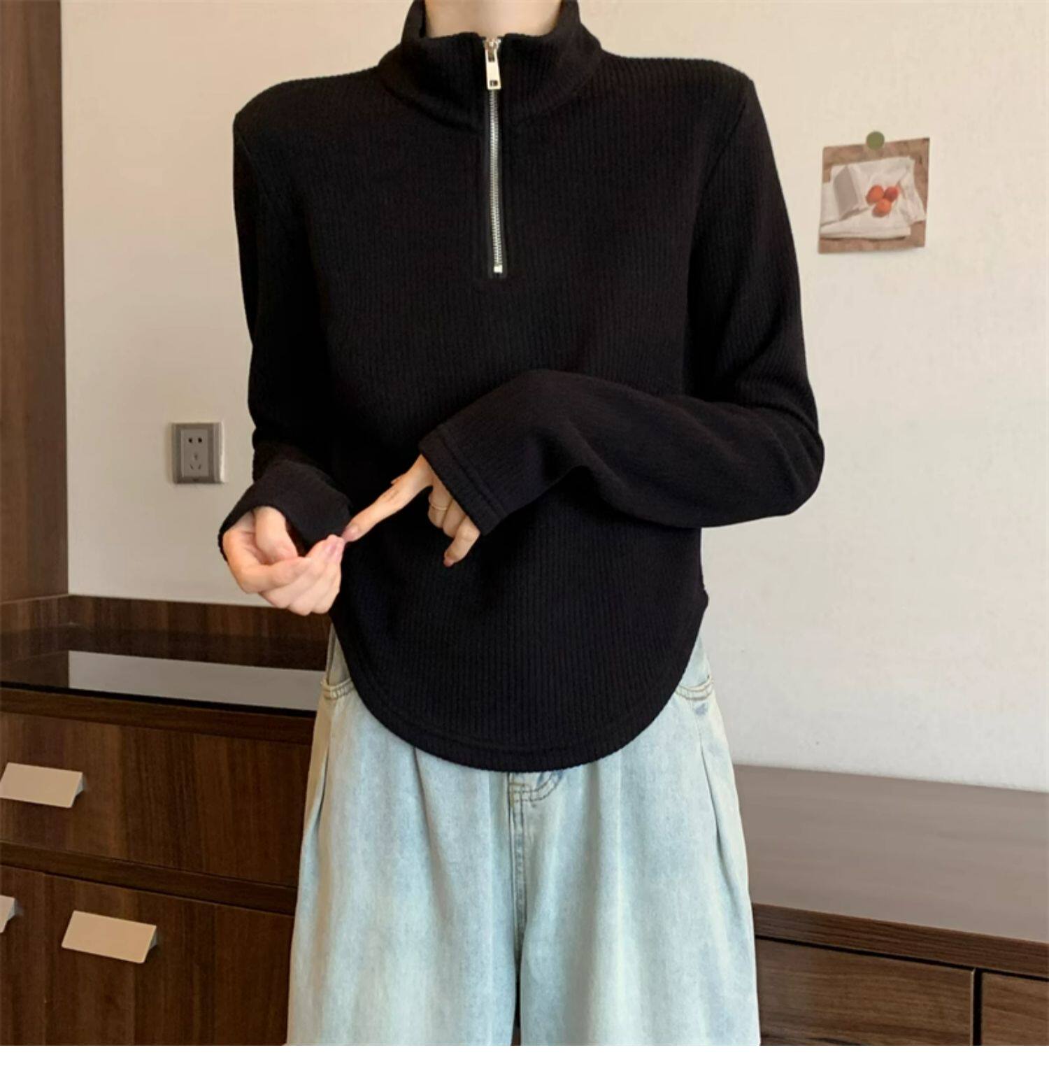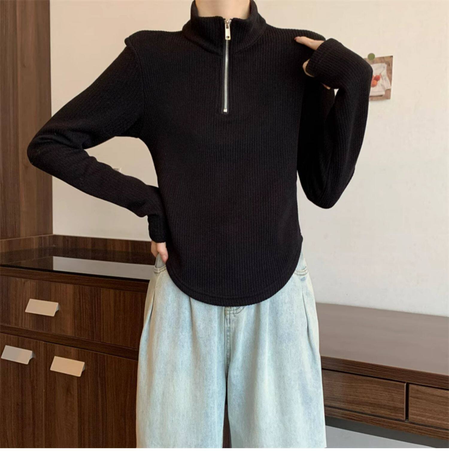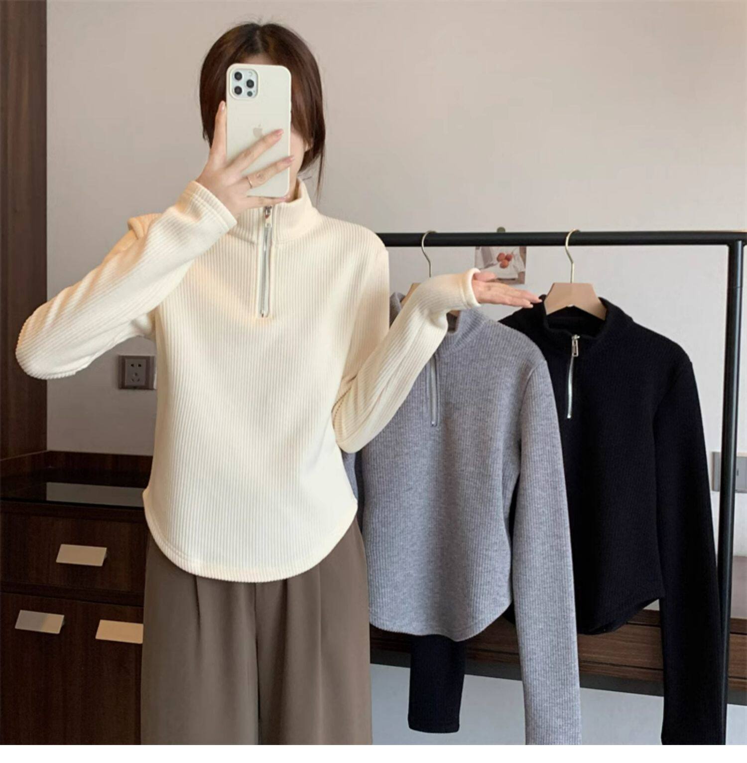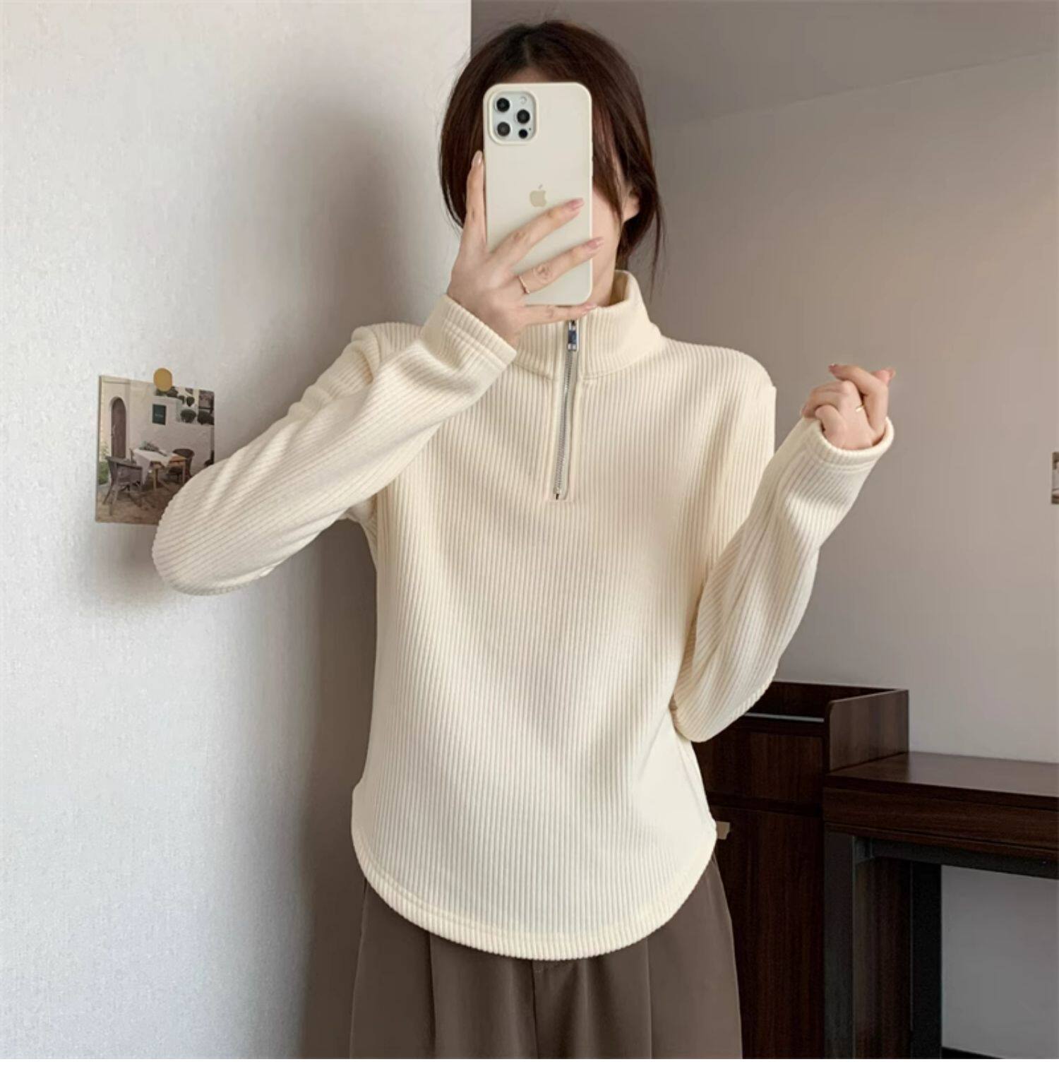 Утепленный демисезонный свитер с молнией, трикотажное приятное телу термобелье, большой размер, высокий воротник