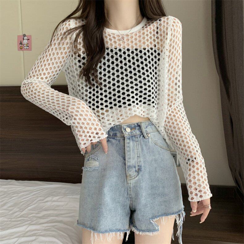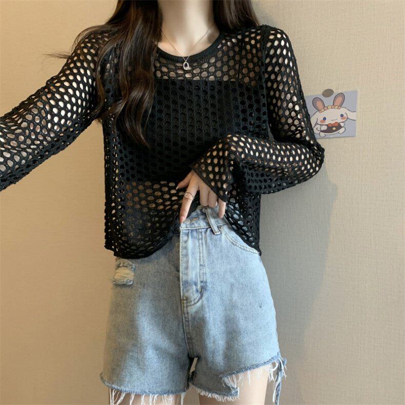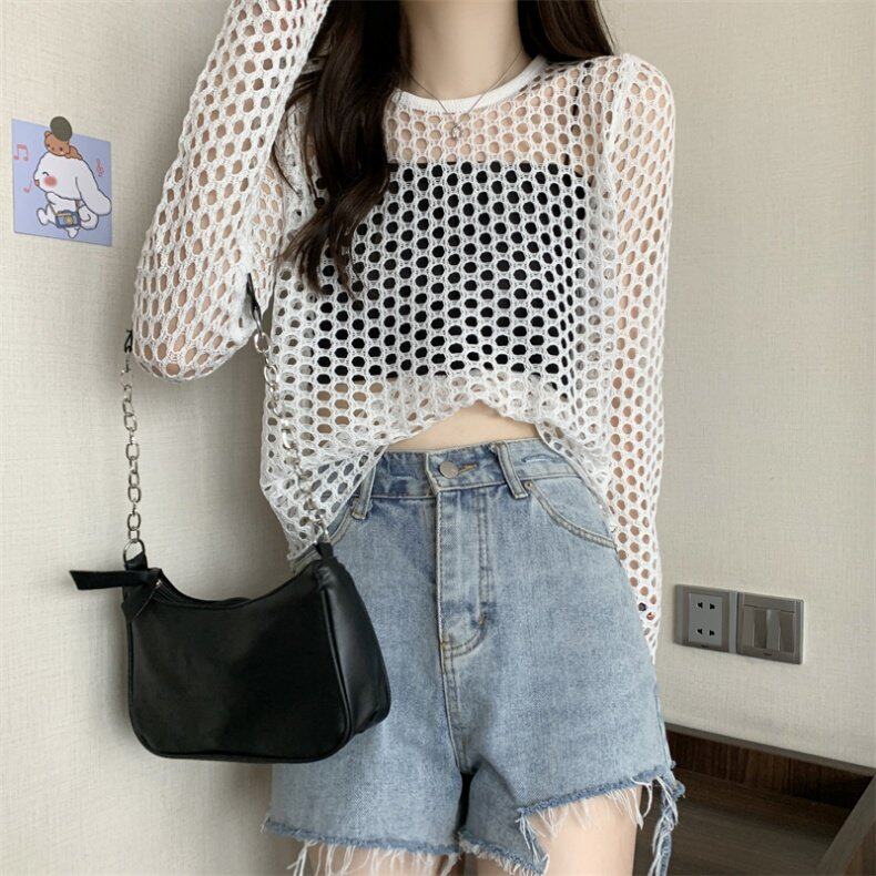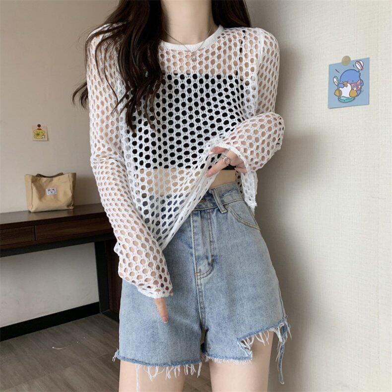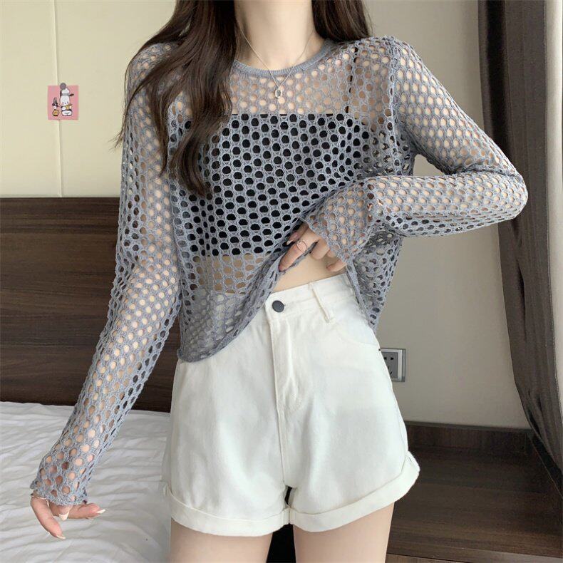 Трикотажная одежда для защиты от солнца, короткий лонгслив, футболка с коротким рукавом