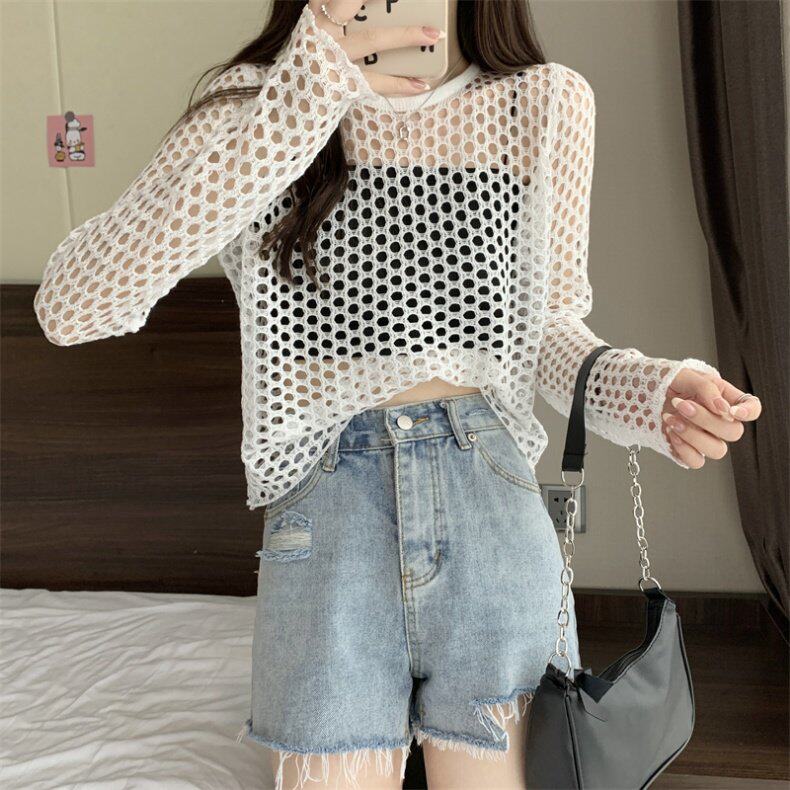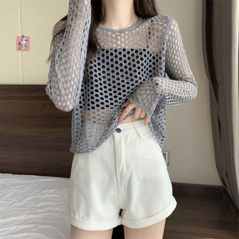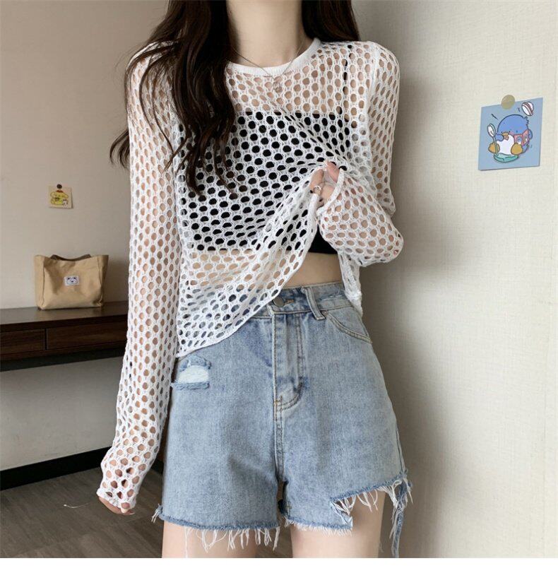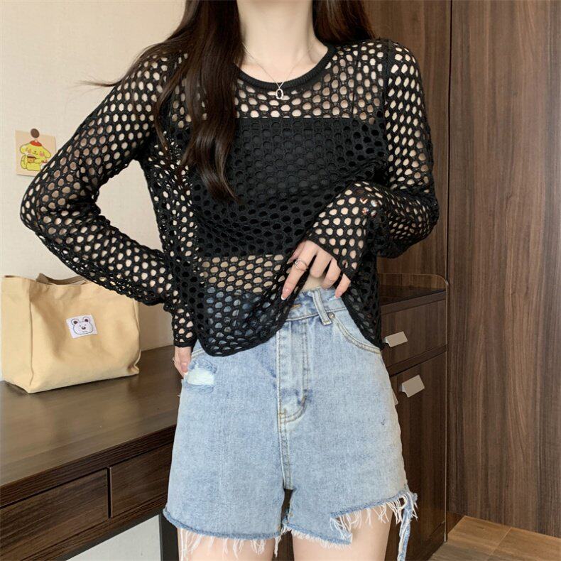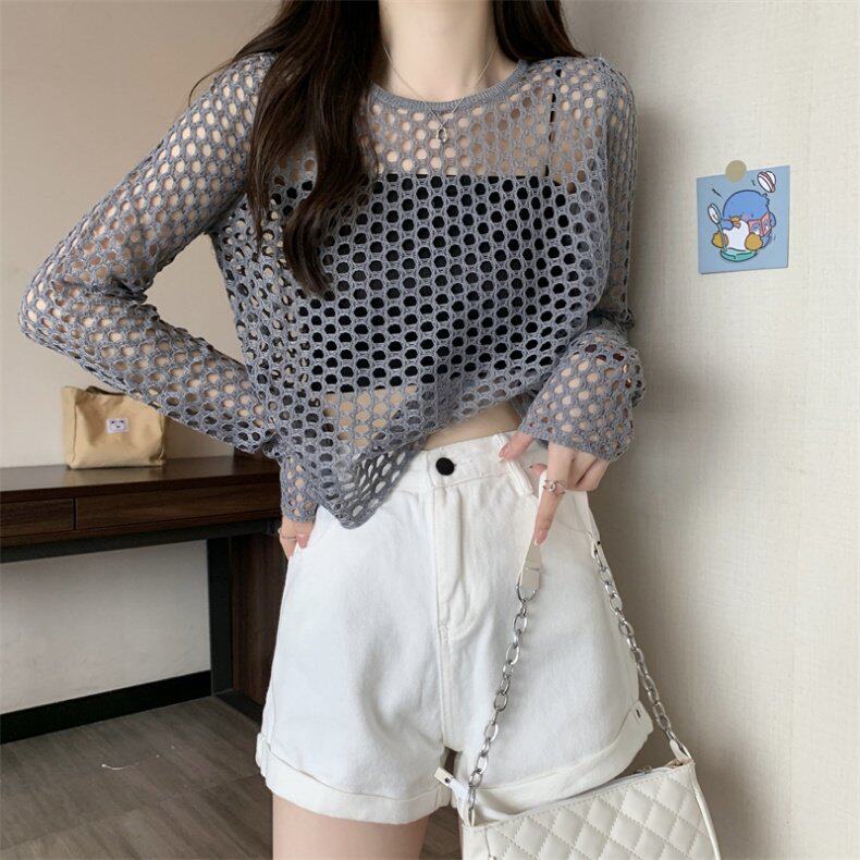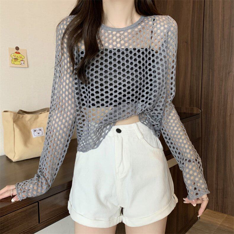 Трикотажная одежда для защиты от солнца, короткий лонгслив, футболка с коротким рукавом
