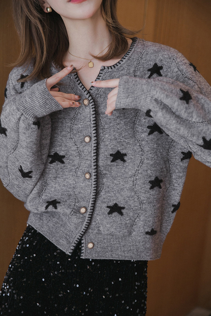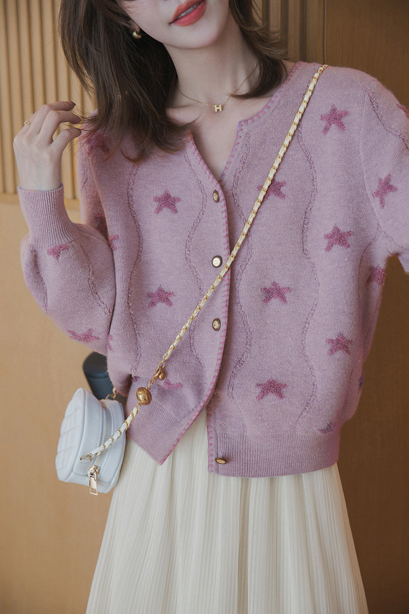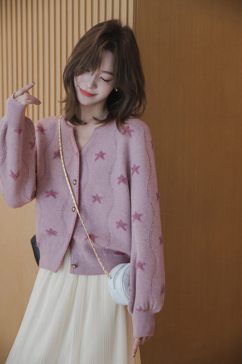 小谷粒 Трикотажный весенний свитер, короткий кардиган, лонгслив, 2024 года, в корейском стиле, рукава фонарики, свободный крой