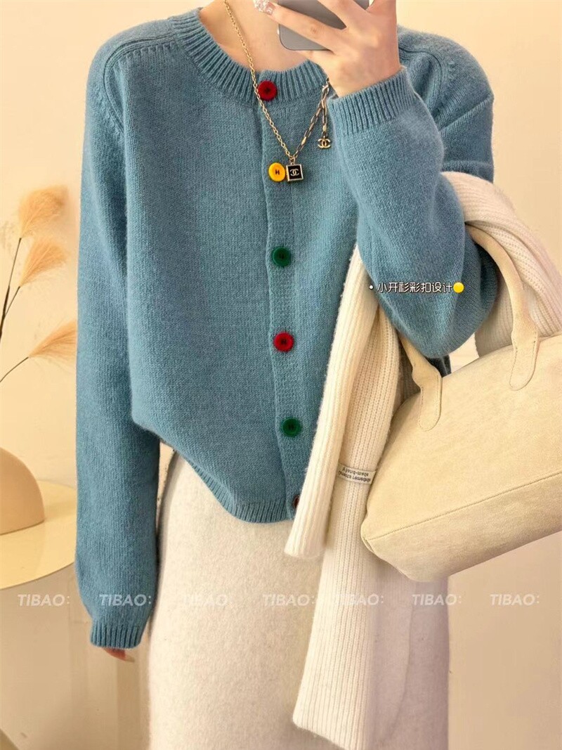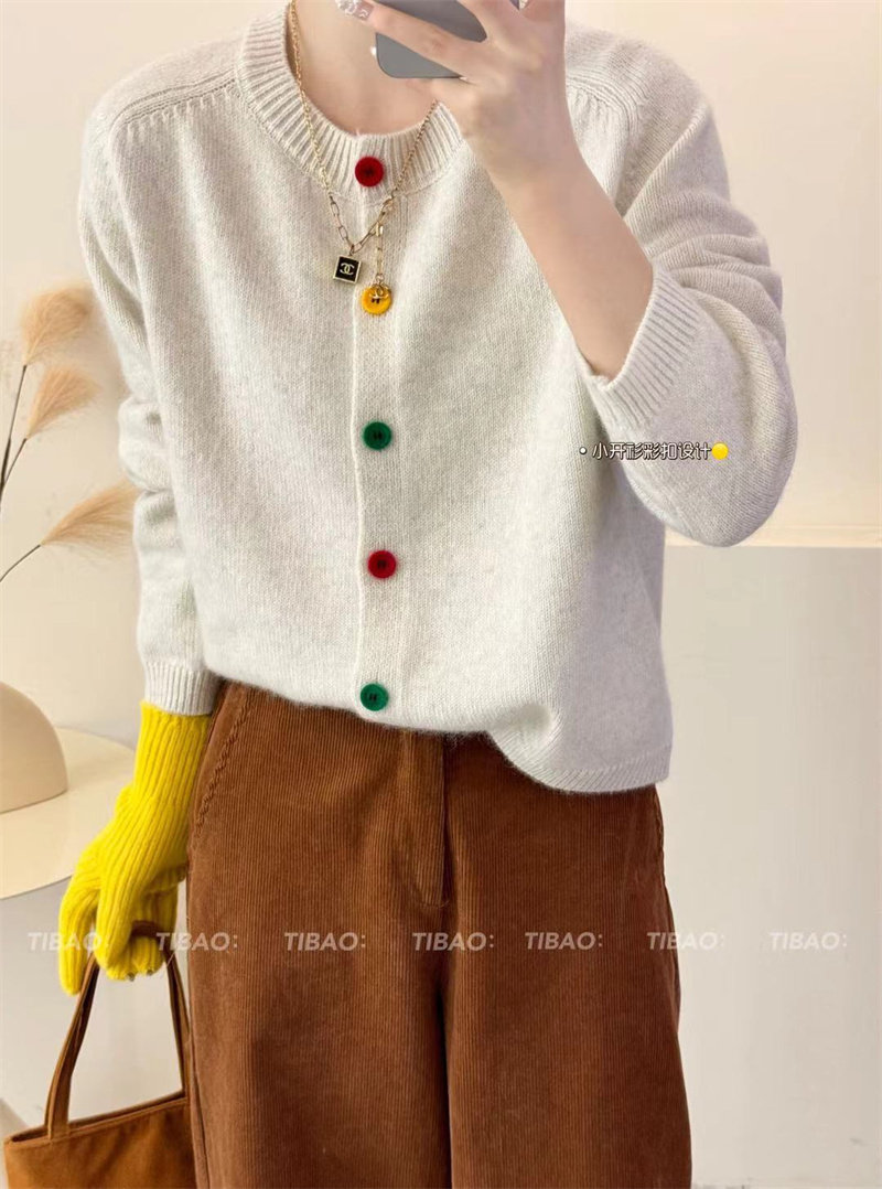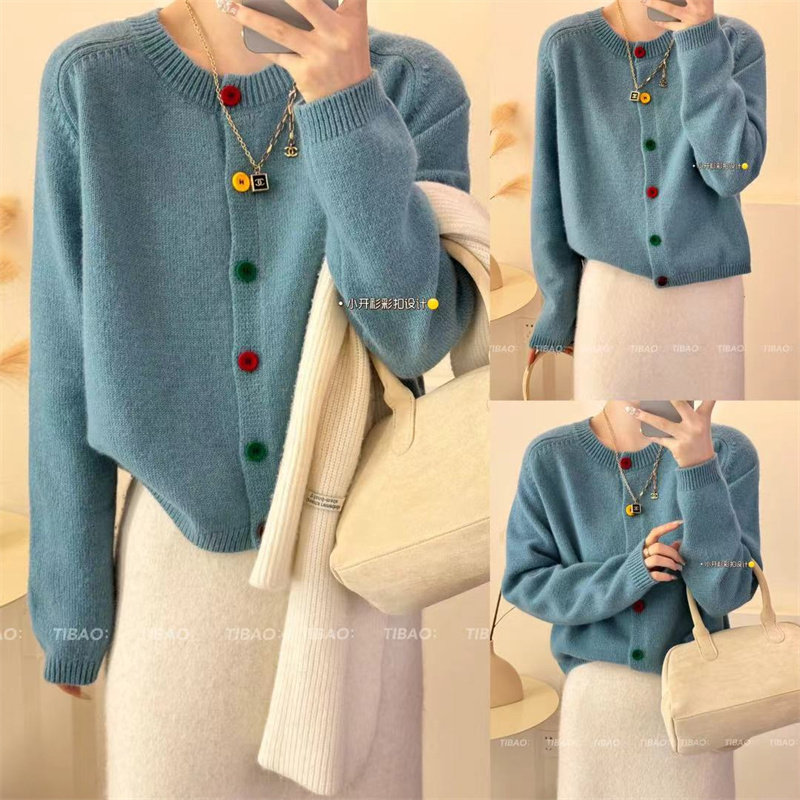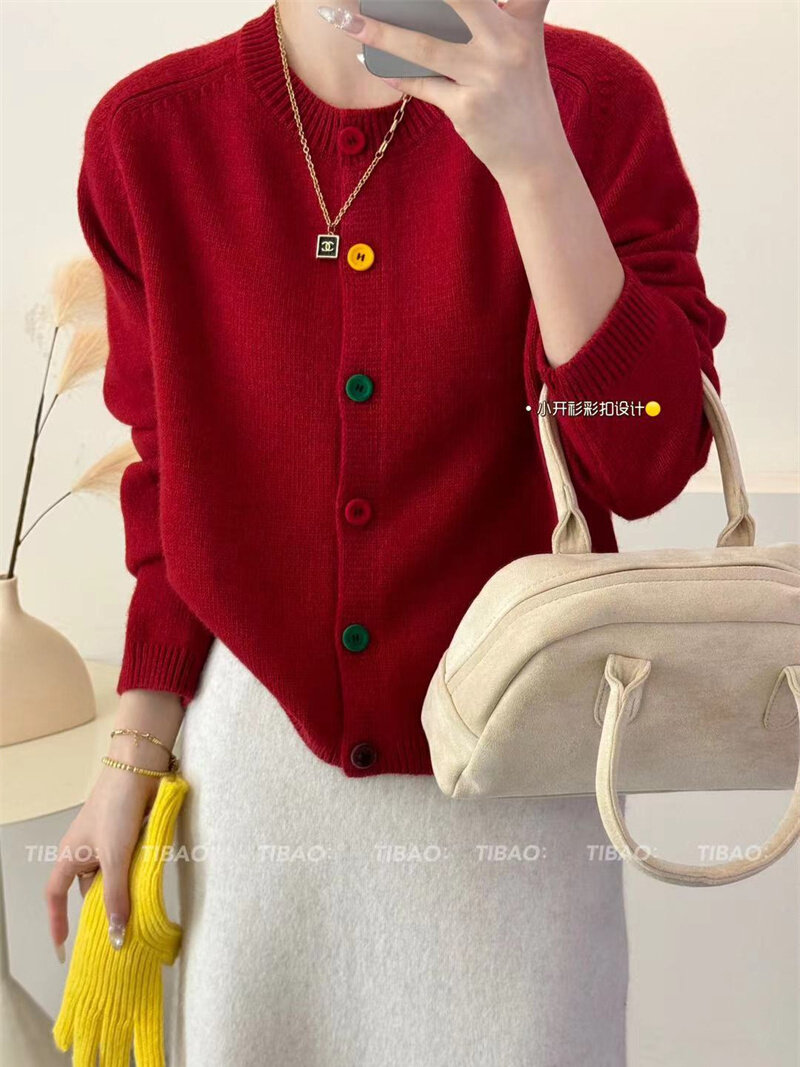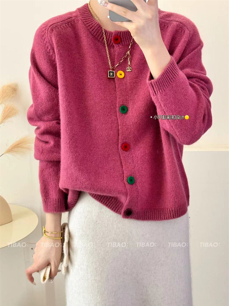 Булавка, осенний кардиган, модный лонгслив с круглым воротником, свитер, куртка, свободный крой