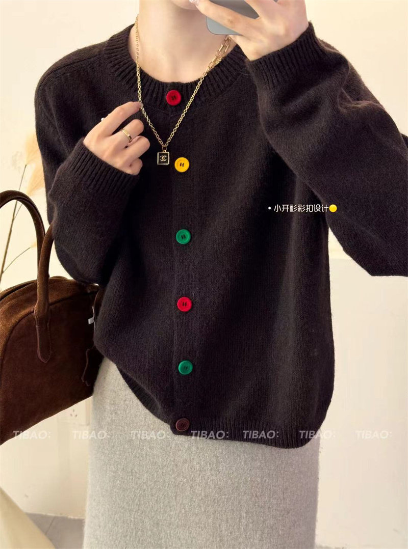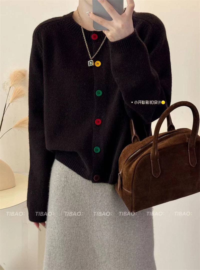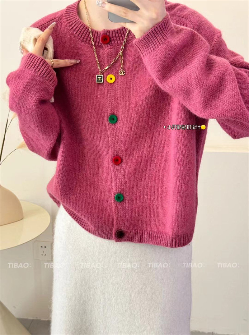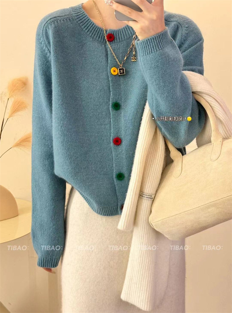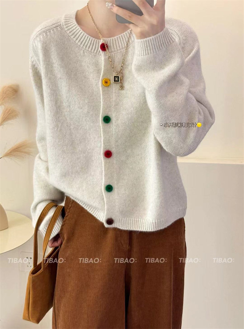 Булавка, осенний кардиган, модный лонгслив с круглым воротником, свитер, куртка, свободный крой