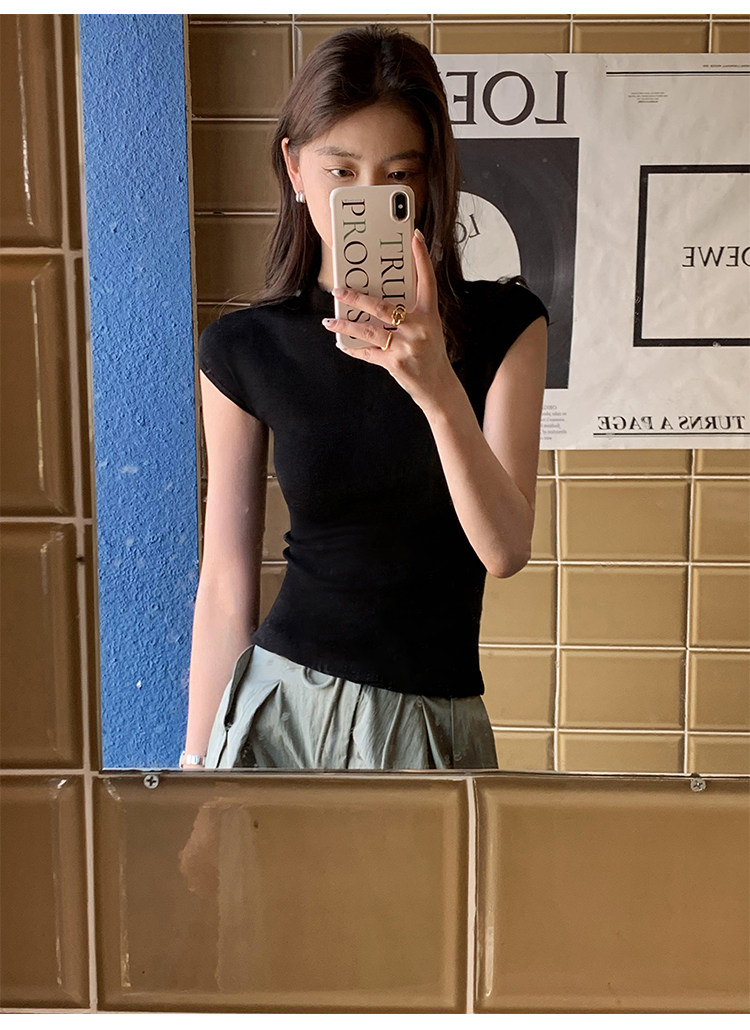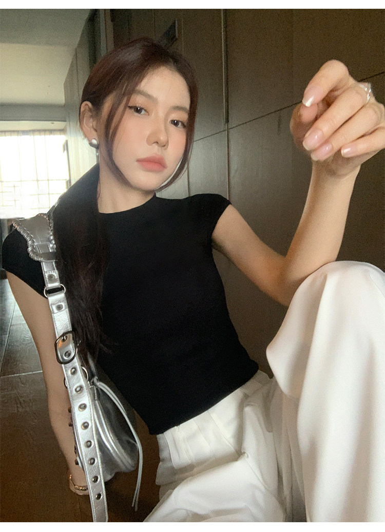 Черная дизайнерская трикотажная приталенная шелковая футболка с коротким рукавом, тренд сезона
