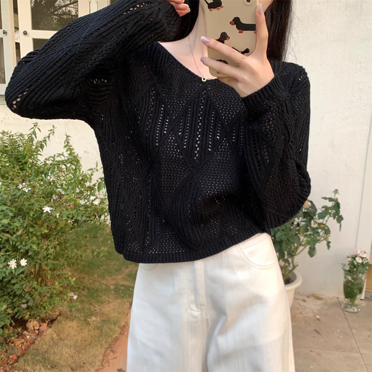Весенний дизайнерский трикотажный свитер, лонгслив, в корейском стиле, V-образный вырез, свободный крой, тренд сезона