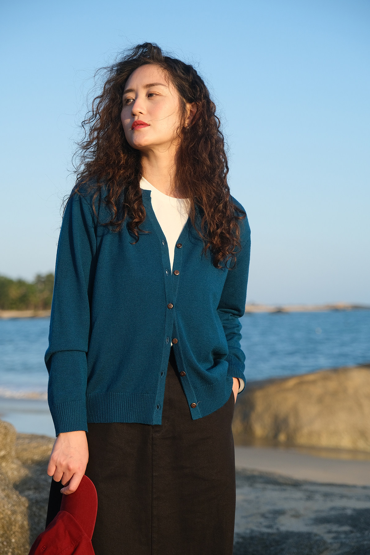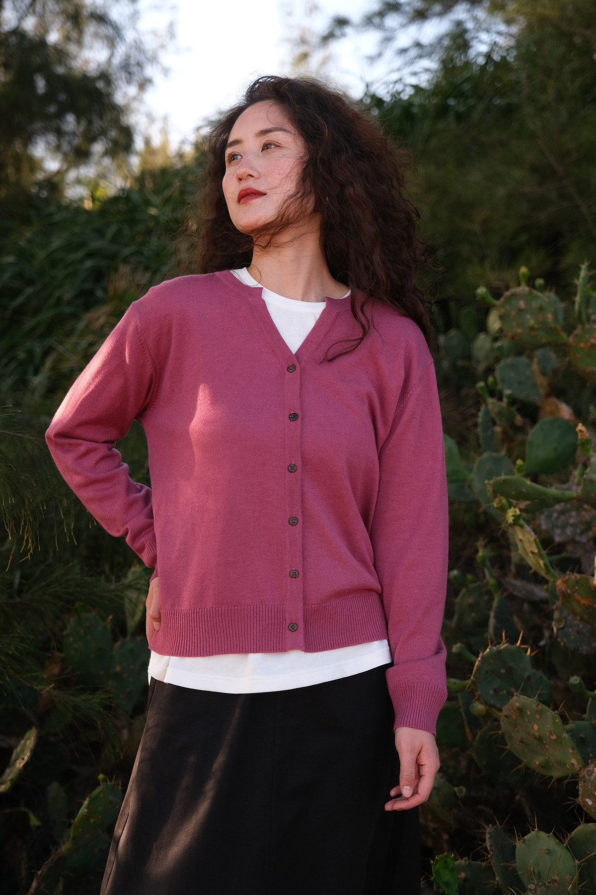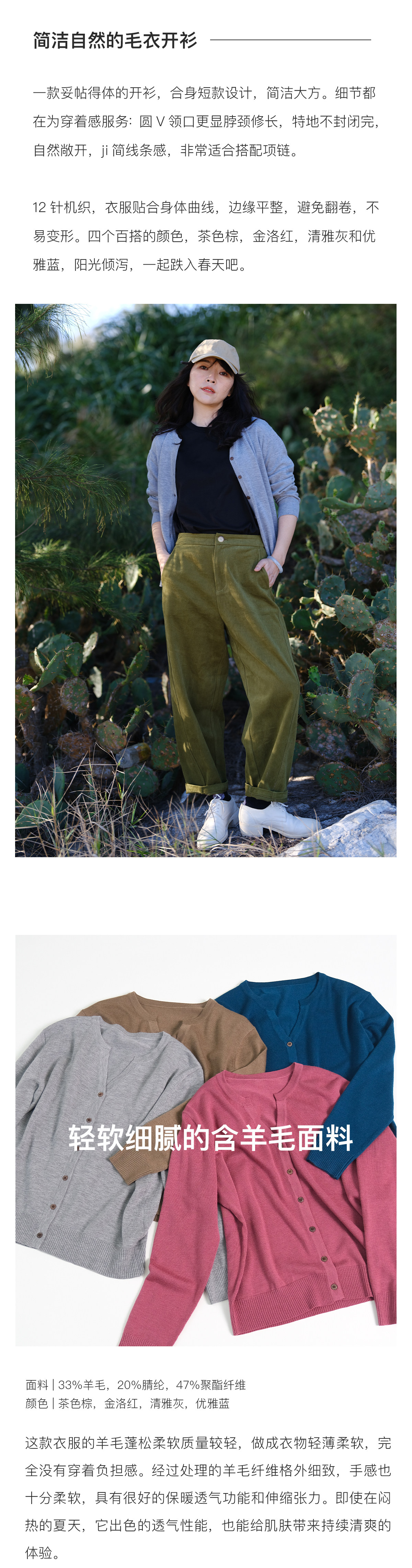 Классический шерстяной тонкий кардиган, универсальный лонгслив, булавка для отдыха, свитер, с рукавом
